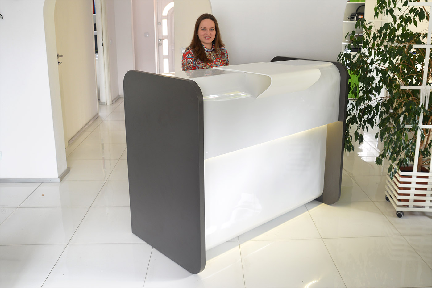 • Część frontowa recepcji o wysokości 115 cm zapewnia komfortowe miejsce do pracy