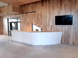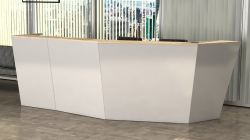 Tam gdzie drewniany blat spotkał się z bezrantowymi powierzchniami corianu tam powstała lad R116. Olbrzymia recepcja dla przedsiębiorstwa cieszącego się wielkim prestiżem musi być wyjątkowa. Stworzyliśmy recepcję R116 - niecodzienną i ekskluzywną konstrukcję z corianu łączonego na froncie w taki sposób że mamy wrażenie bezkrańcowości i pokryliśmy go blatem z naturalnego drewna. Efekt „wow” gwarantowany.