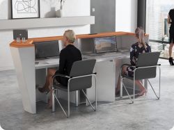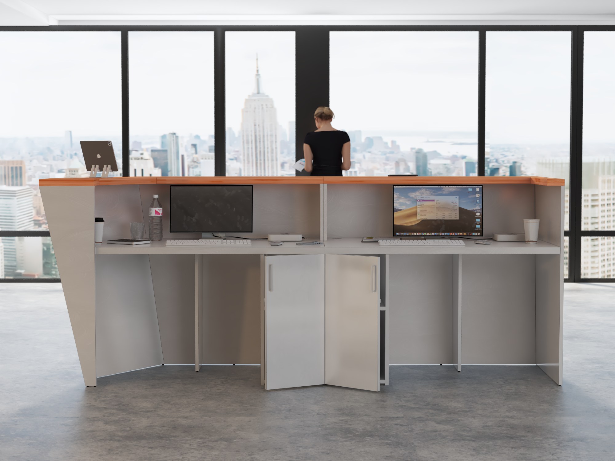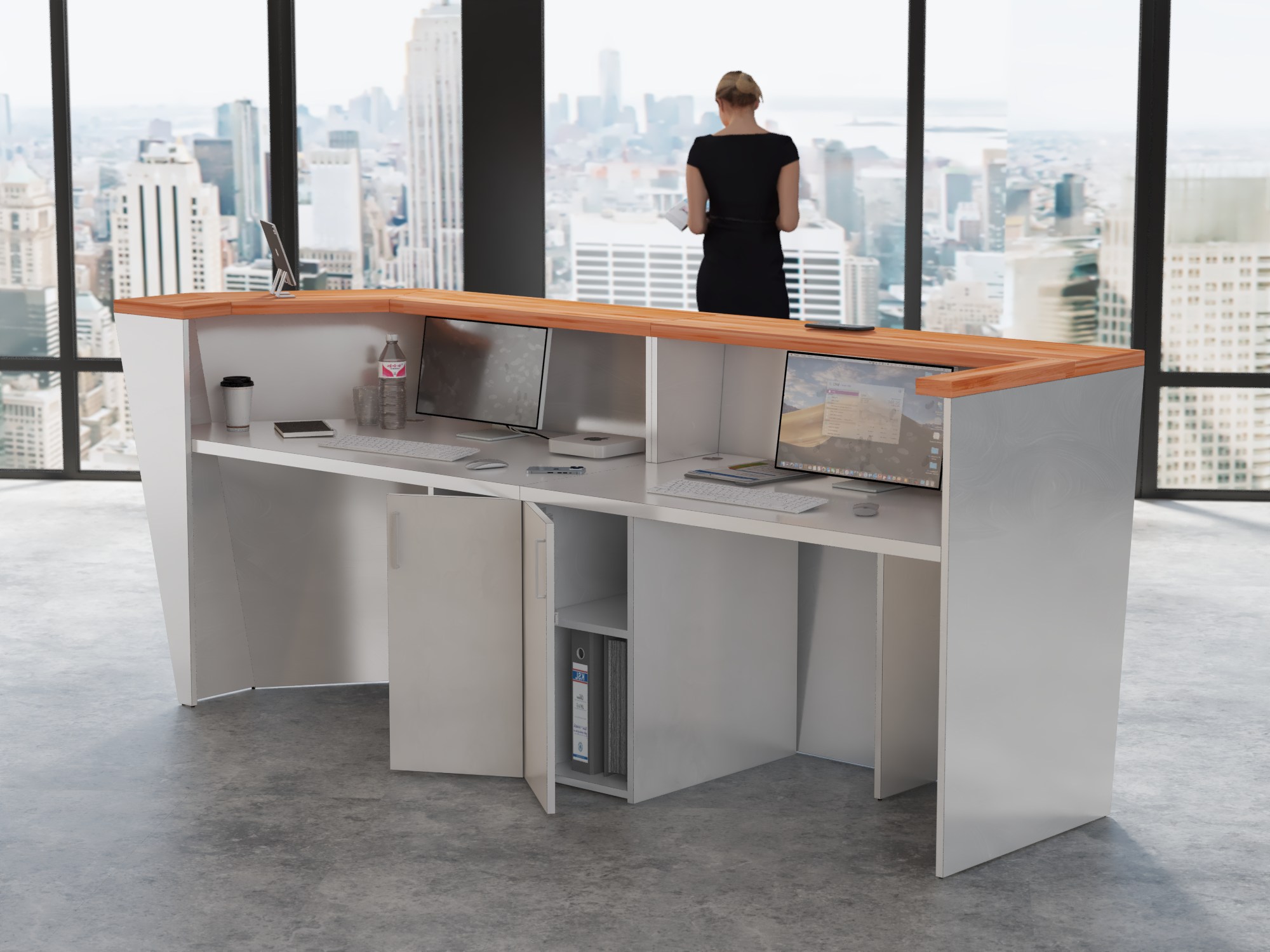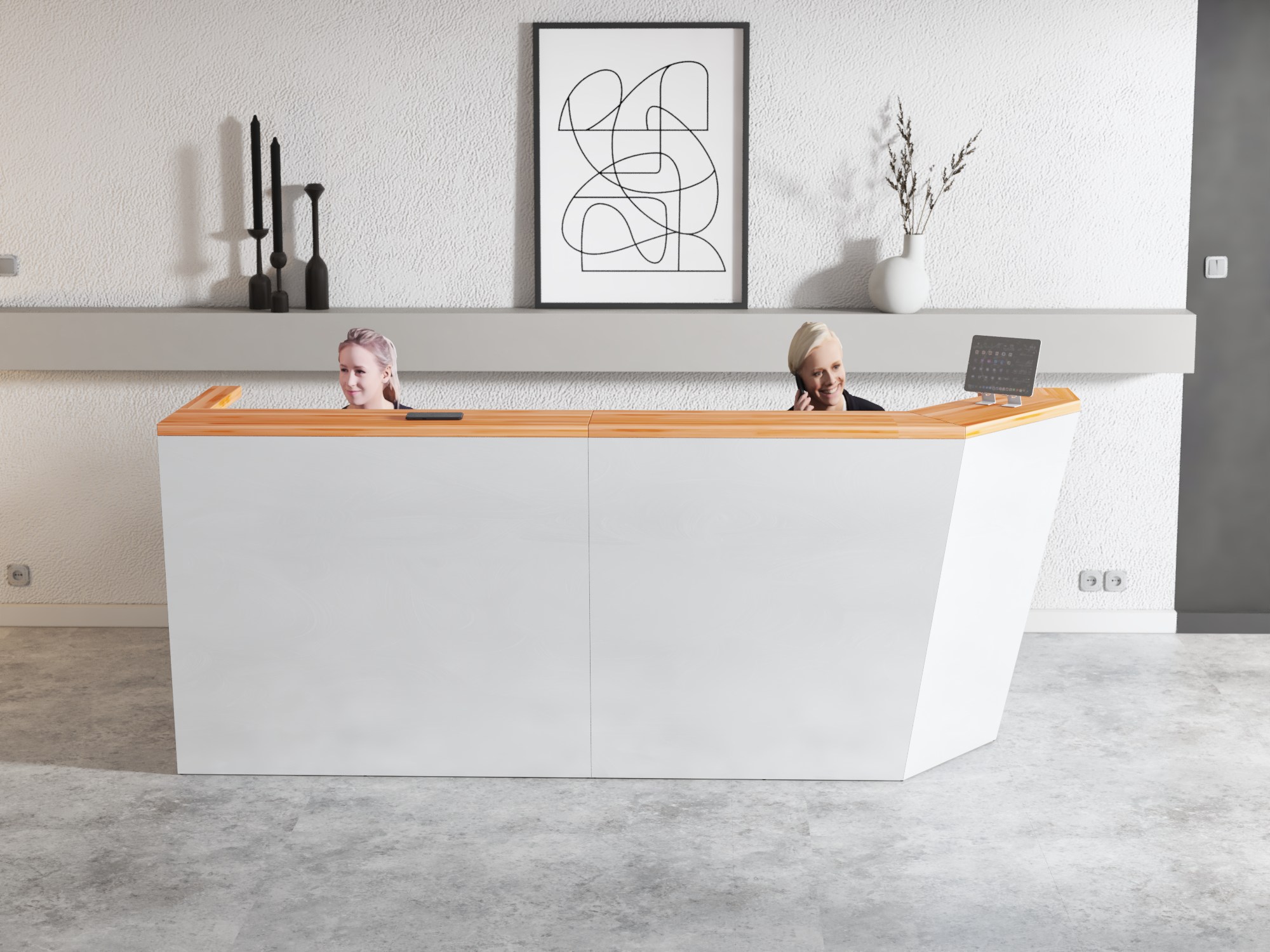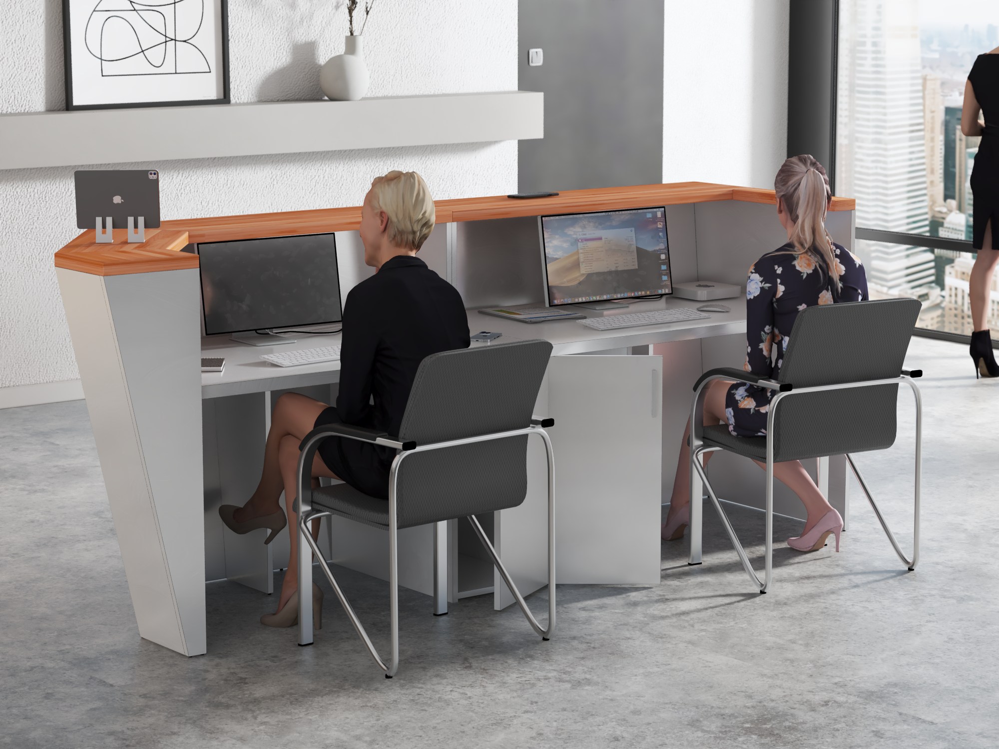 • Część frontowa recepcji o wysokości 115 cm zapewnia komfortowe miejsce do pracy