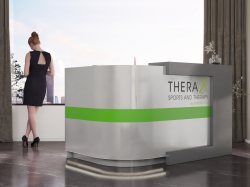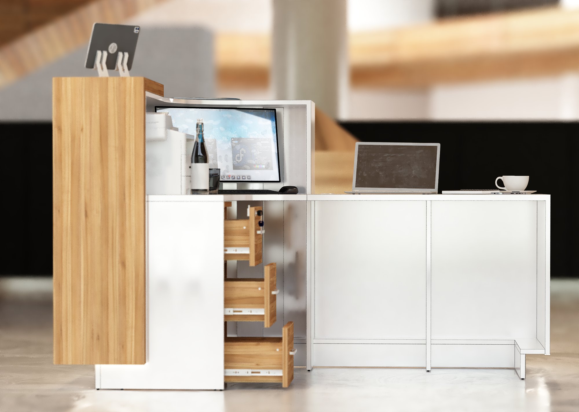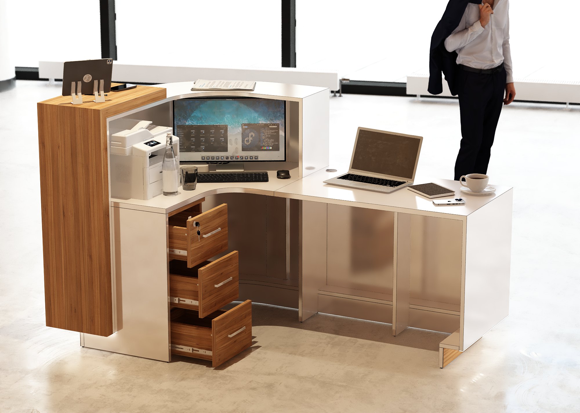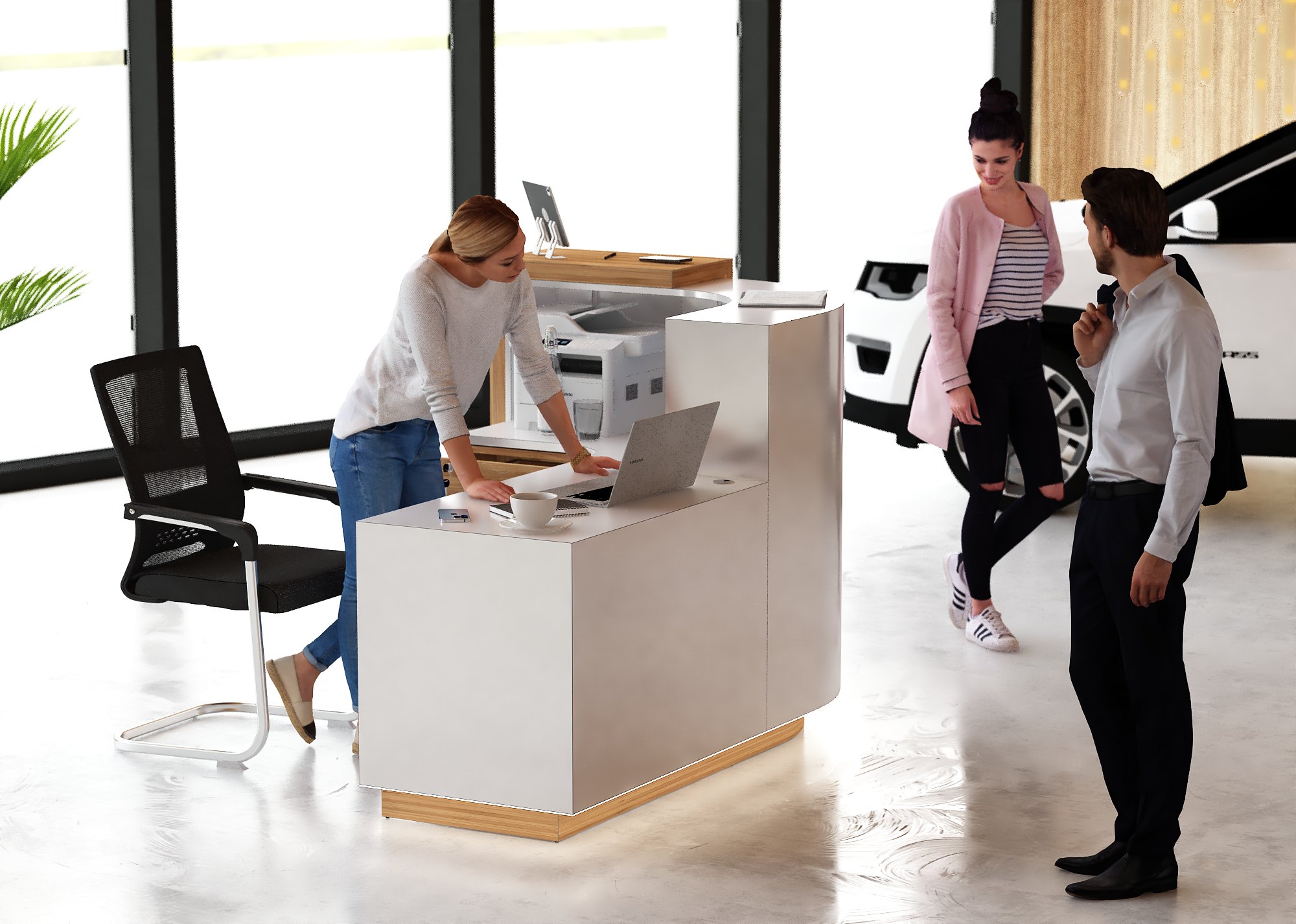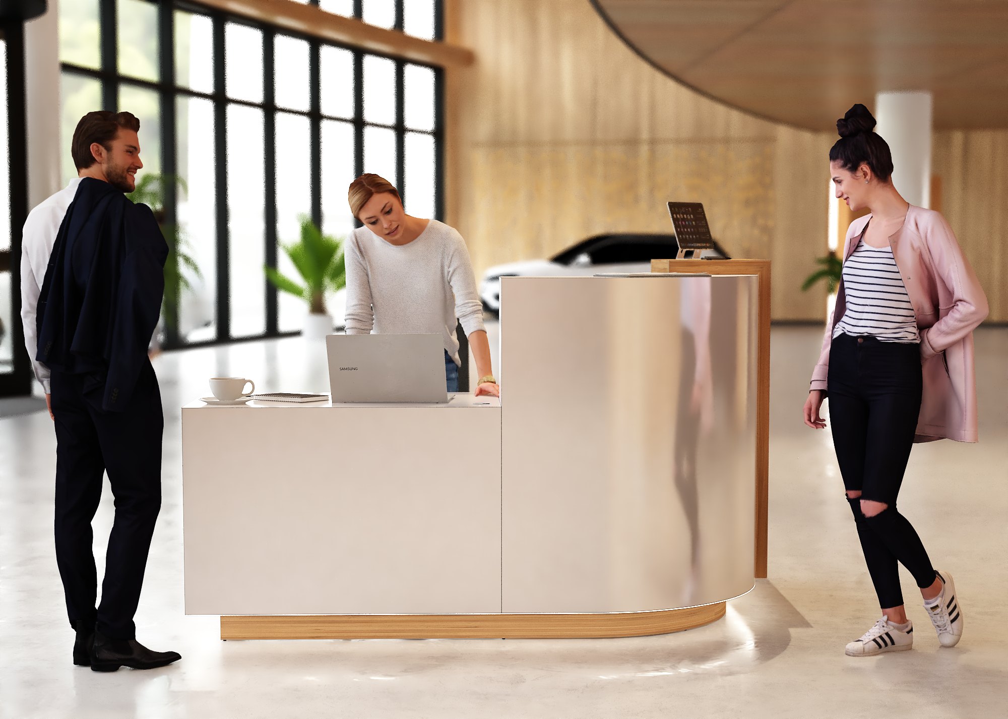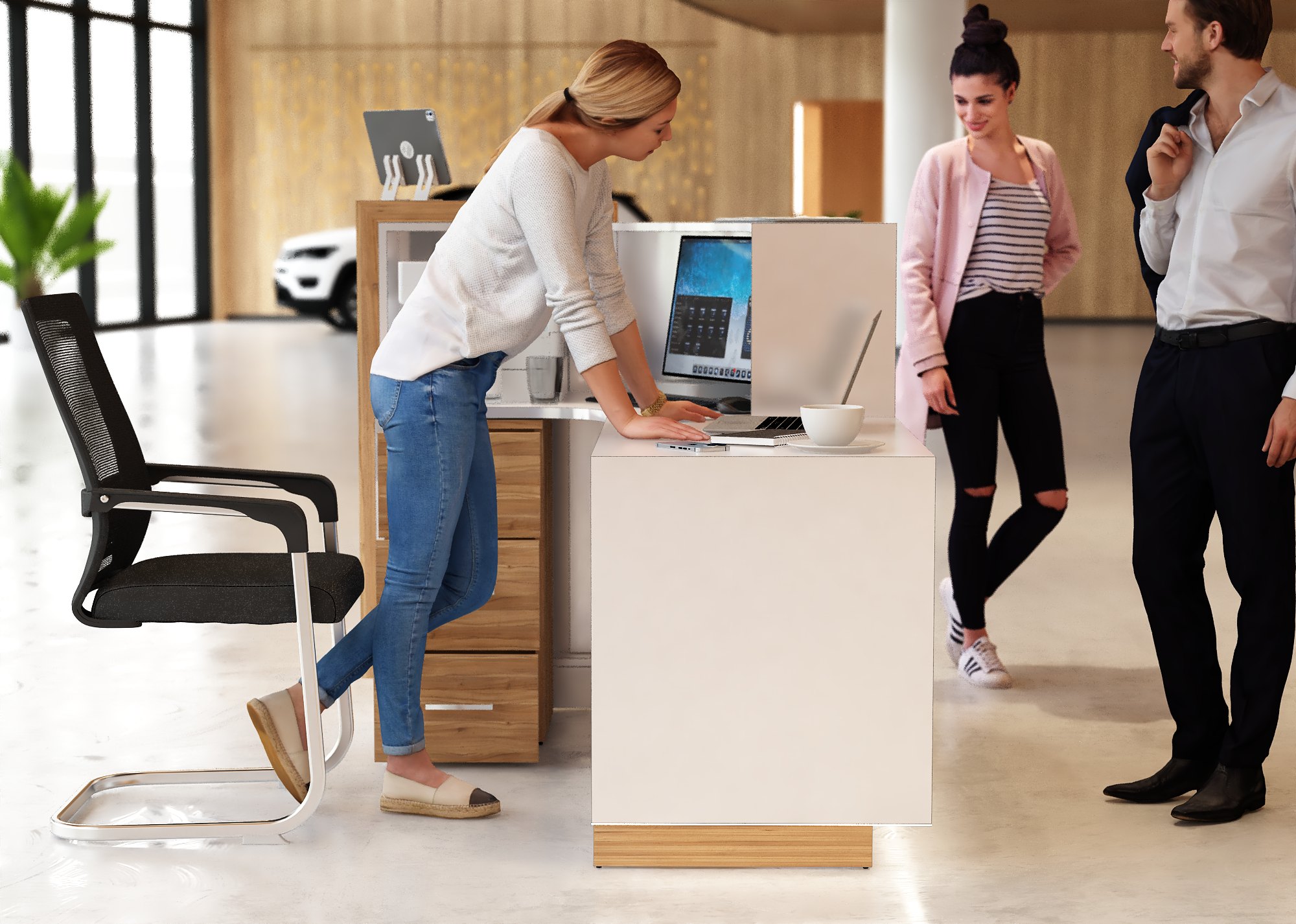 • Część frontowa recepcji o wysokości 115 cm zapewnia komfortowe miejsce do pracy