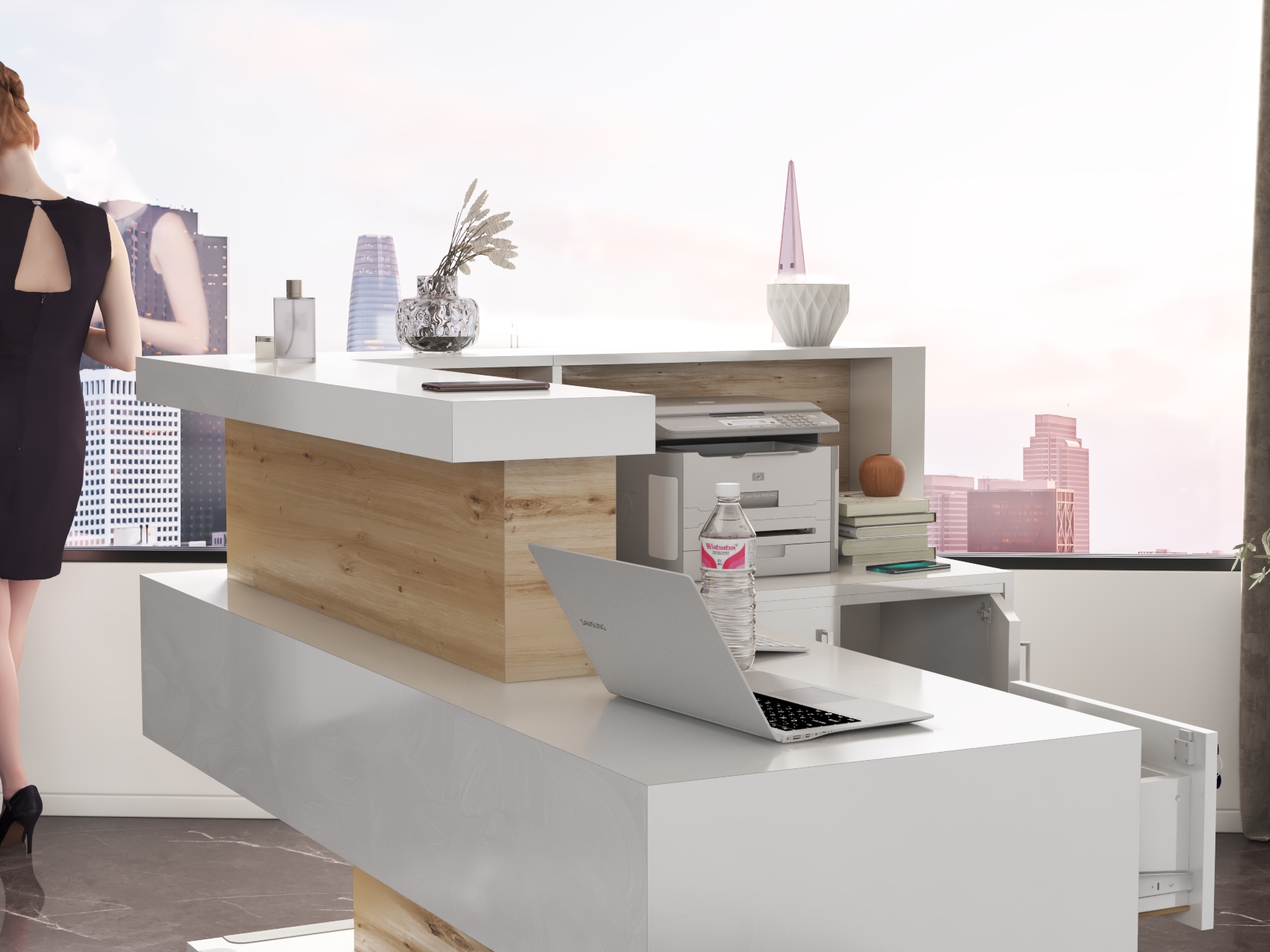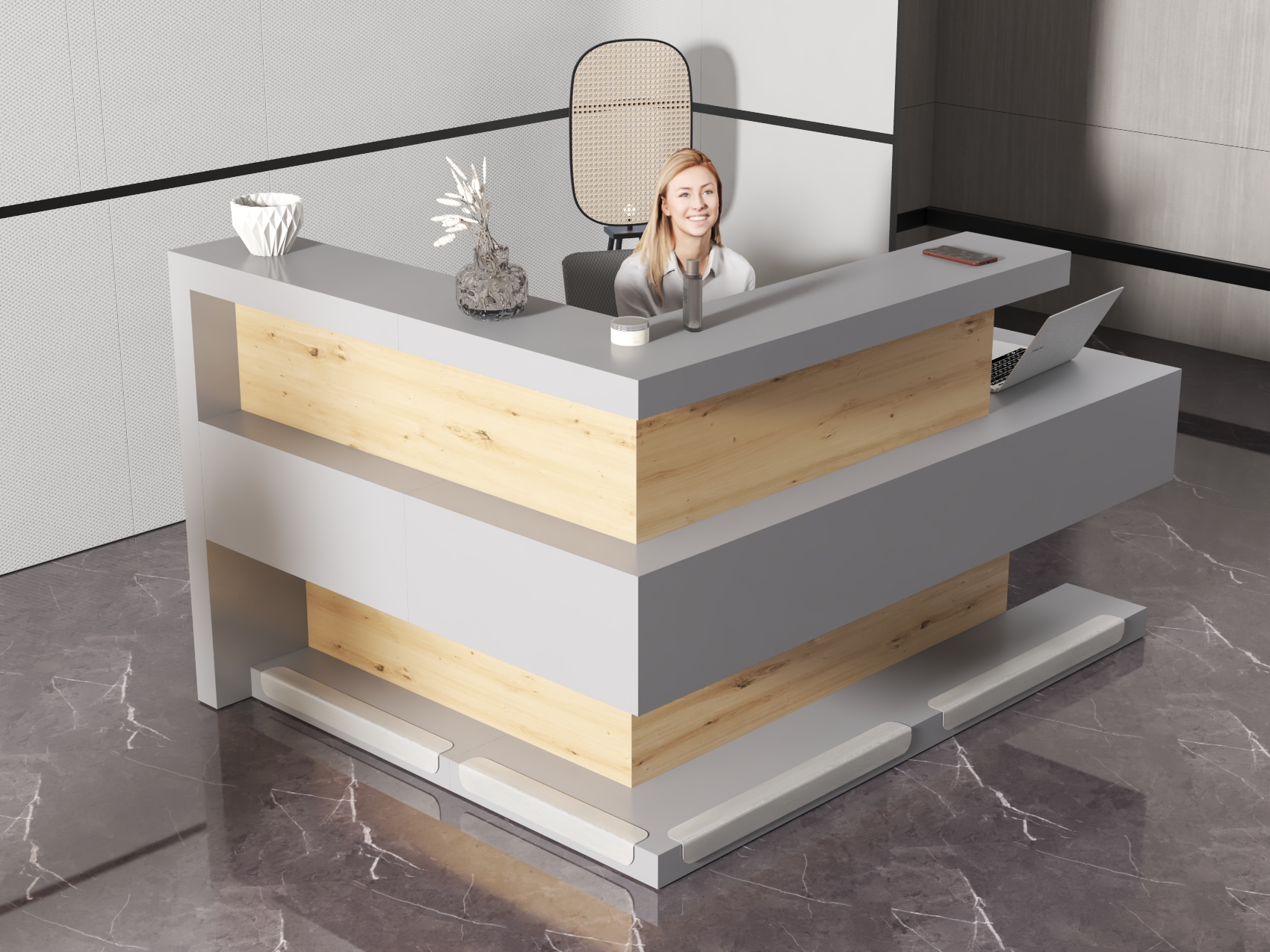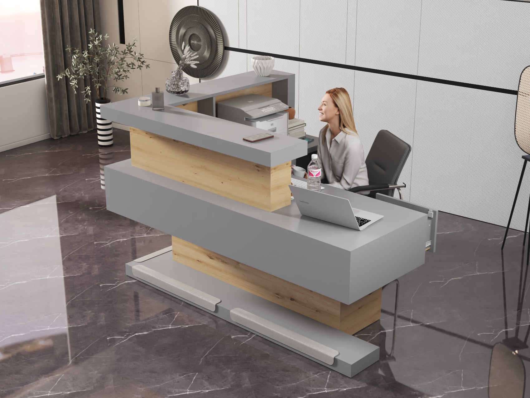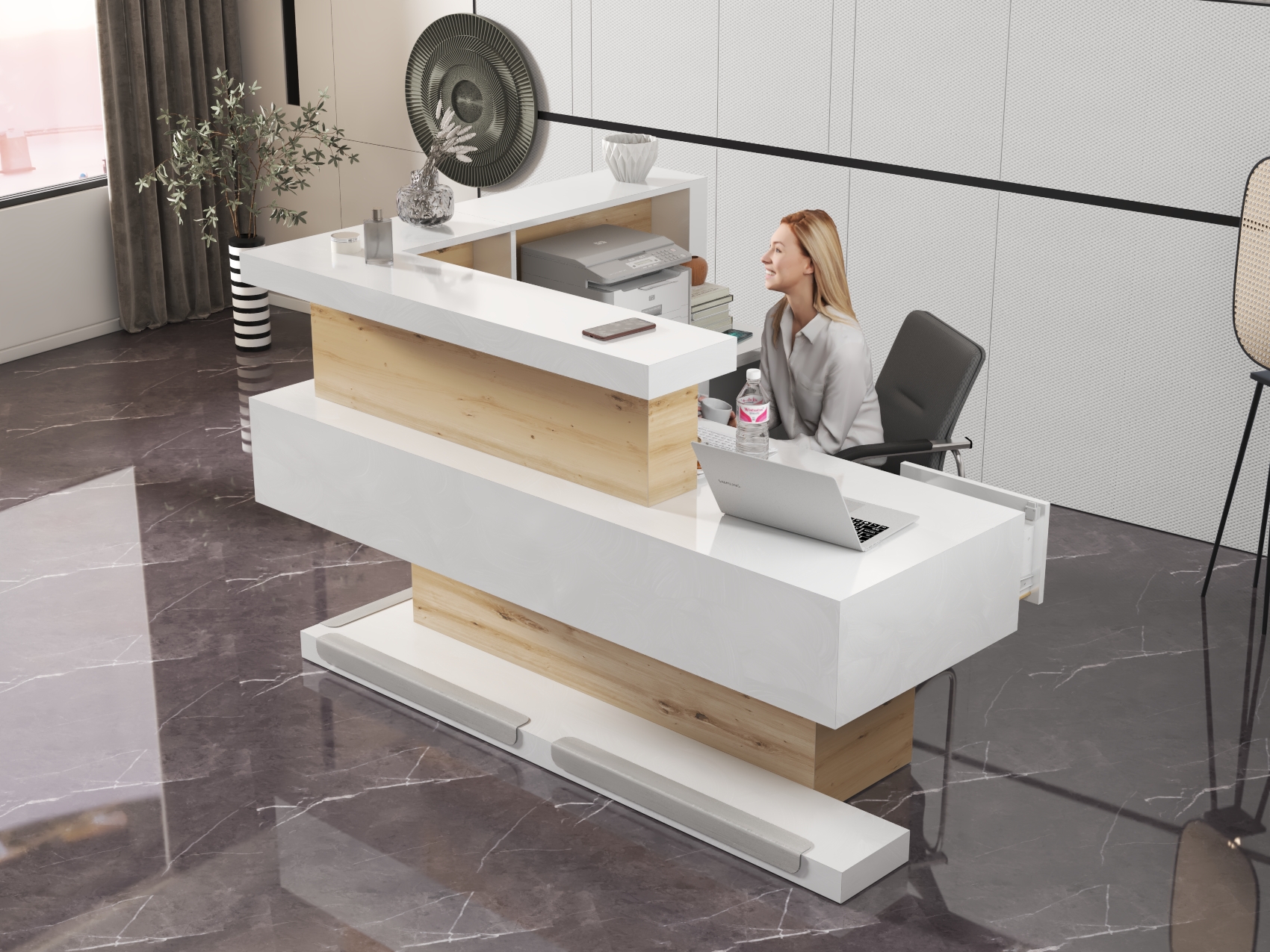 • Część frontowa recepcji o wysokości 115 cm zapewnia komfortowe miejsce do pracy