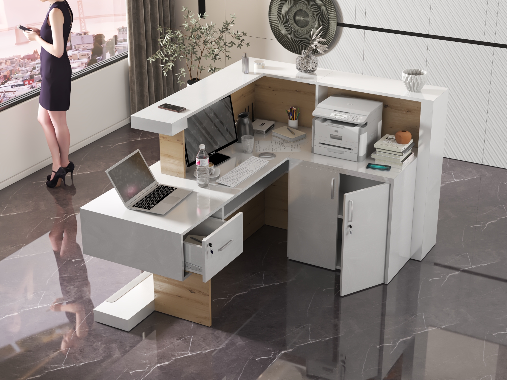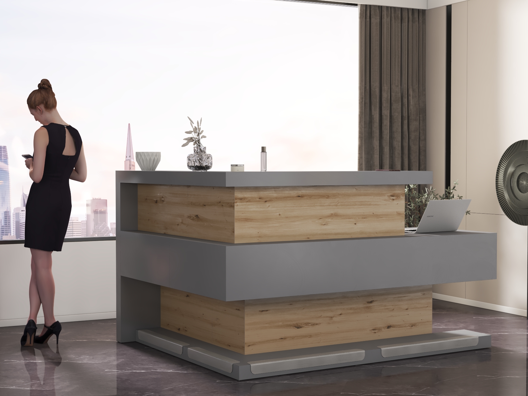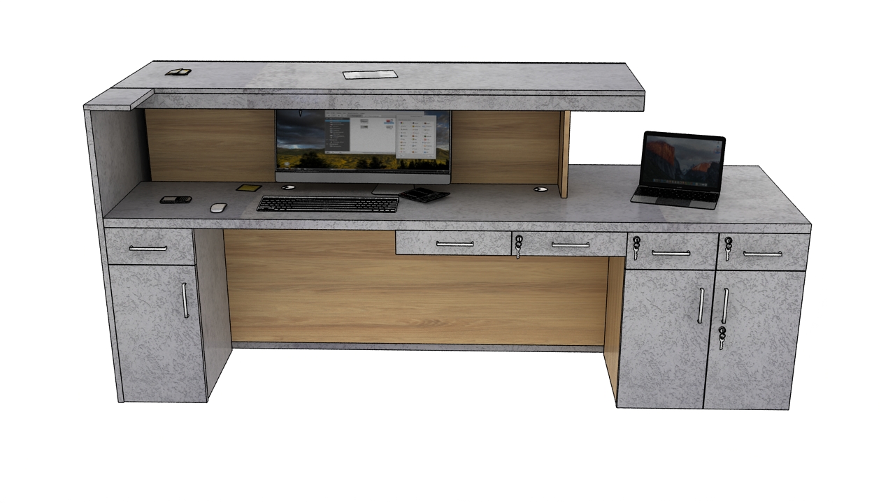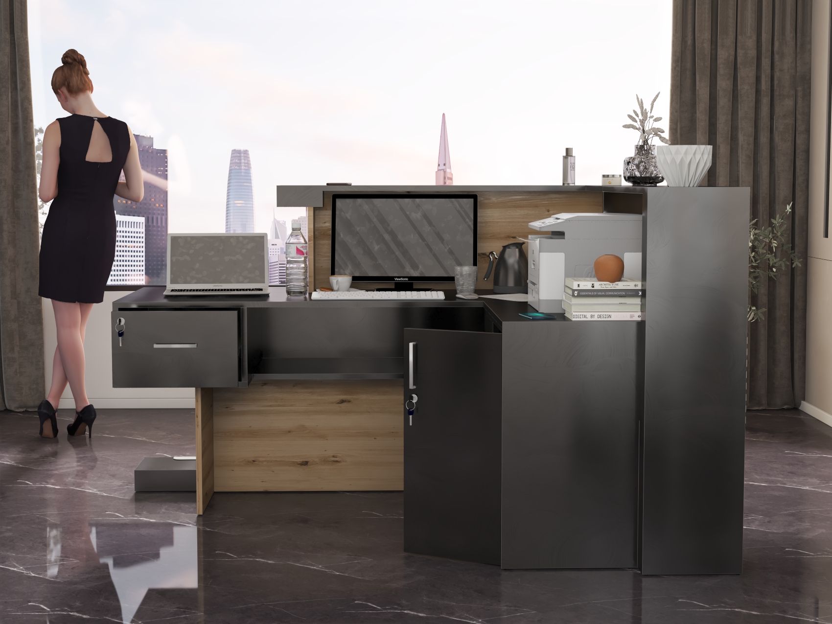 • Część frontowa recepcji o wysokości 115 cm zapewnia komfortowe miejsce do pracy