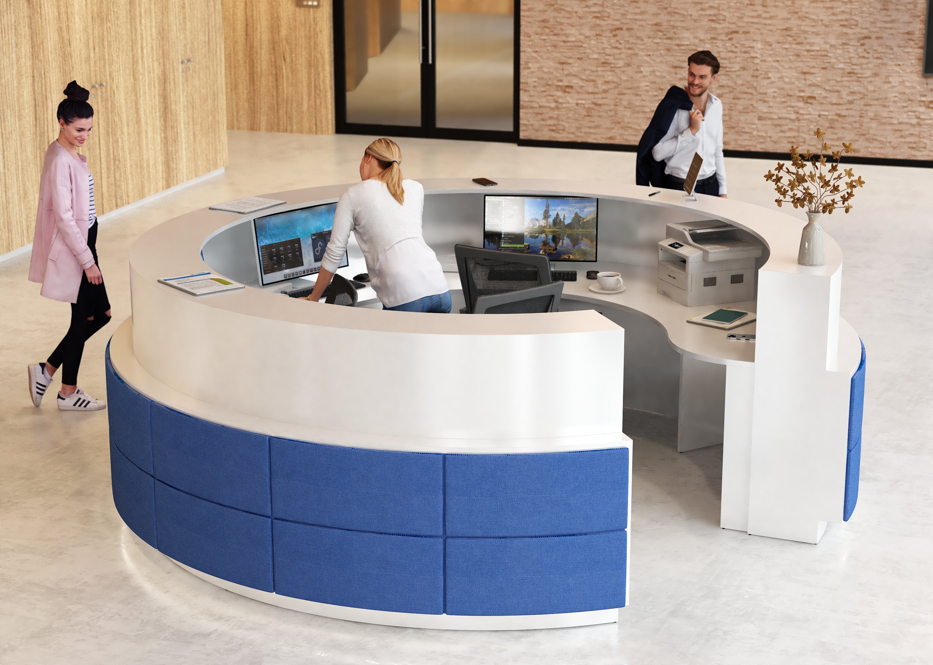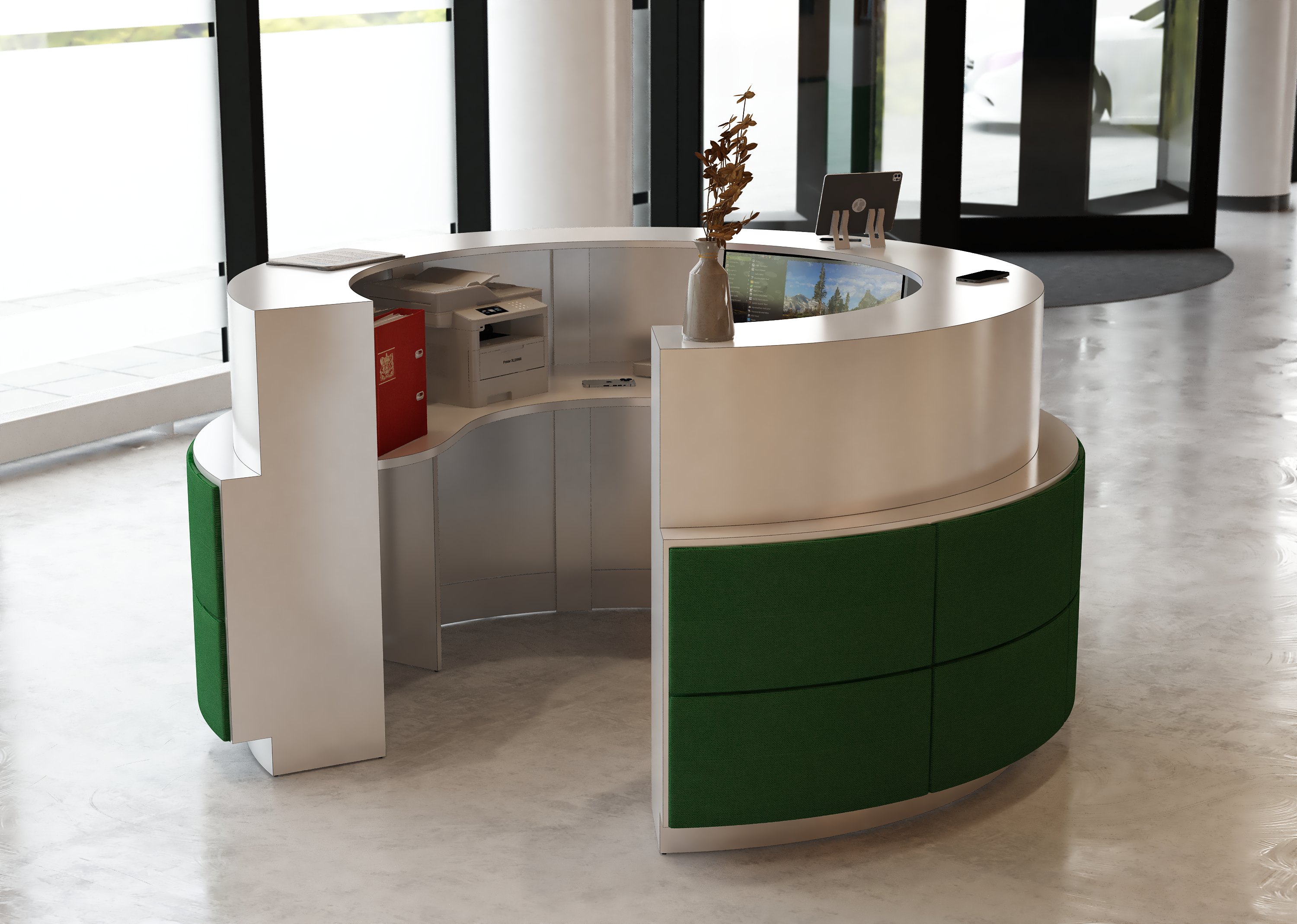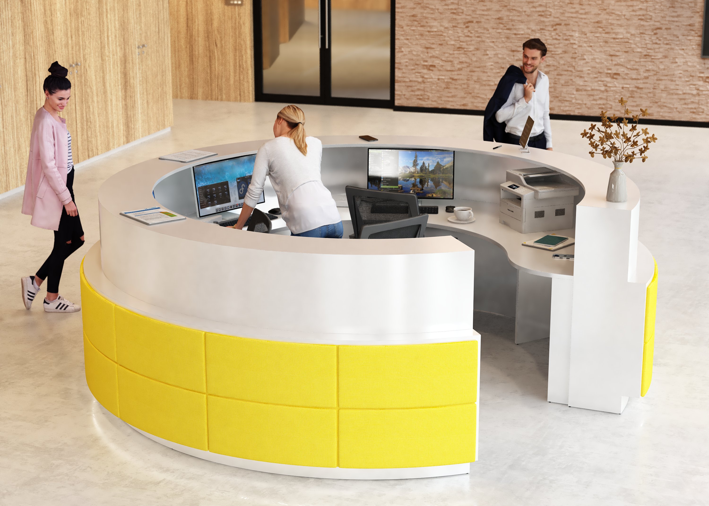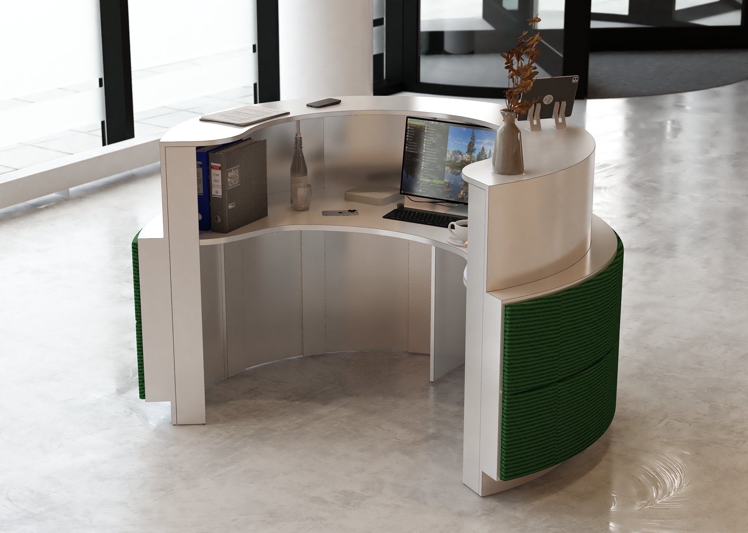 • Część frontowa recepcji o wysokości 115 cm zapewnia komfortowe miejsce do pracy