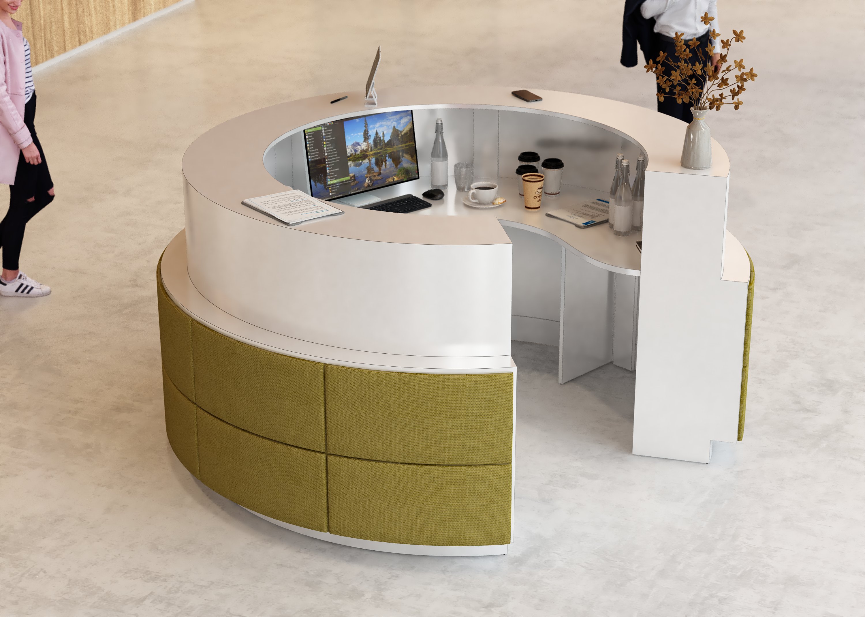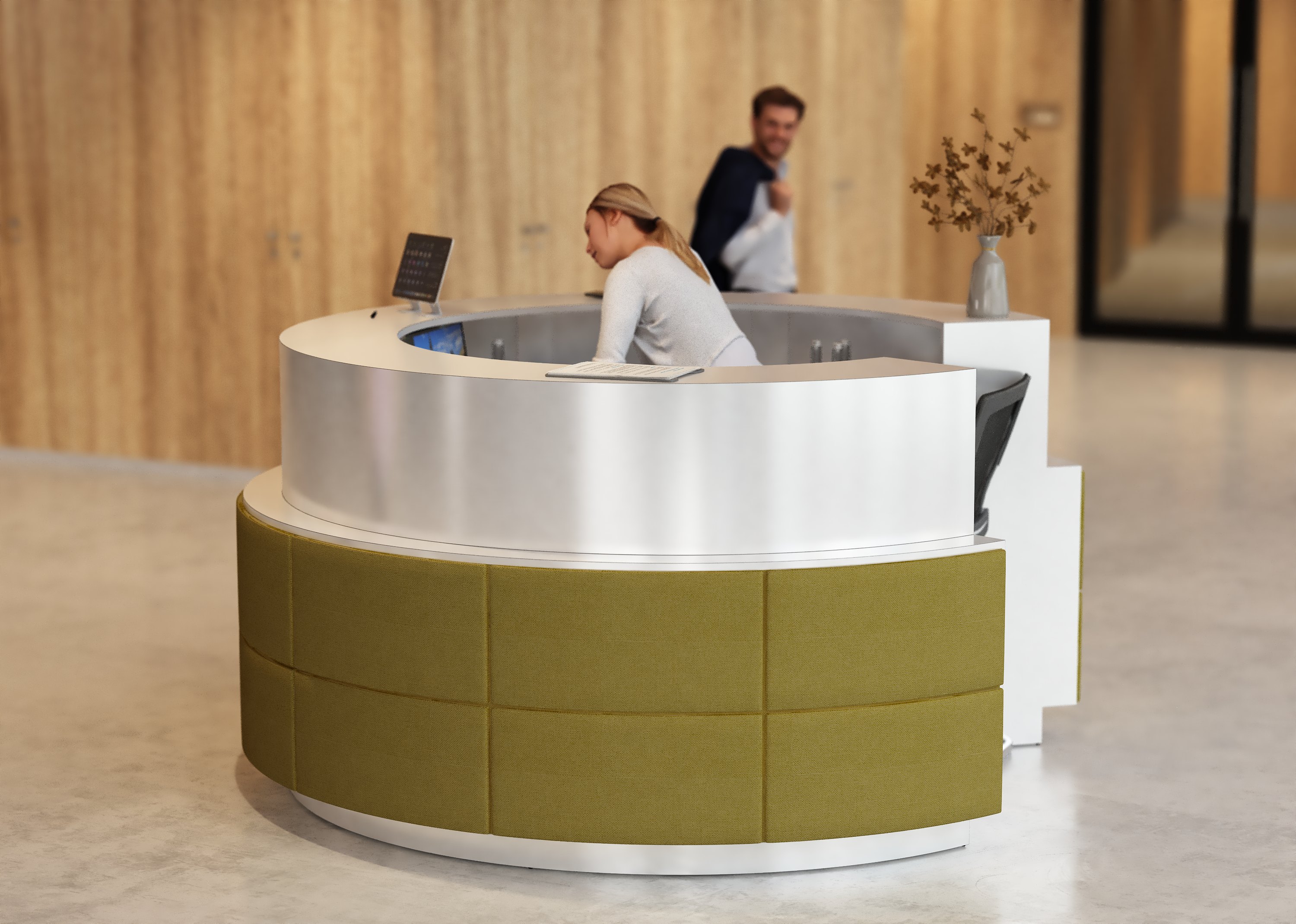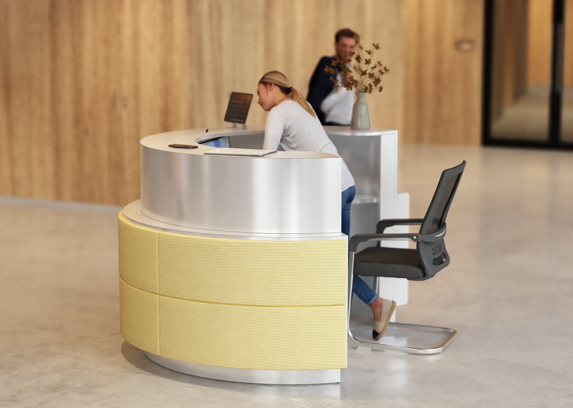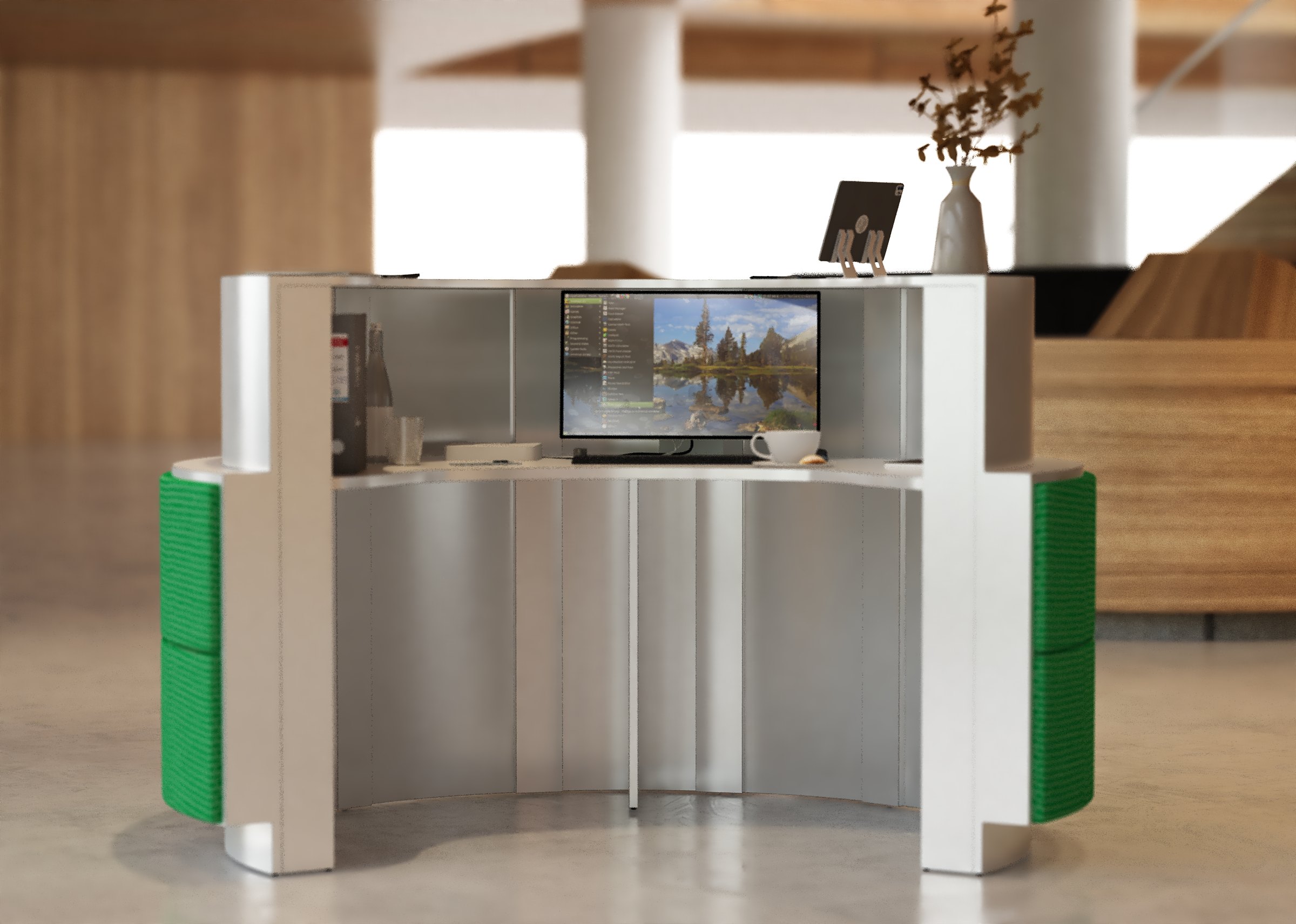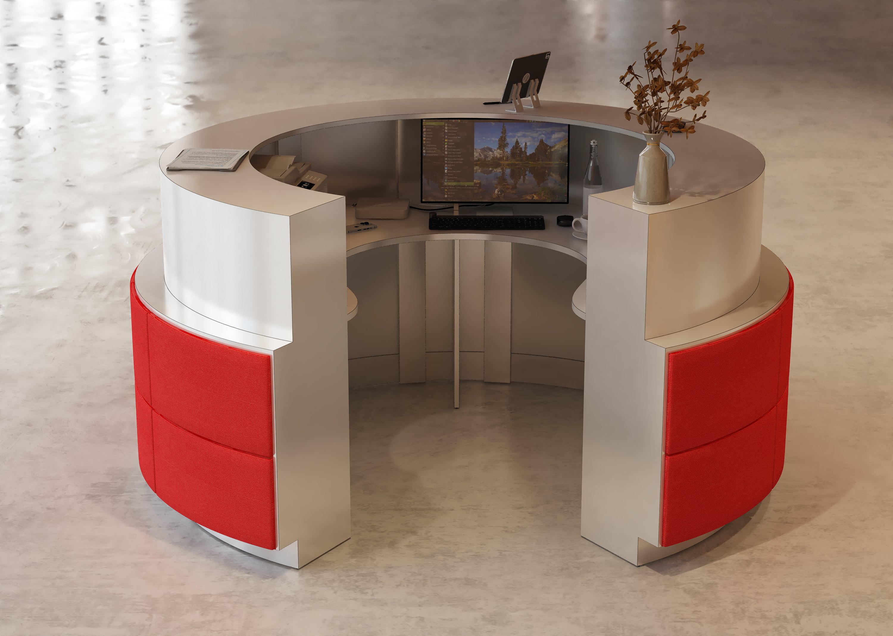 • Część frontowa recepcji o wysokości 115 cm zapewnia komfortowe miejsce do pracy