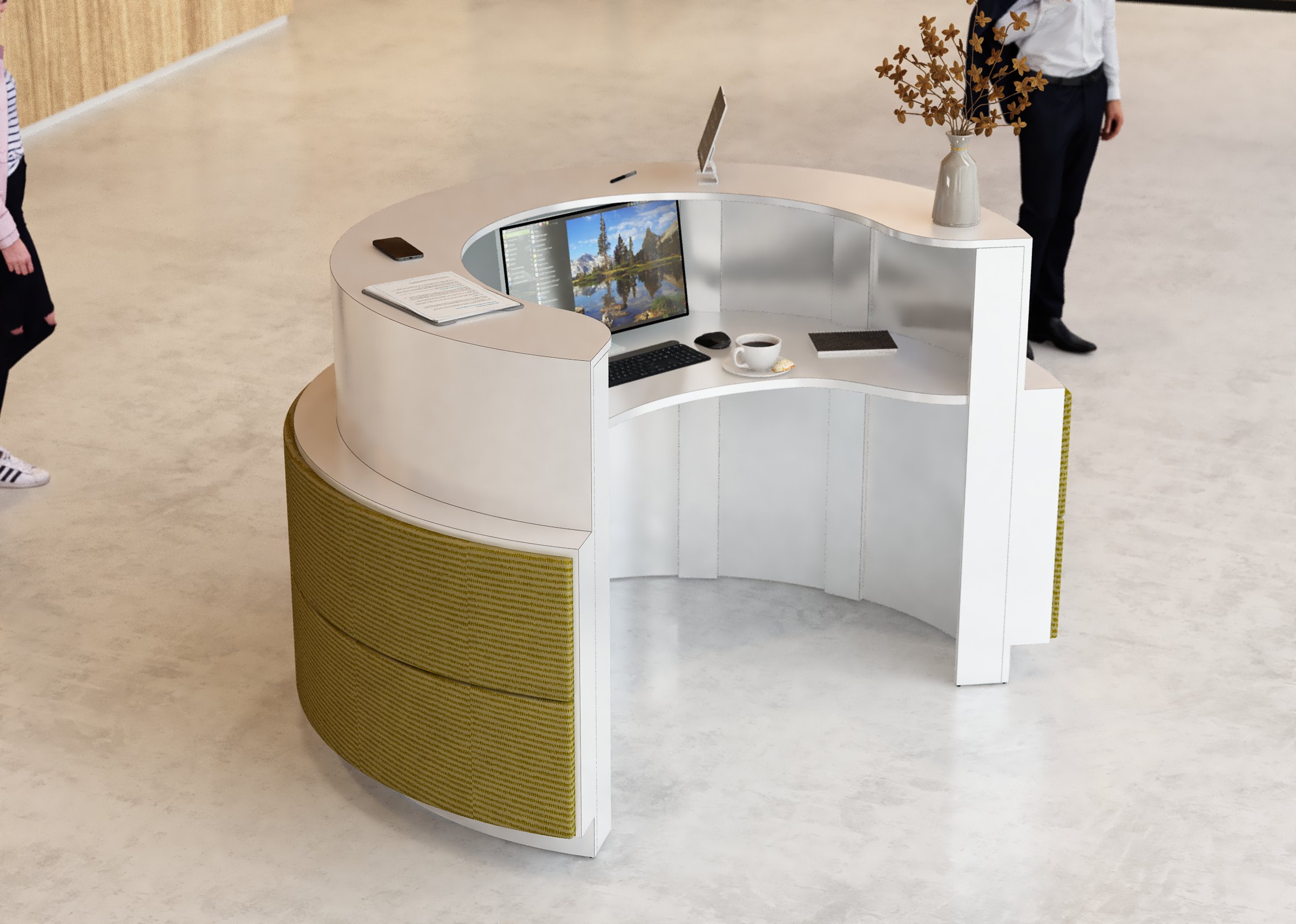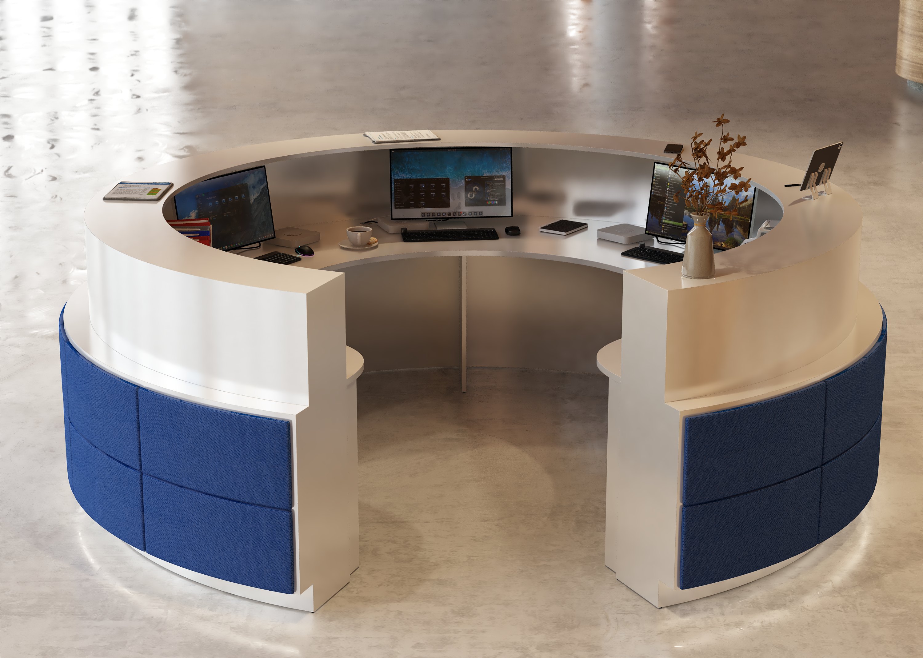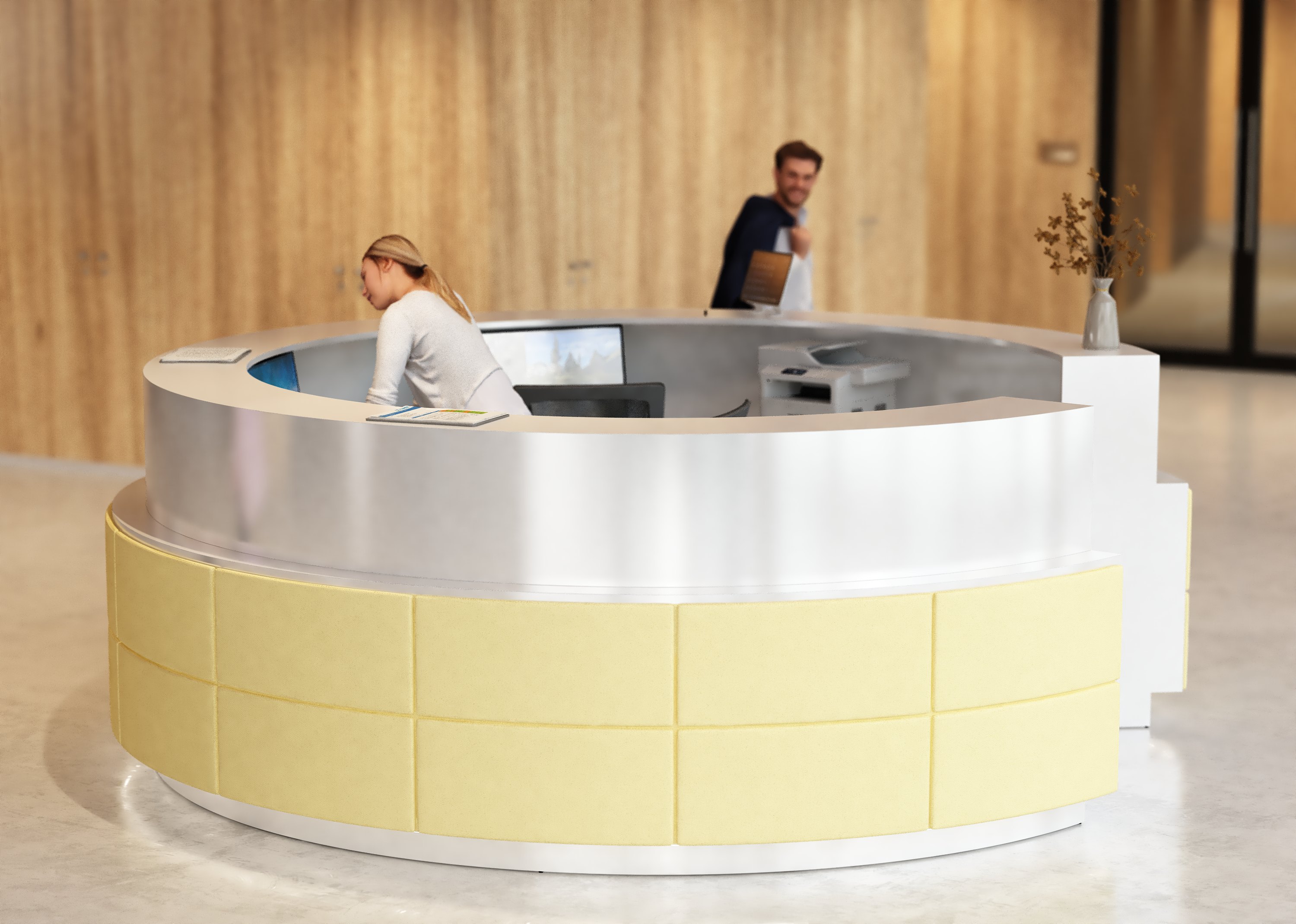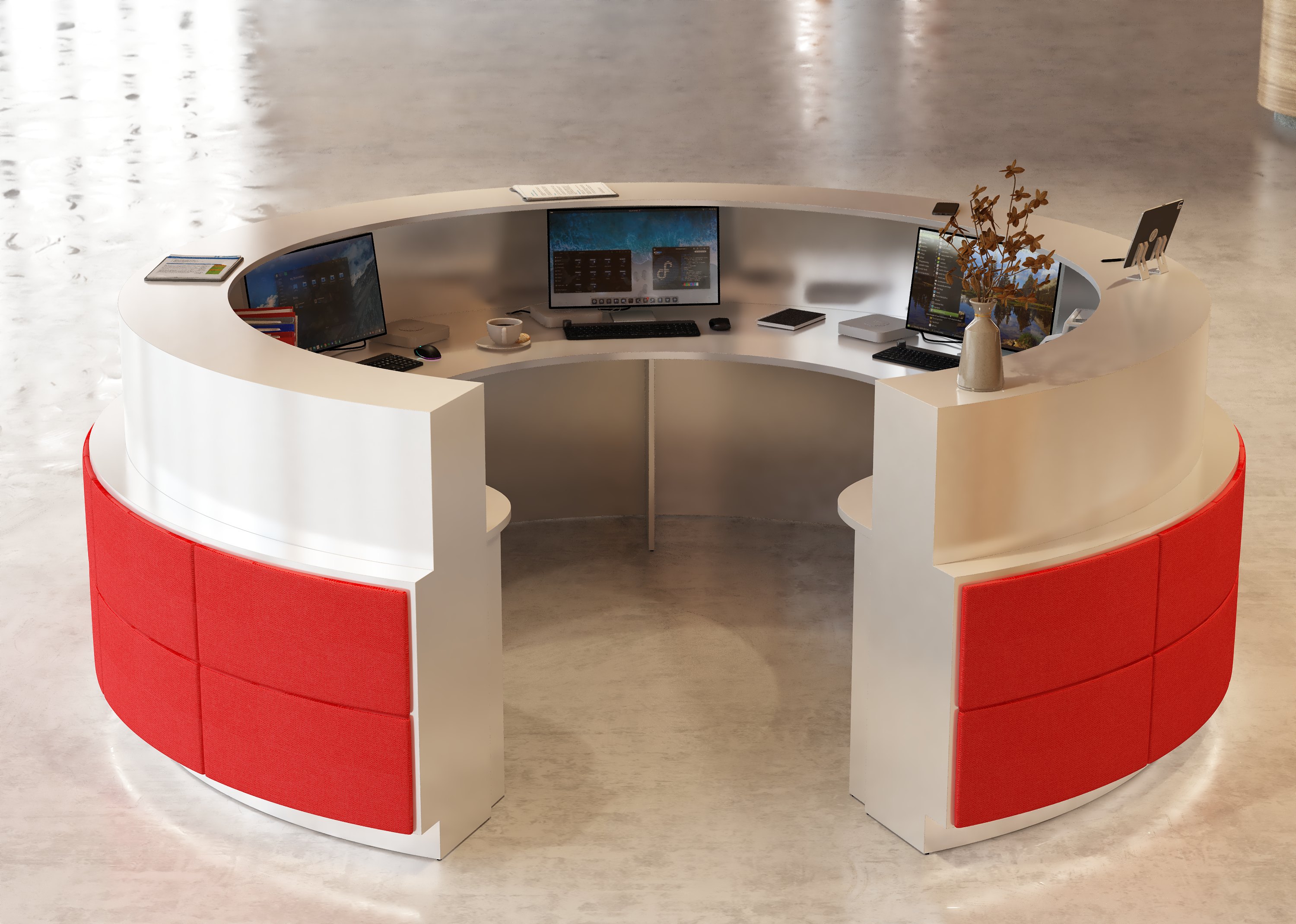 • Część frontowa recepcji o wysokości 115 cm zapewnia komfortowe miejsce do pracy
