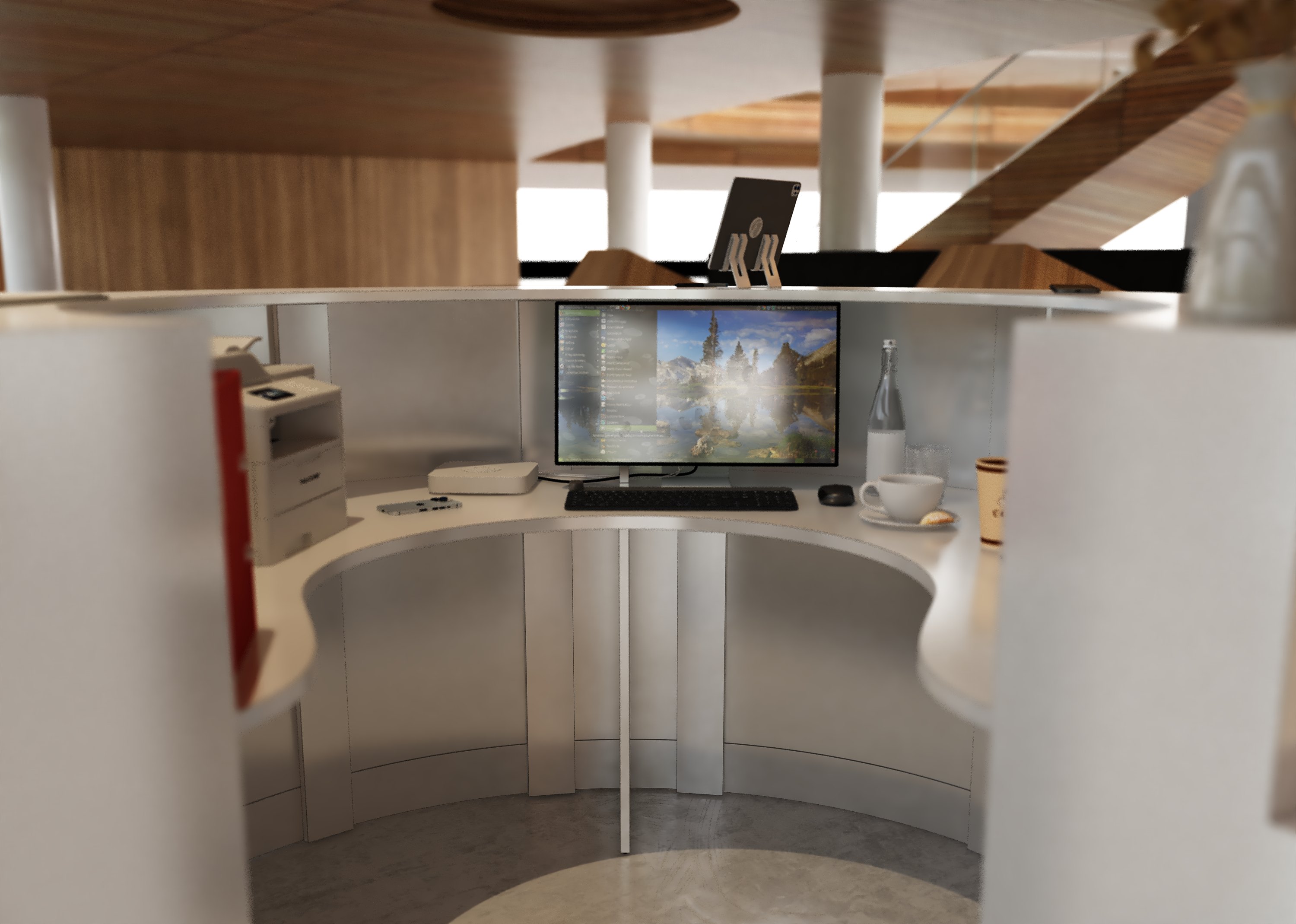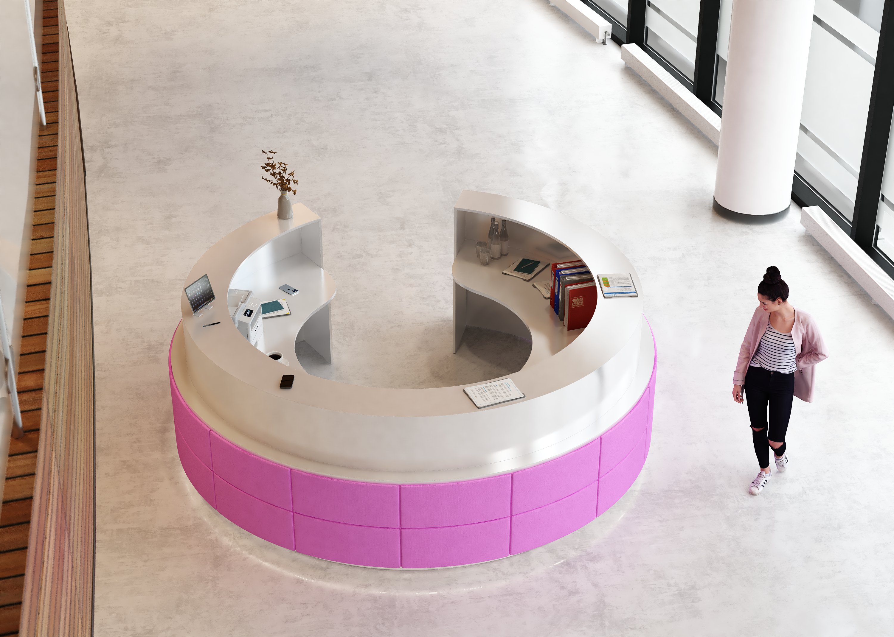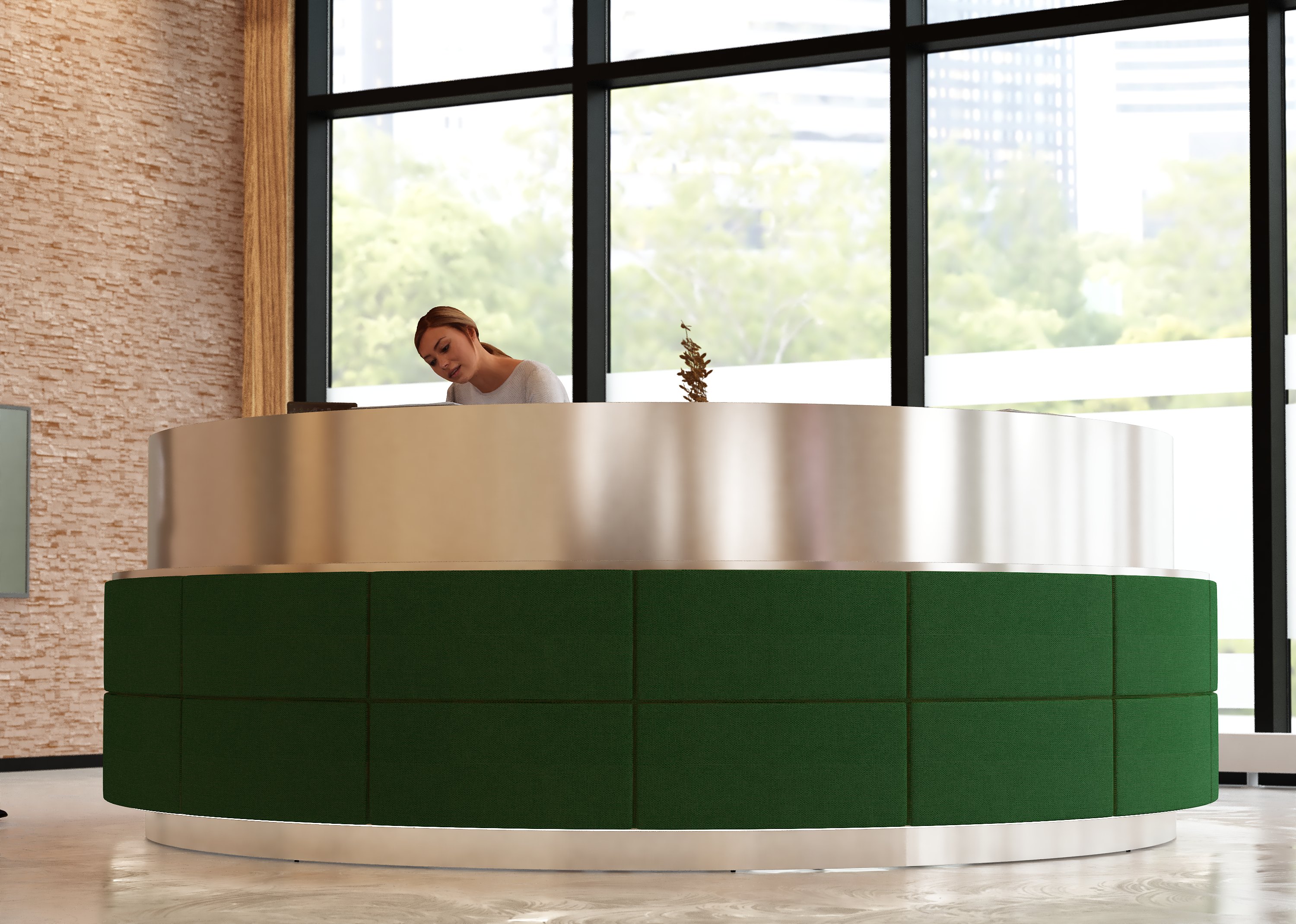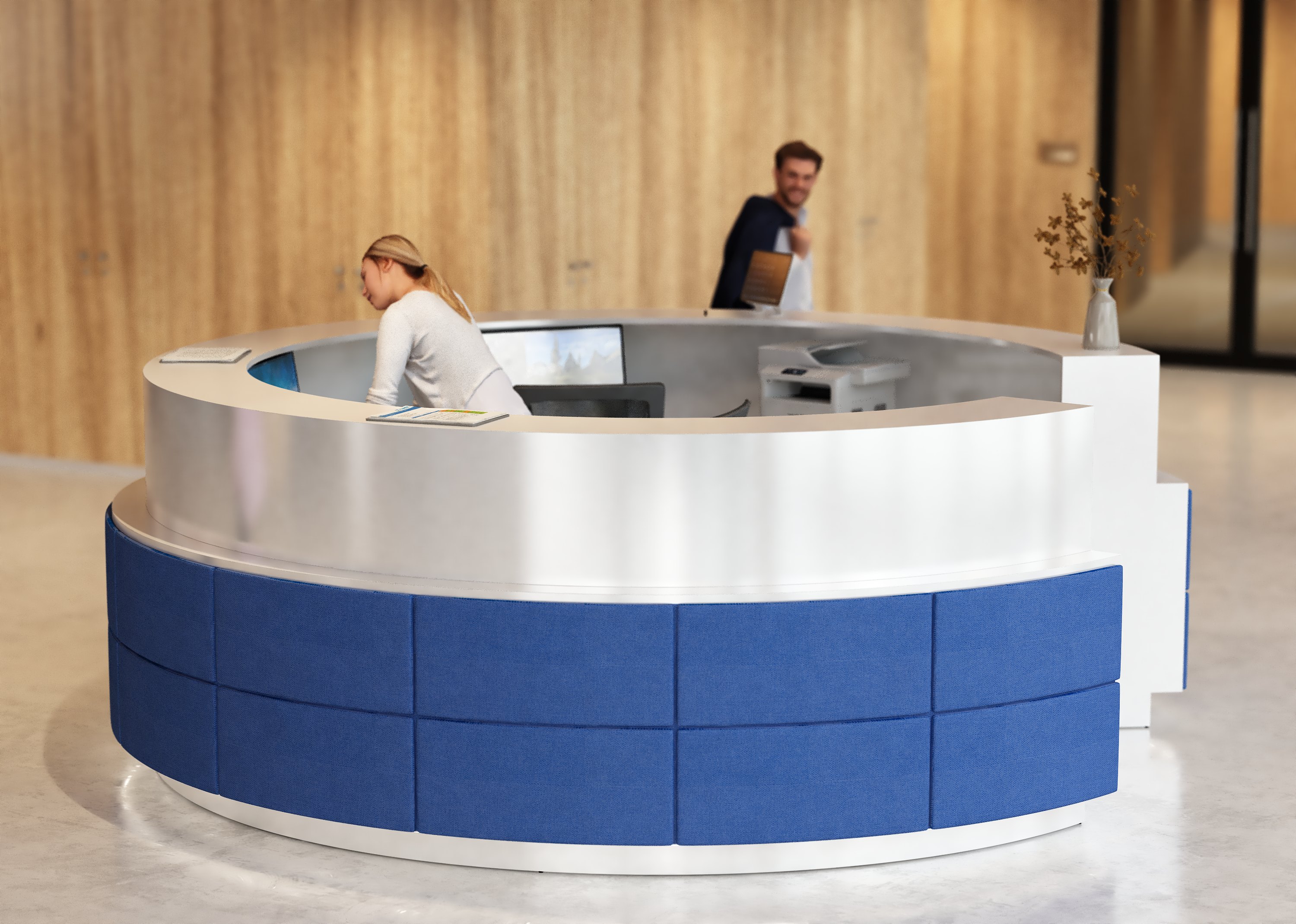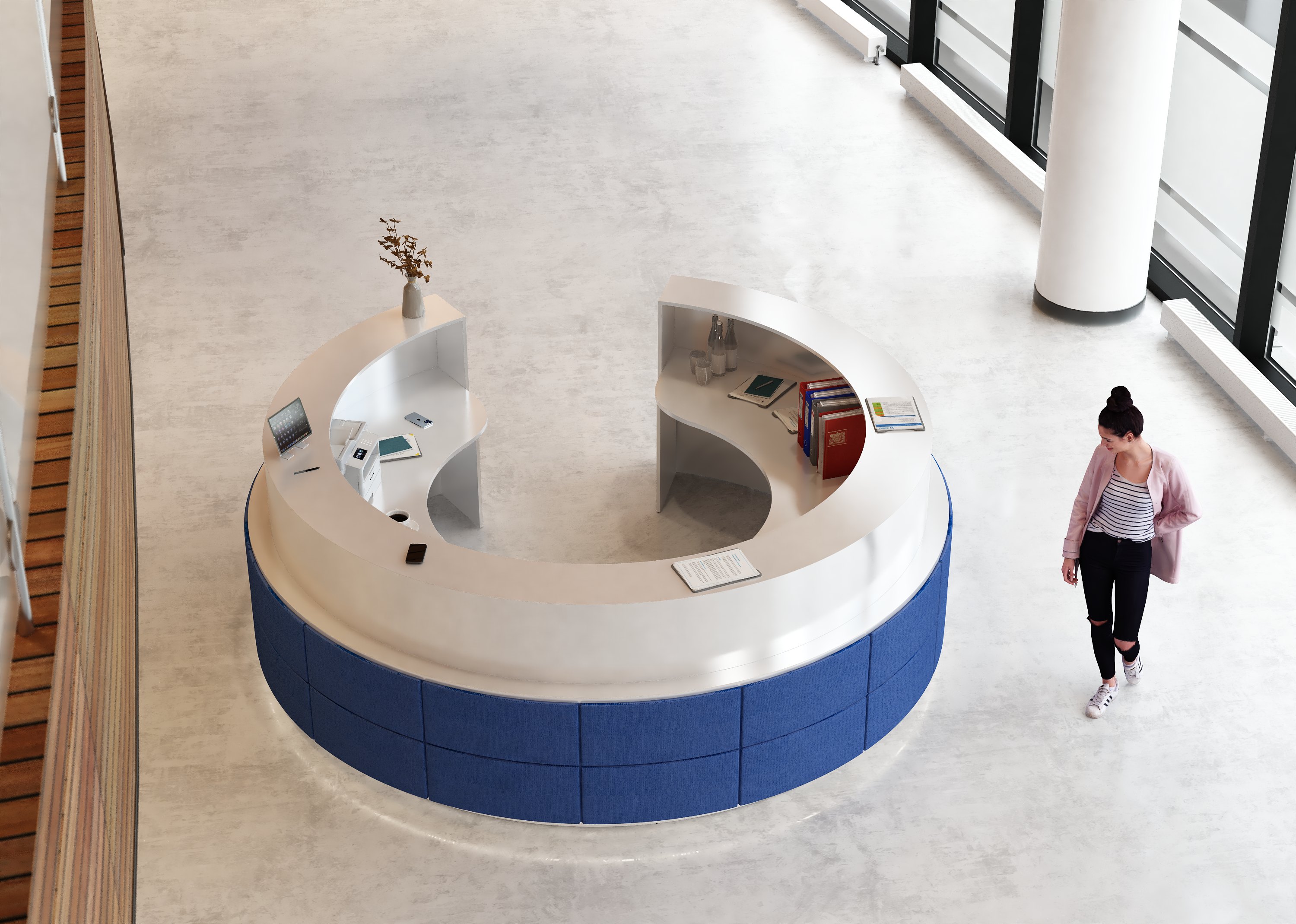 • Część frontowa recepcji o wysokości 115 cm zapewnia komfortowe miejsce do pracy