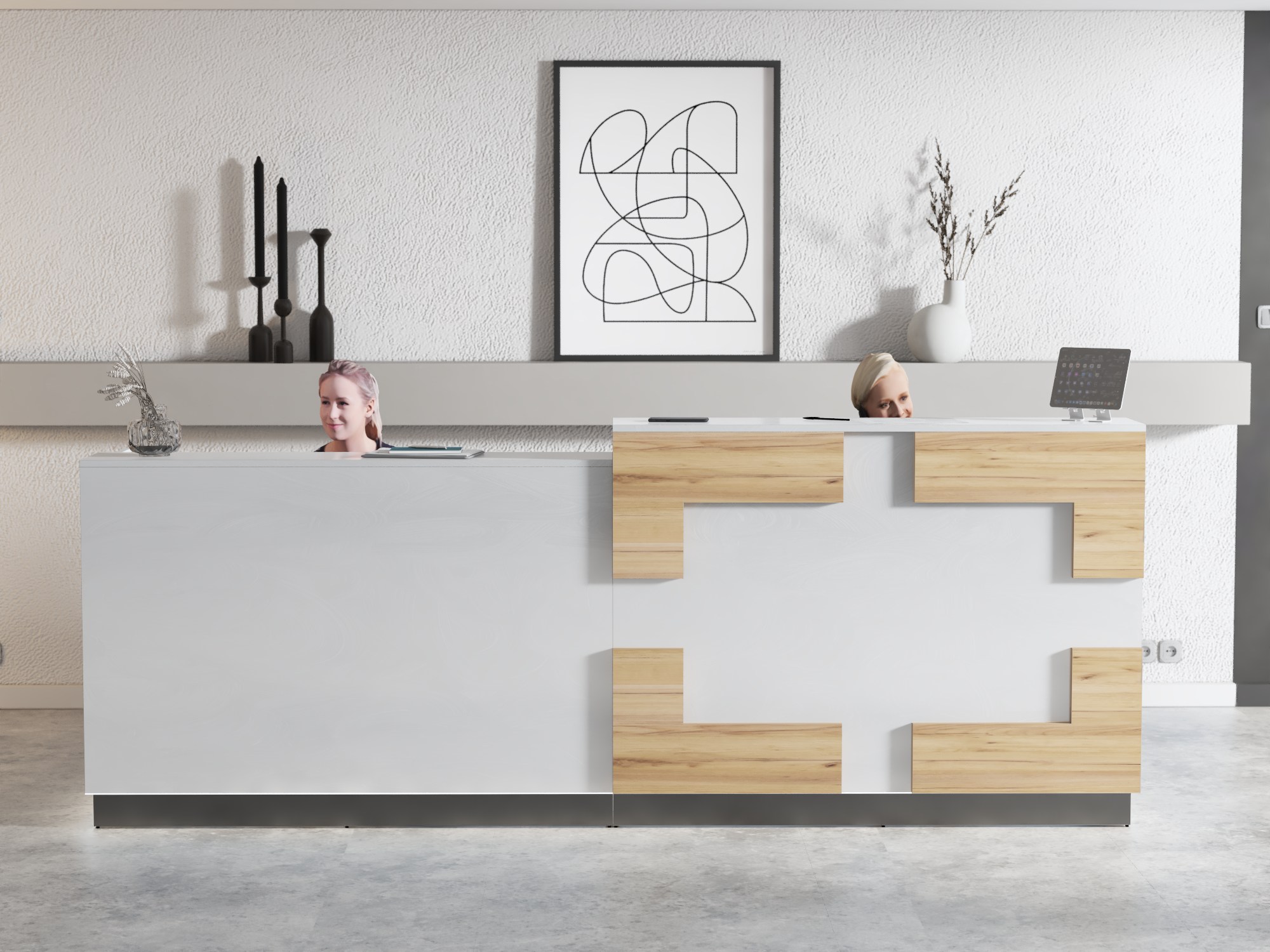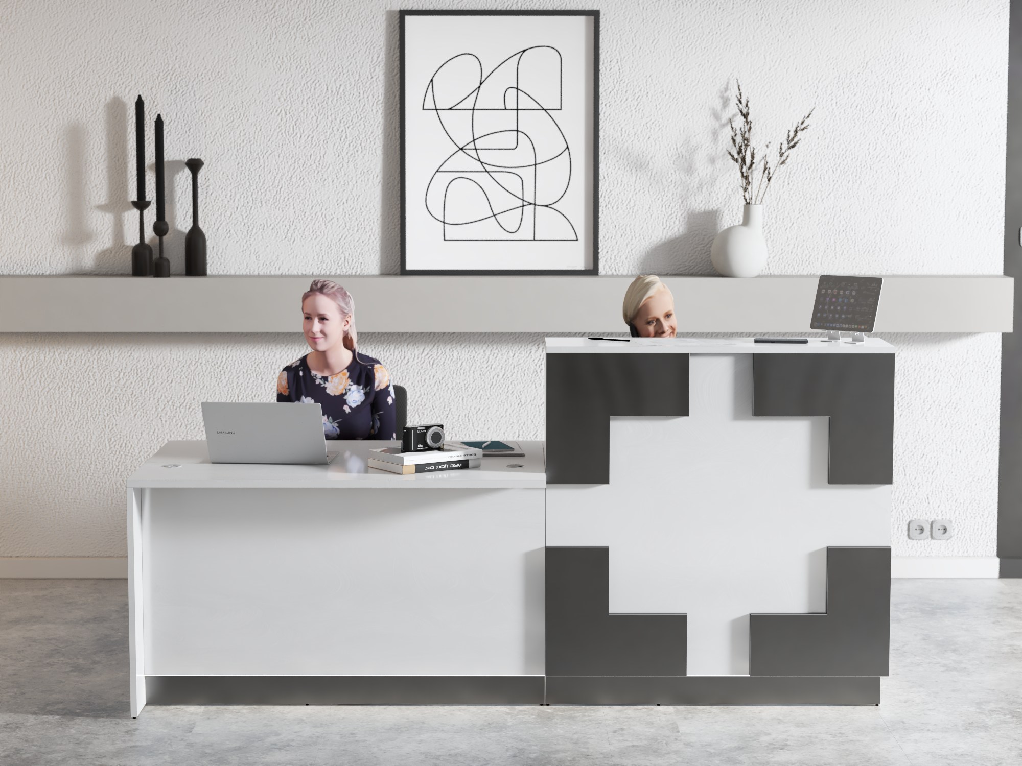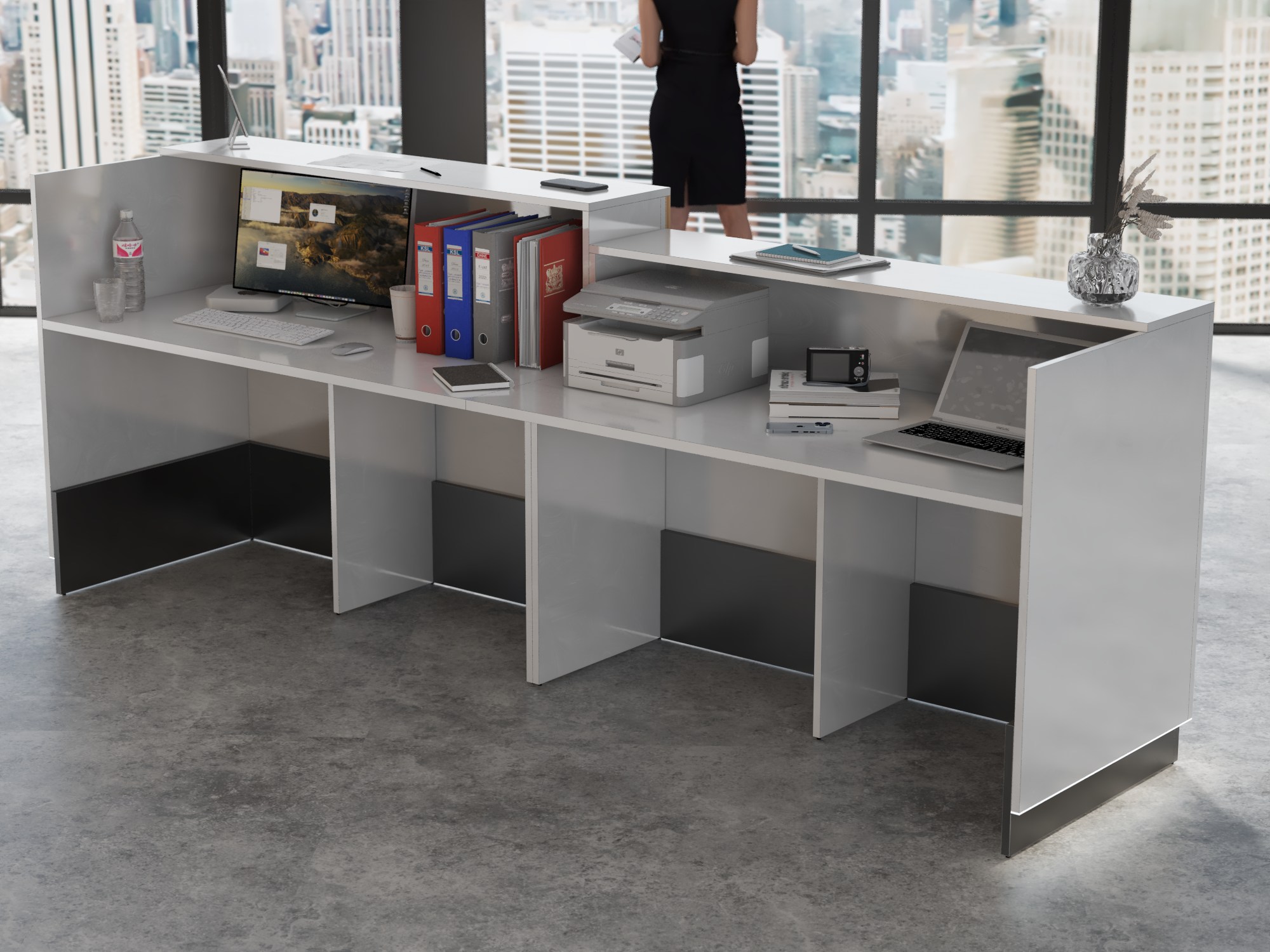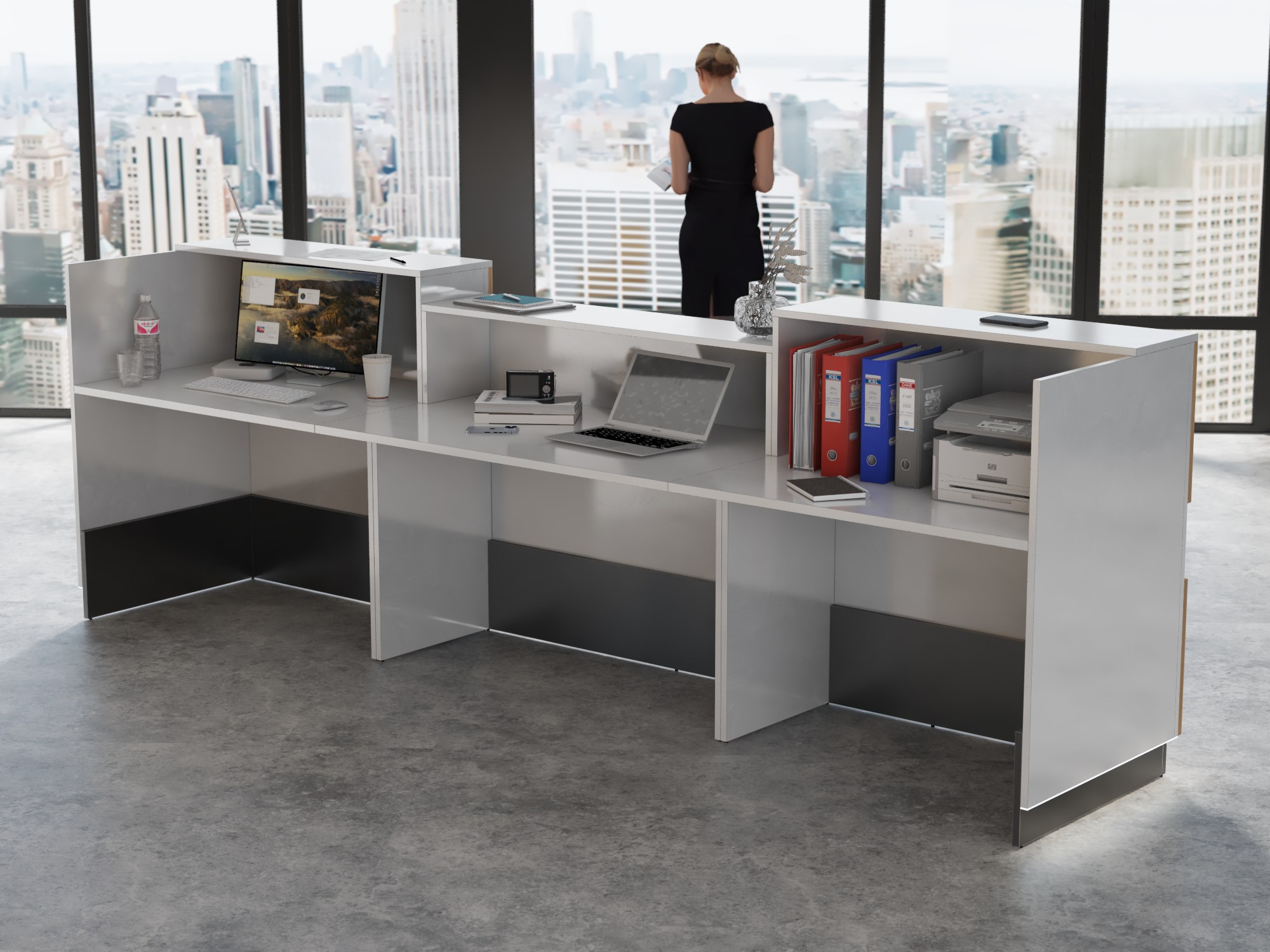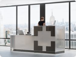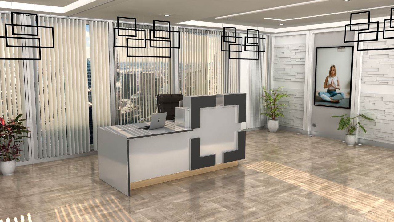 • Część frontowa recepcji o wysokości 115 cm zapewnia komfortowe miejsce do pracy