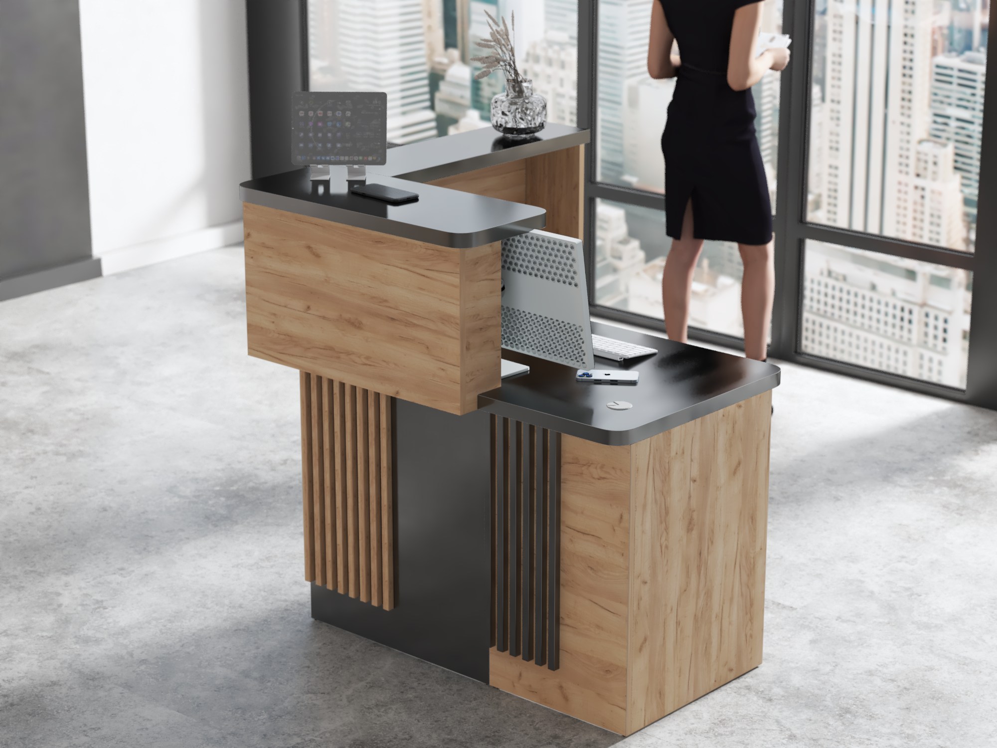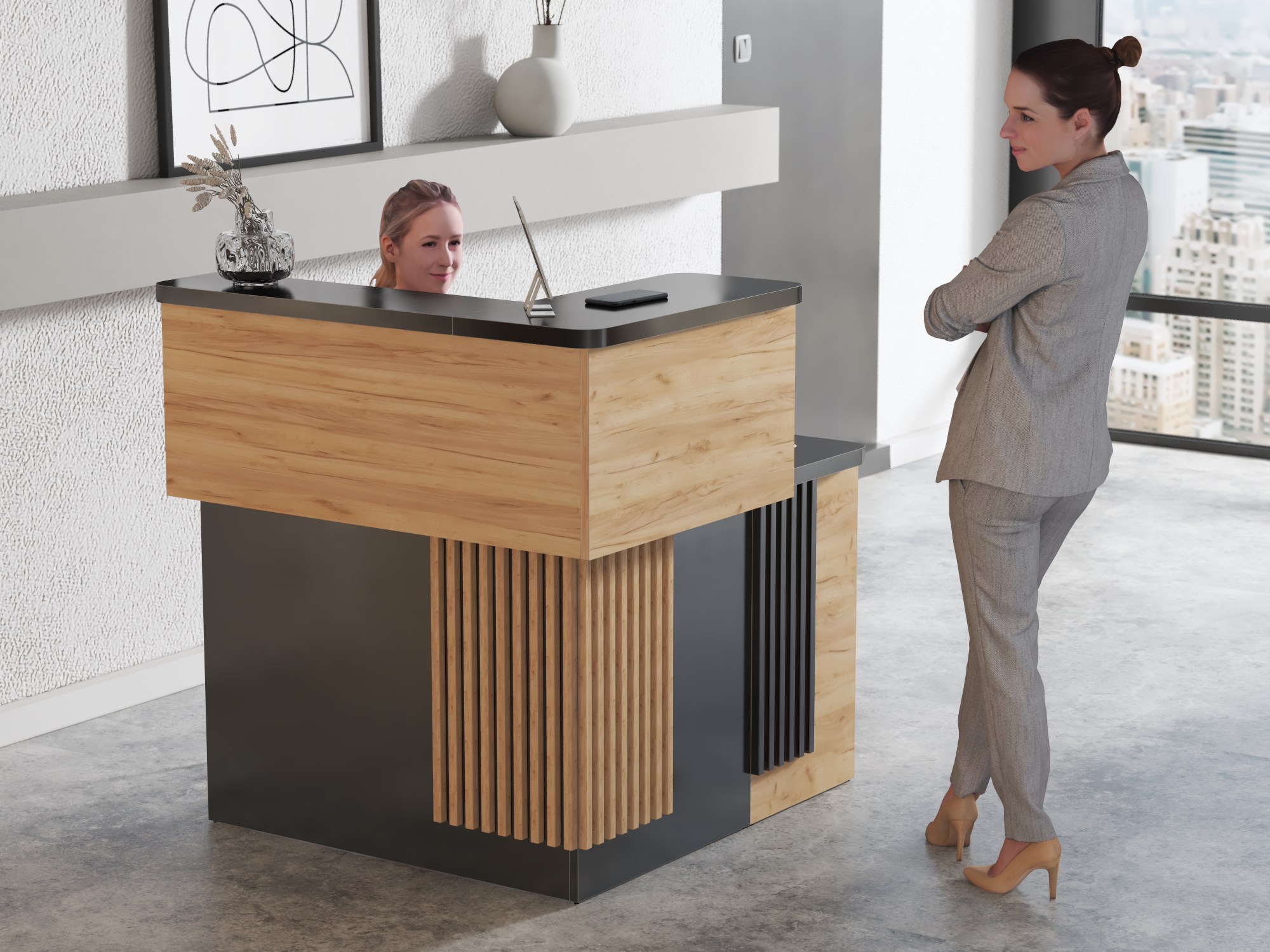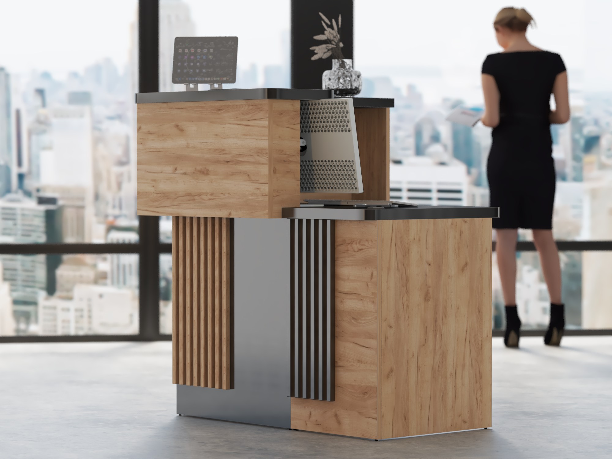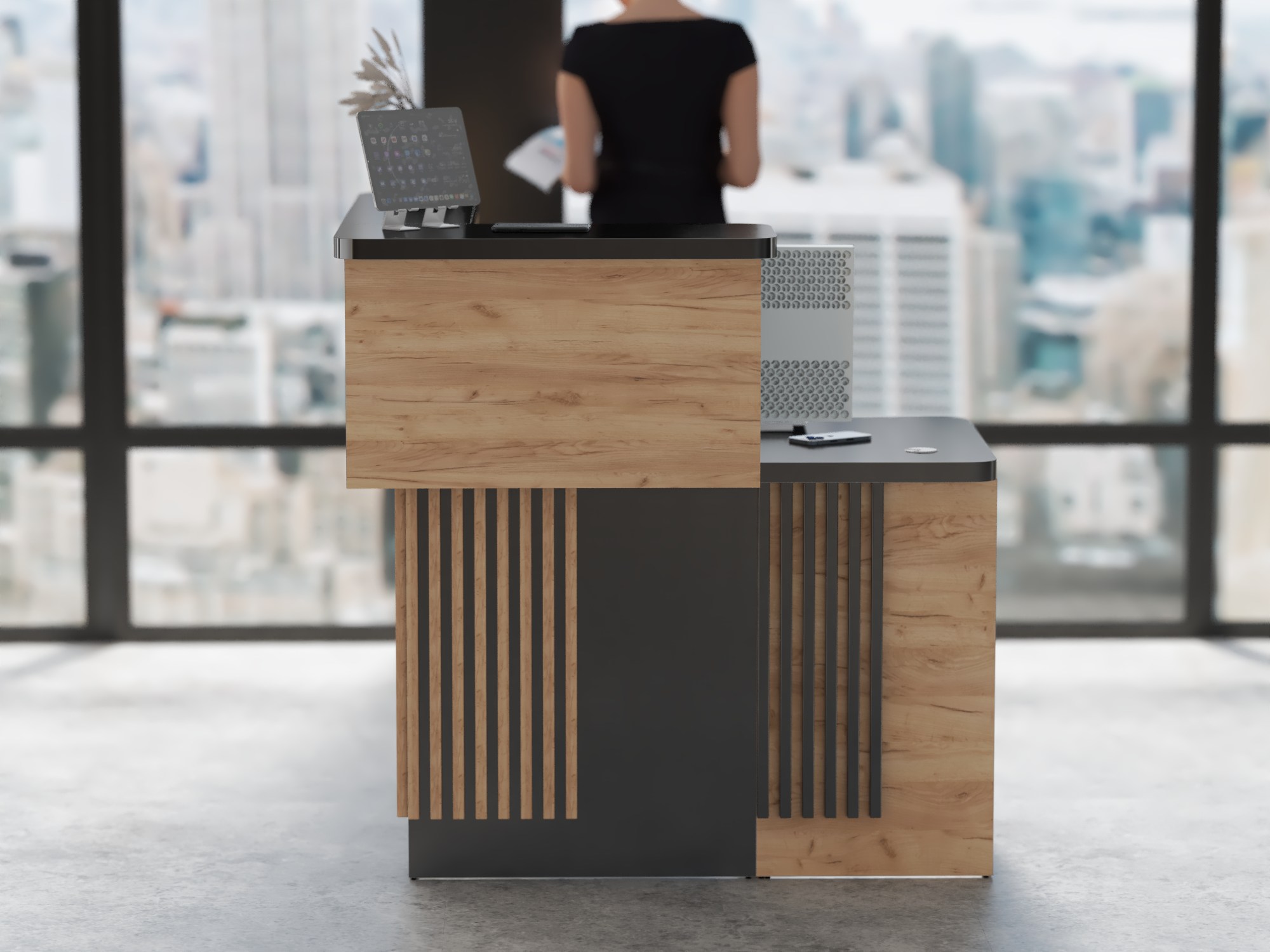 • Część frontowa recepcji o wysokości 115 cm zapewnia komfortowe miejsce do pracy