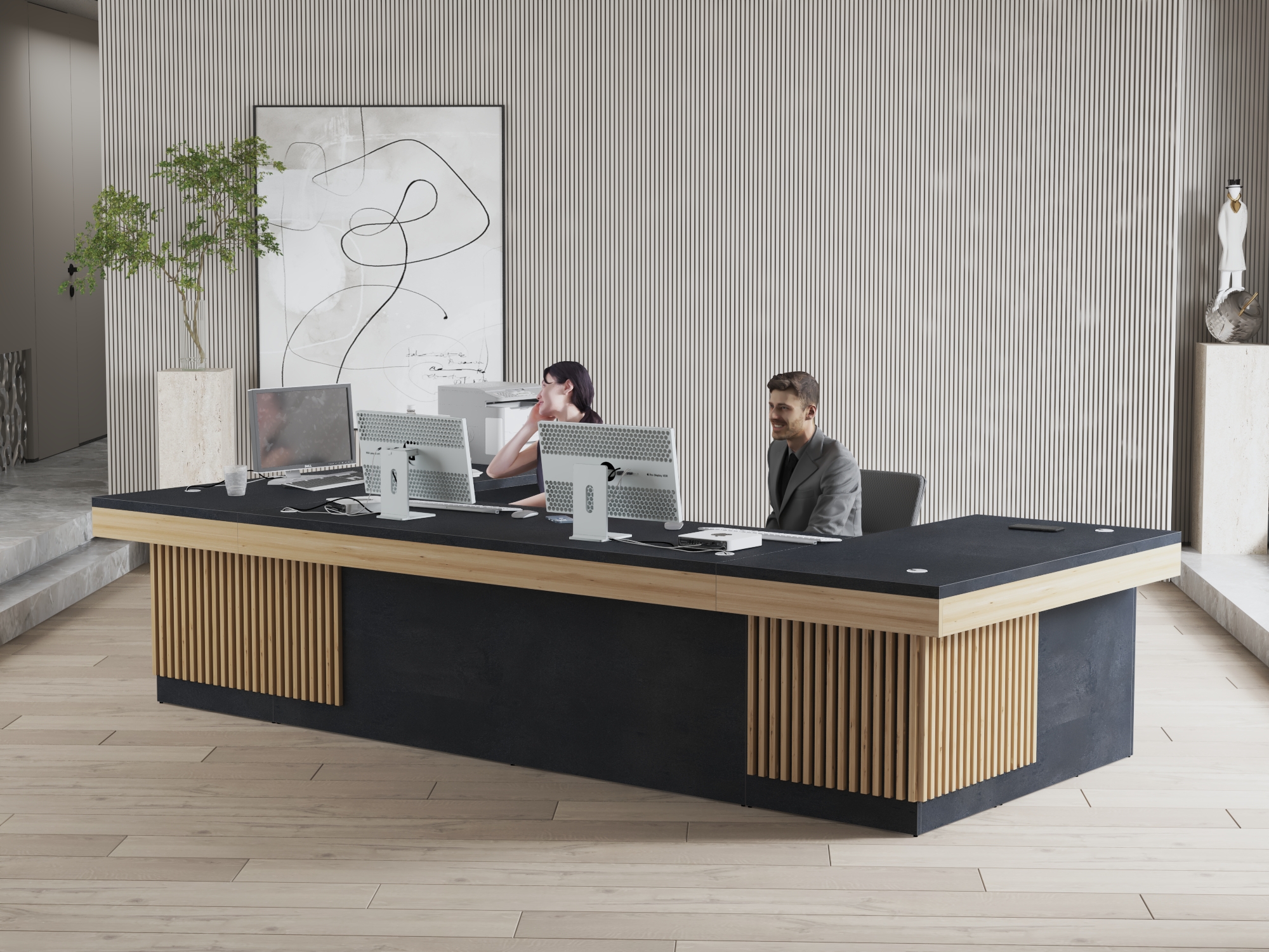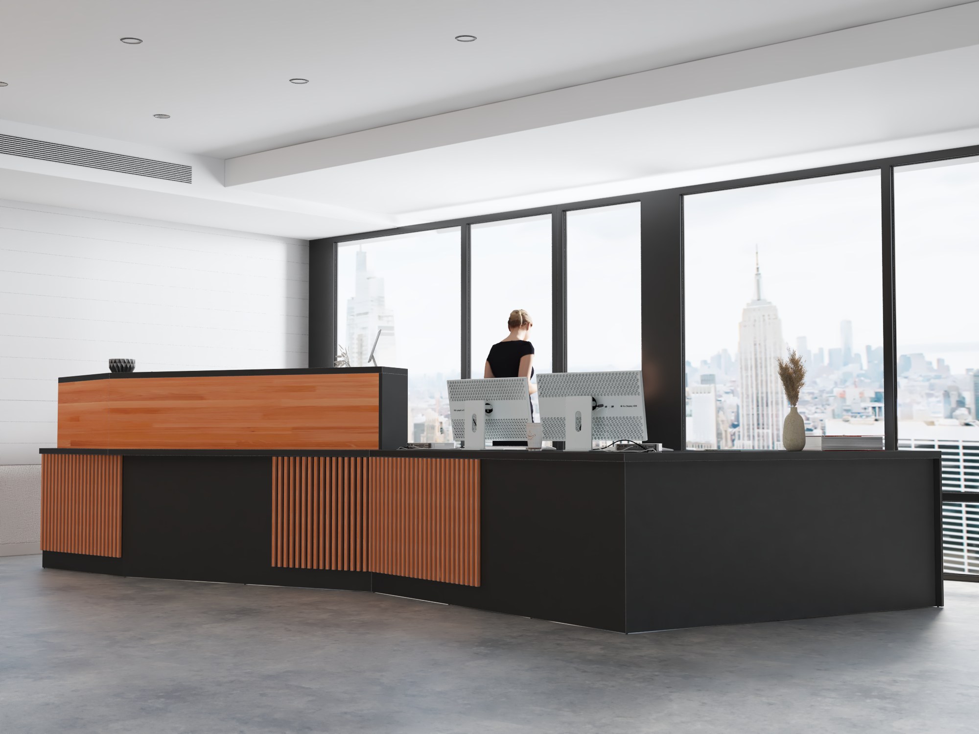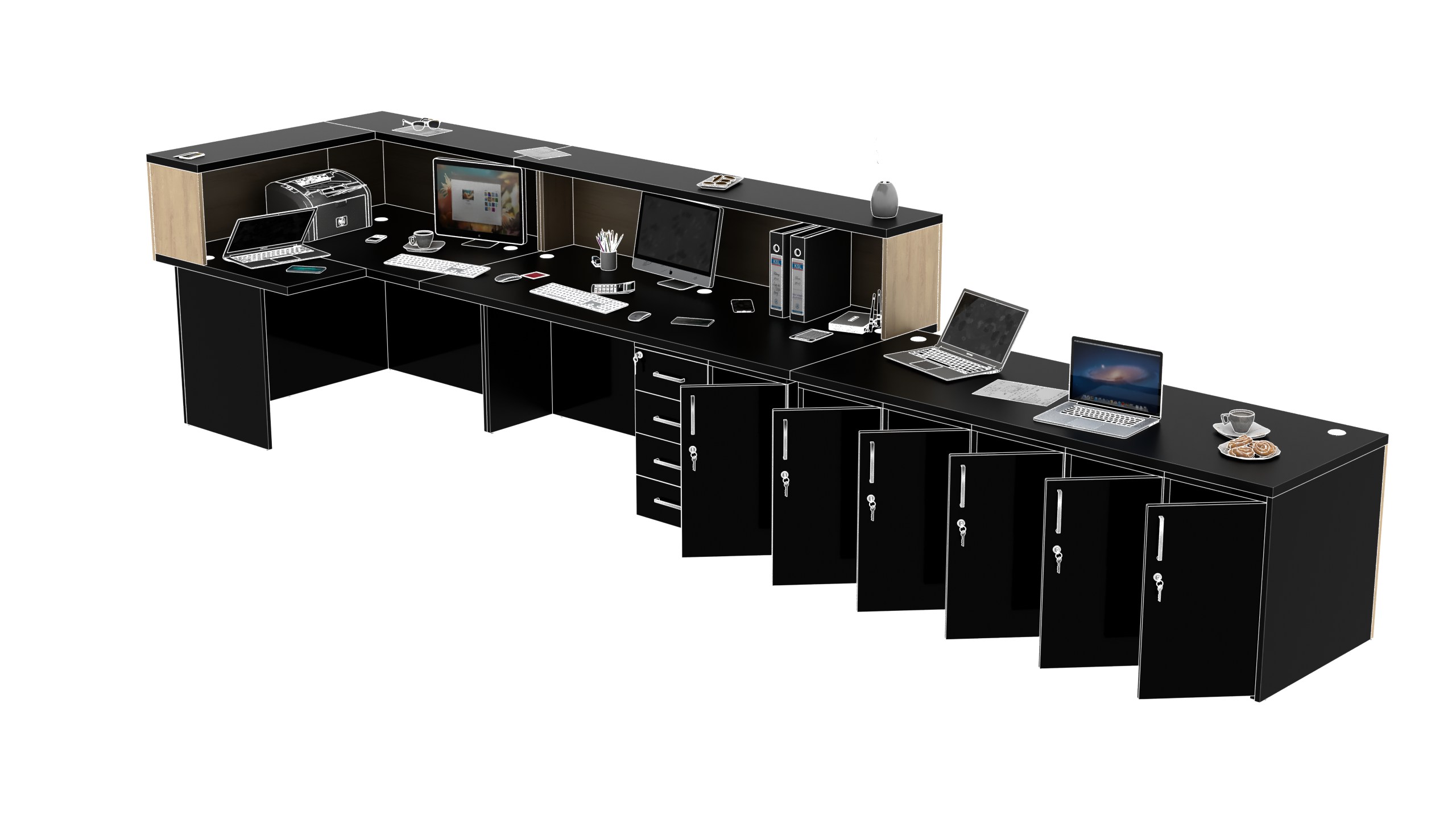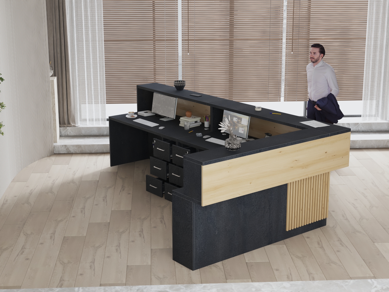 • Część frontowa recepcji o wysokości 115 cm zapewnia komfortowe miejsce do pracy