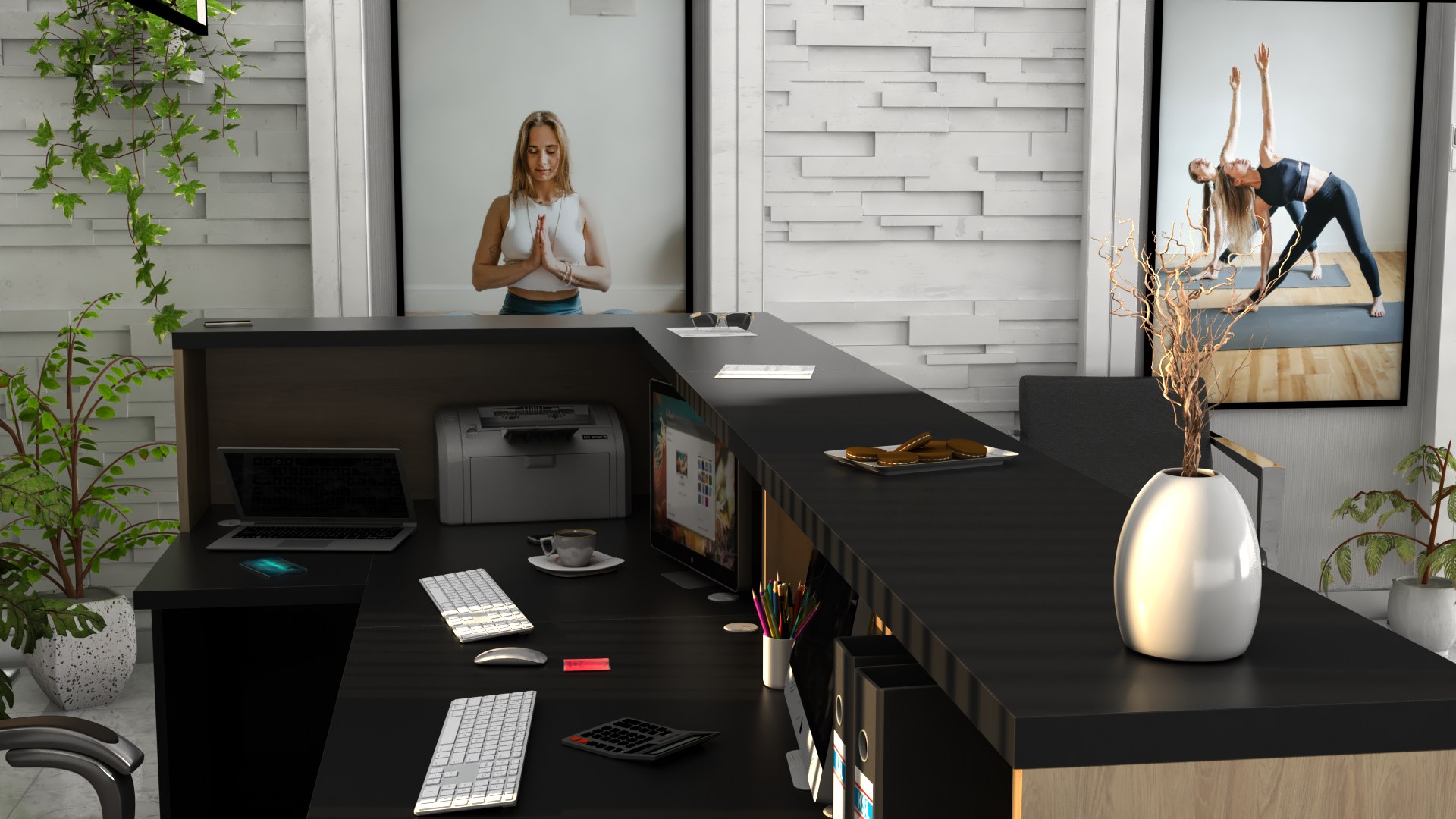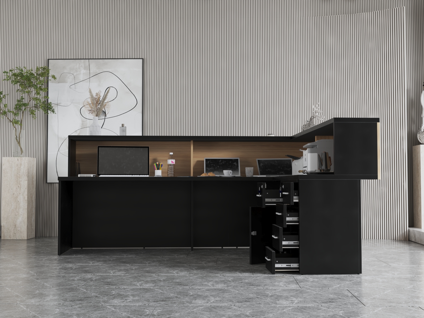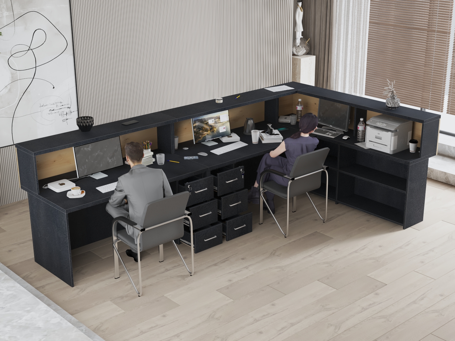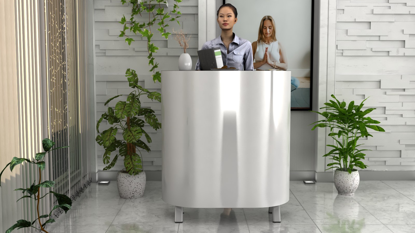 • Część frontowa recepcji o wysokości 115 cm zapewnia komfortowe miejsce do pracy