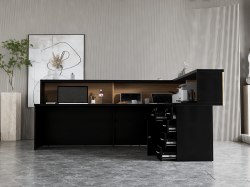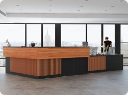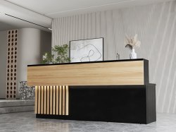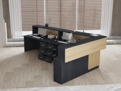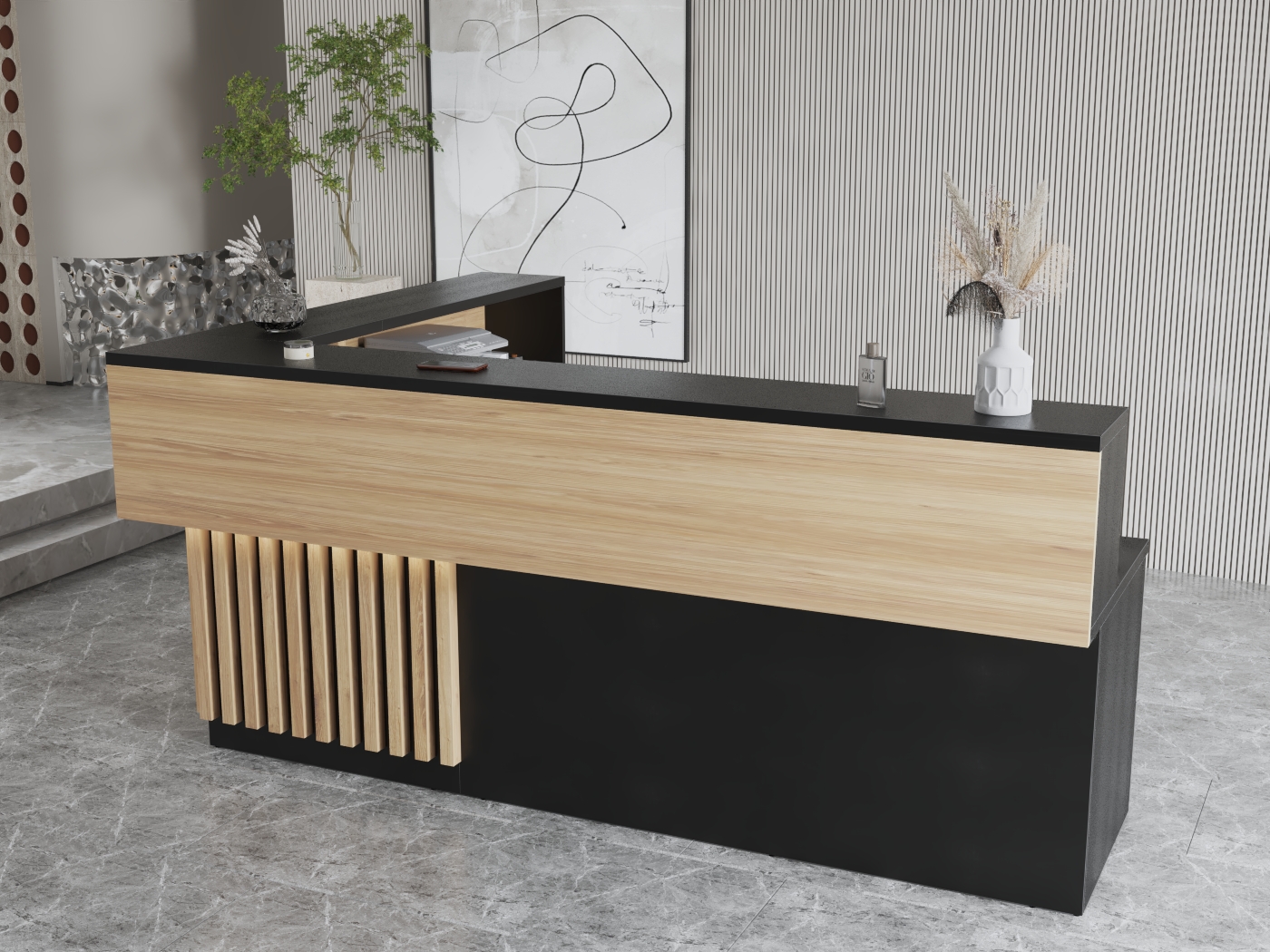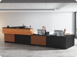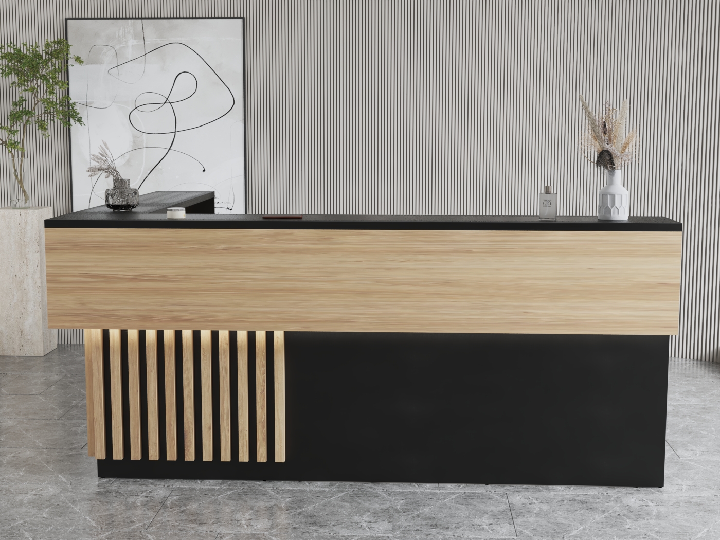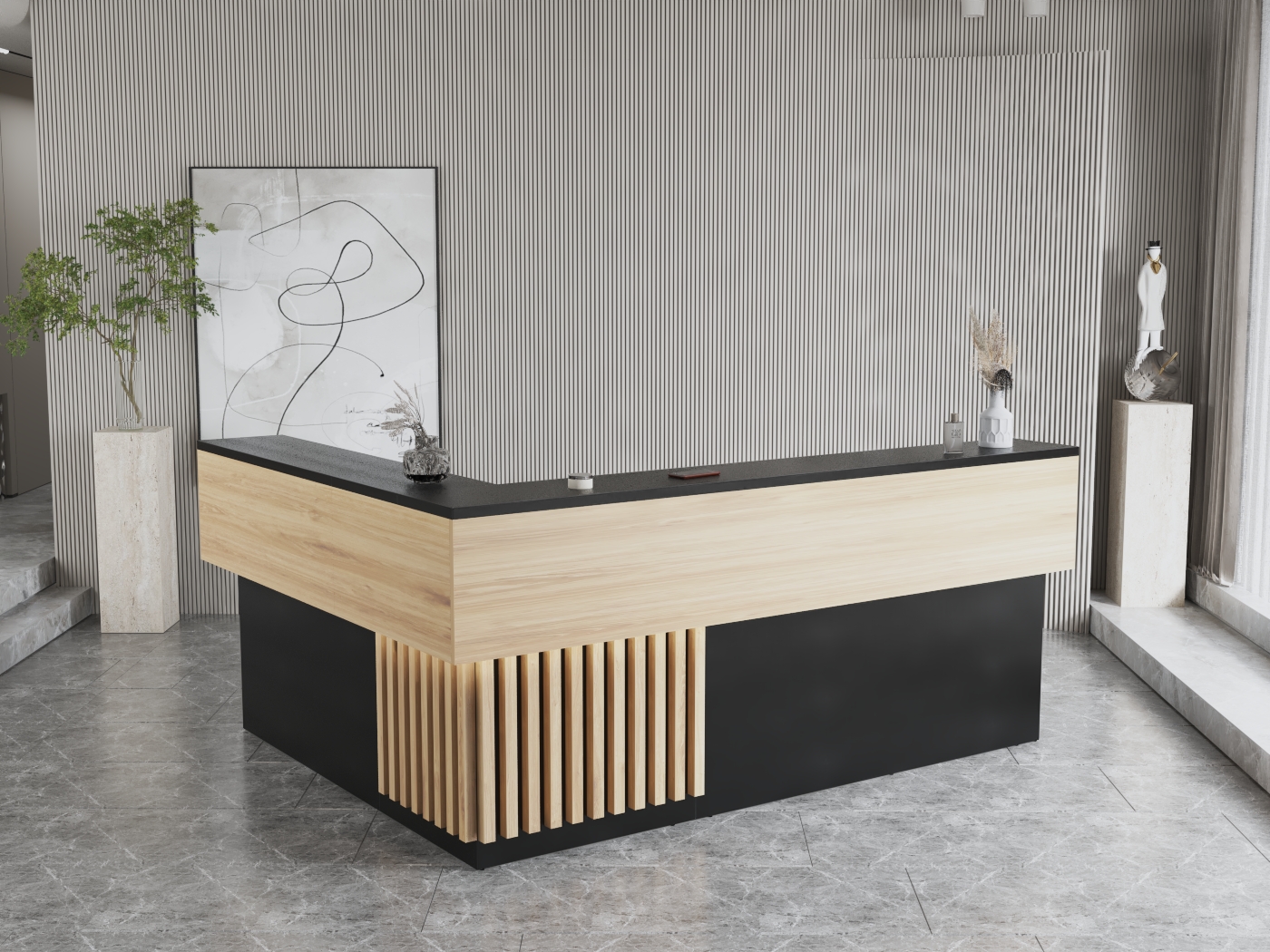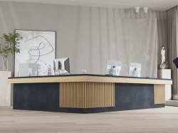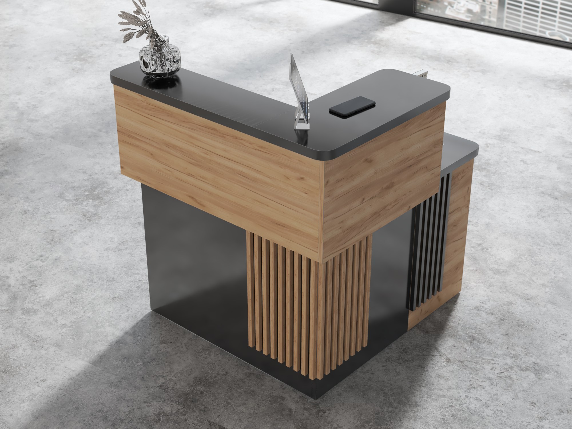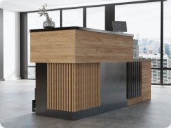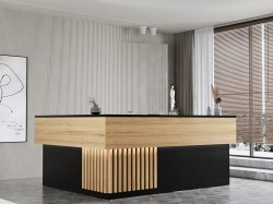 Drewno to symbol luksusu w dzisiejszych czasach gdzie wszystko co nas otacza jest w większości syntetyczne. Motywem przewodnim recepcji R180 są drewniane lamele, frontowe sklejkowe panele, blaty z naturalnego drewna i płyta w kolorze głębokiej czerni w wersji antifinger. Luksusowe materiały odpowiednio zbilansowano w tradycyjnej bryle prostopadłościanu i tak powstała lada R180. Klasyka, natura i luksus w jednym.