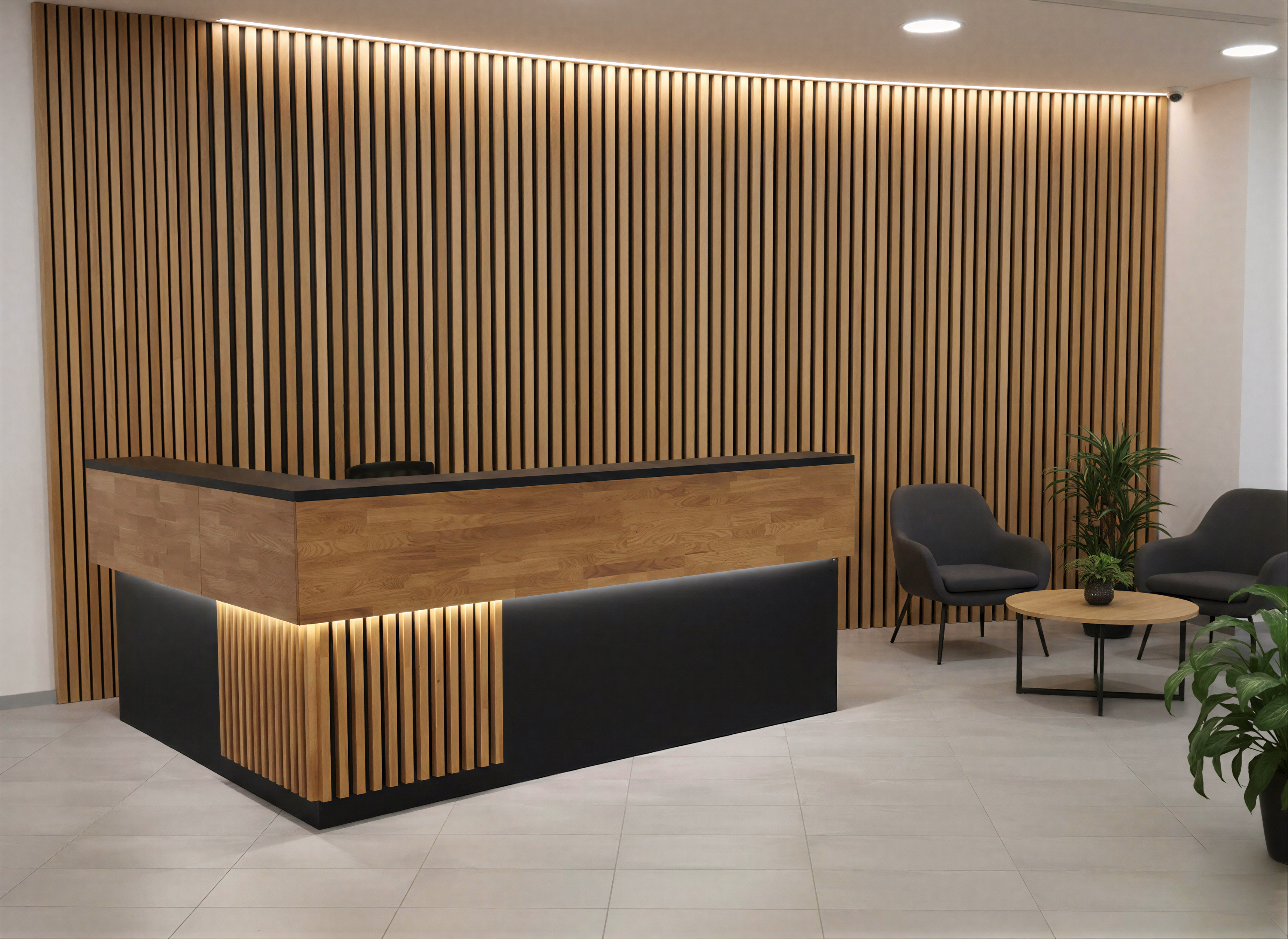 • Możliwość podświetlenia elementów recepcji listwą LED 4000K (neutralna barwa) lub innym odcieniem wg potrzeb