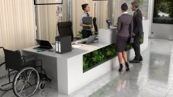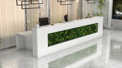 Tam gdzie natura wkracza do architektury wnętrz ta pojawia się recepcja R184. Popularny chrobotek czy odpowiednio dobrany zestaw roślin doniczkowych może stanowić piękne wypełnienie Państwa recepcji. Fantastyczna zieleń umieszczona w szlachetnej ramie frontowej wykonanej z corianu będzie wymowną wizytówką Państwa SPA, salonu masażu, kliniki medycyny estetycznej.