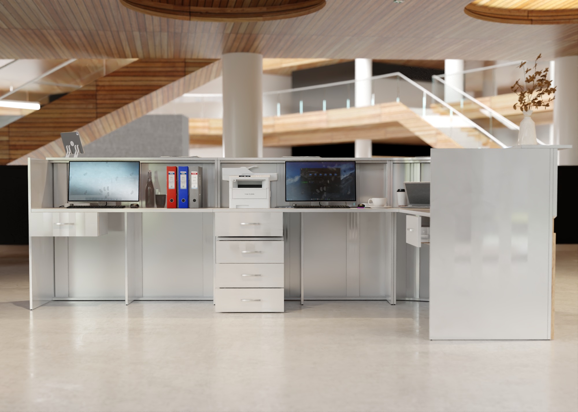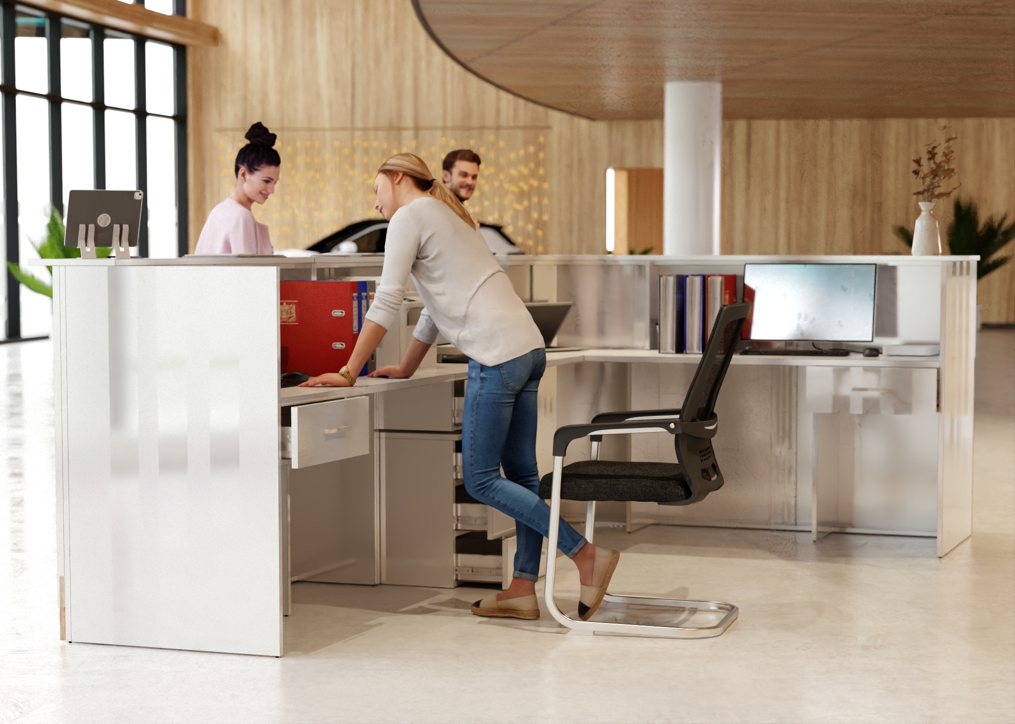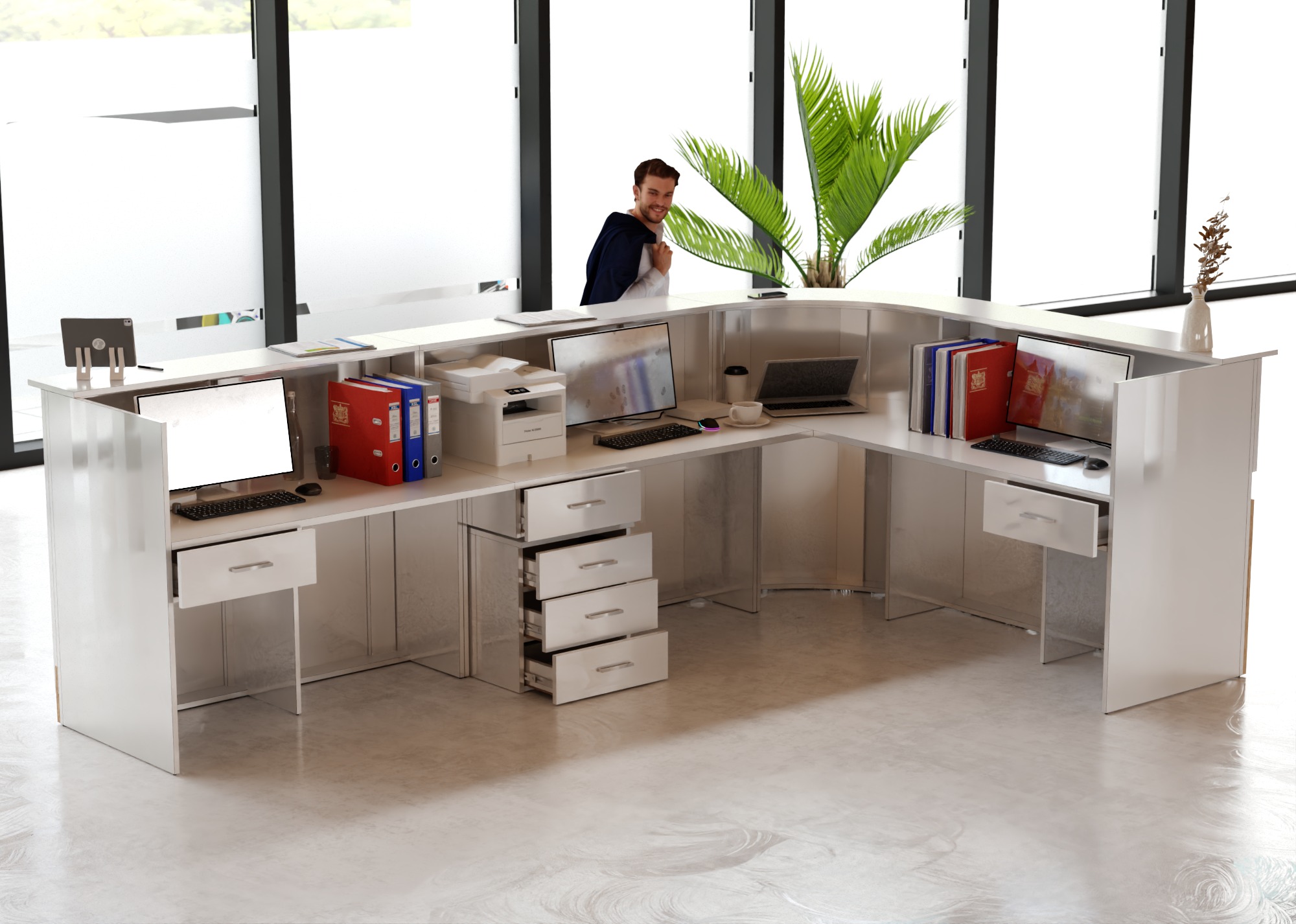 • Część frontowa recepcji o wysokości 115 cm zapewnia komfortowe miejsce do pracy