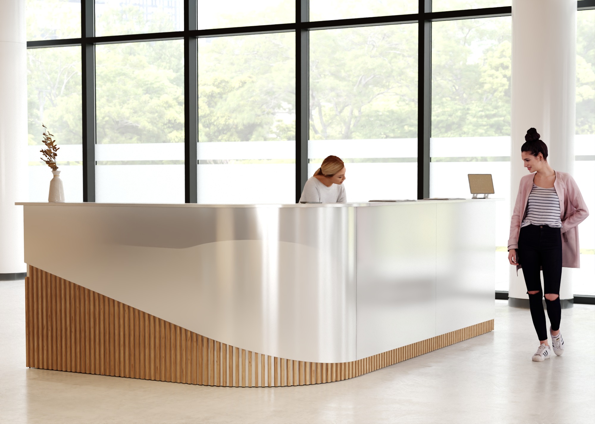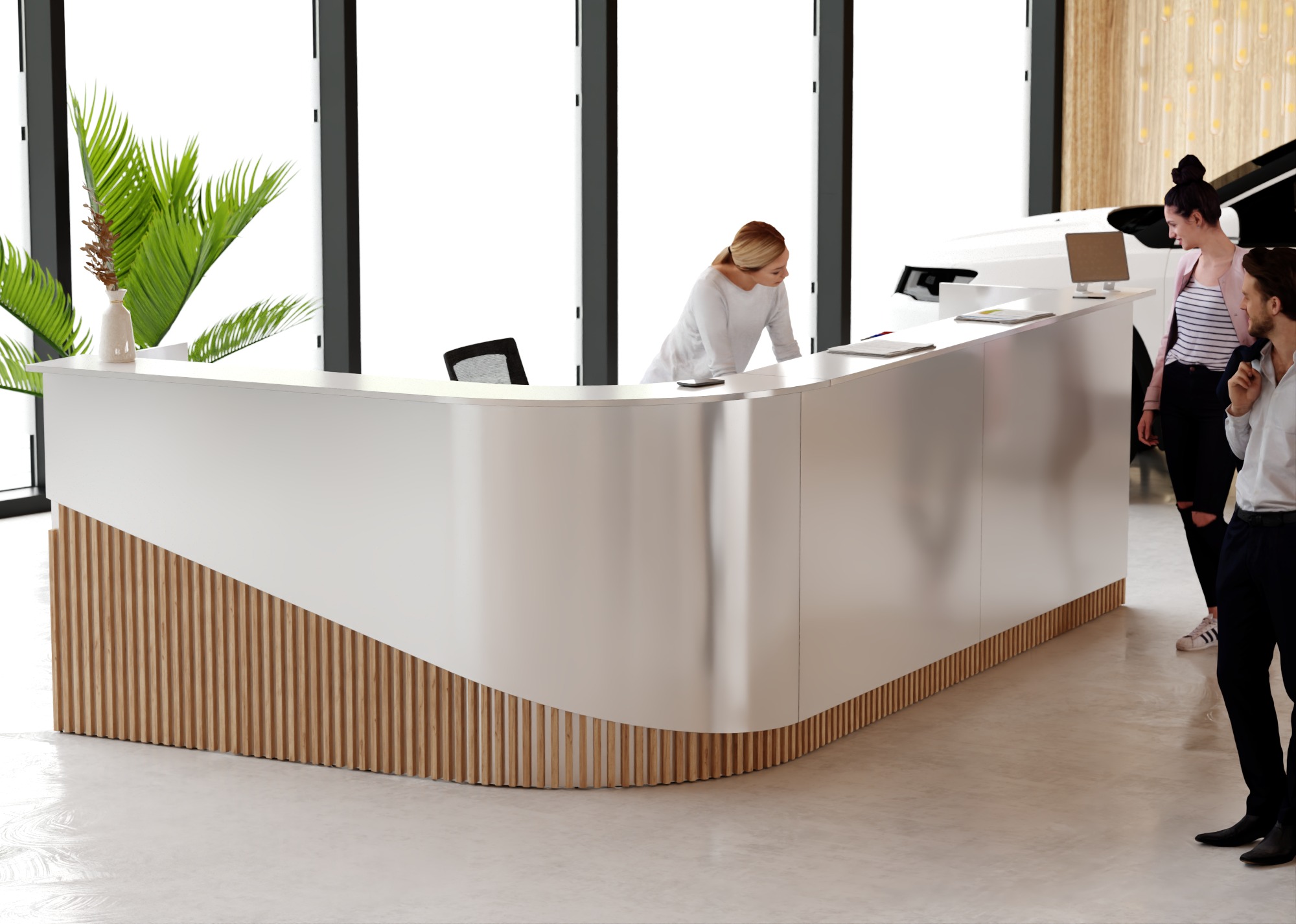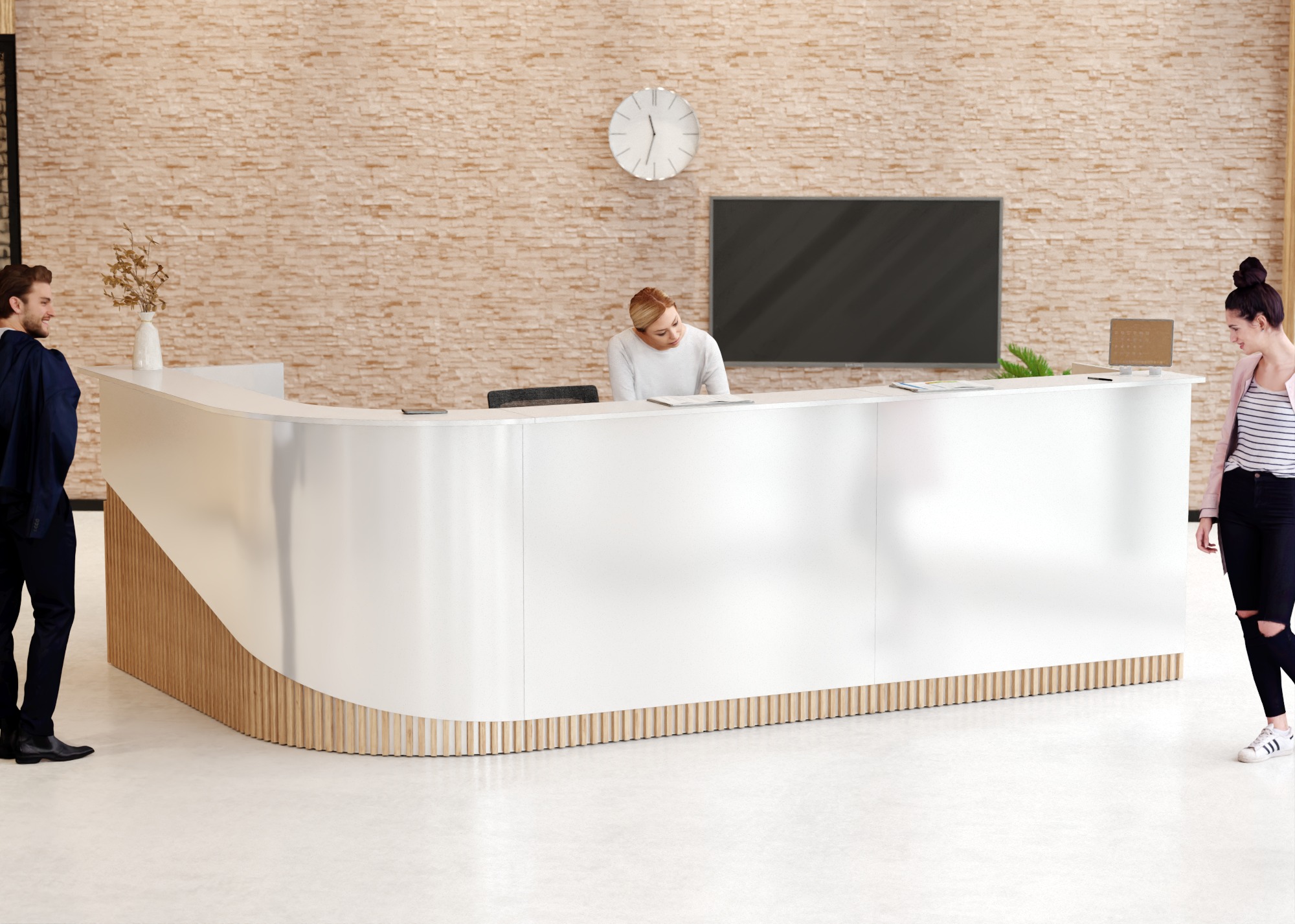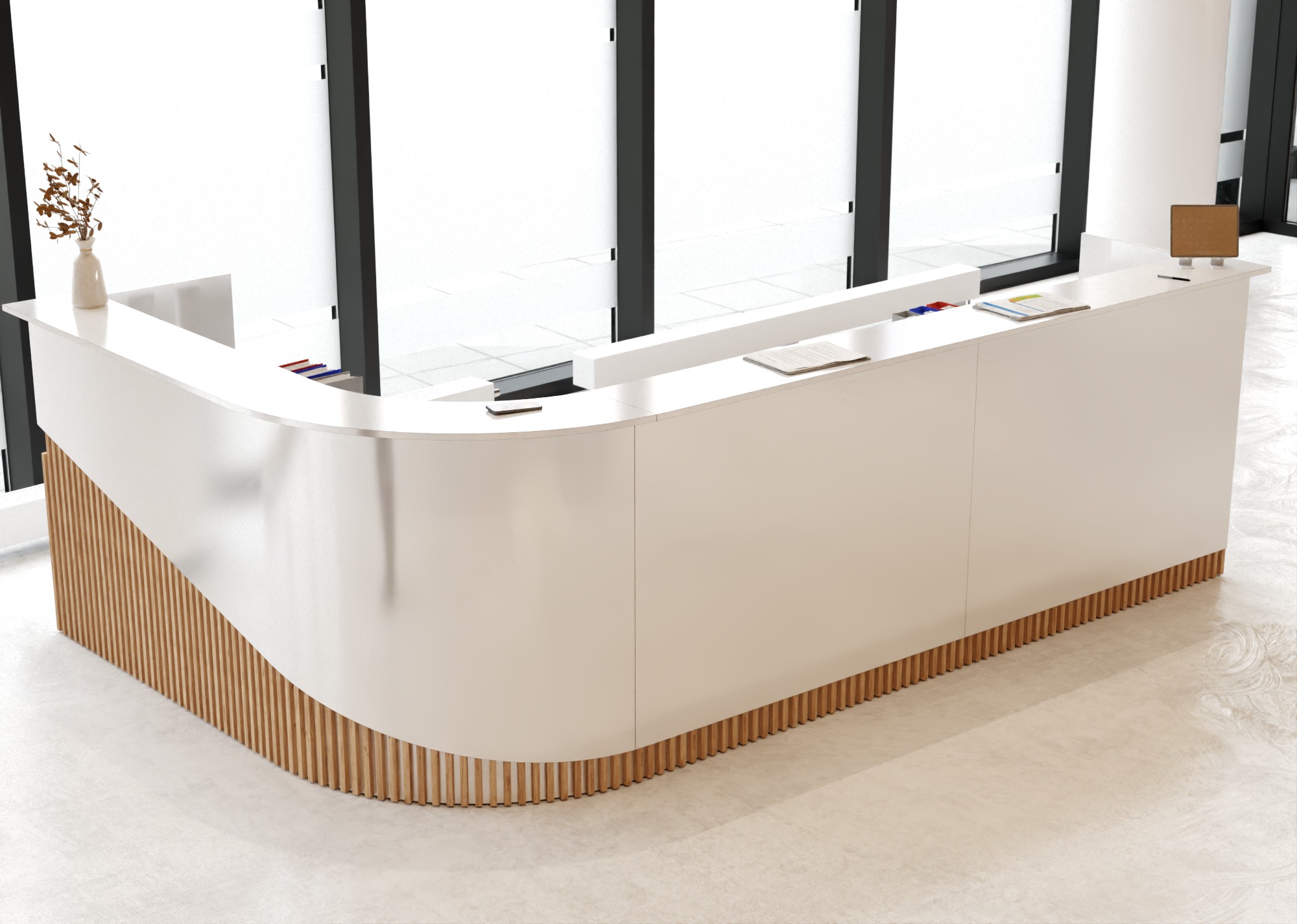 • Część frontowa recepcji o wysokości 115 cm zapewnia komfortowe miejsce do pracy