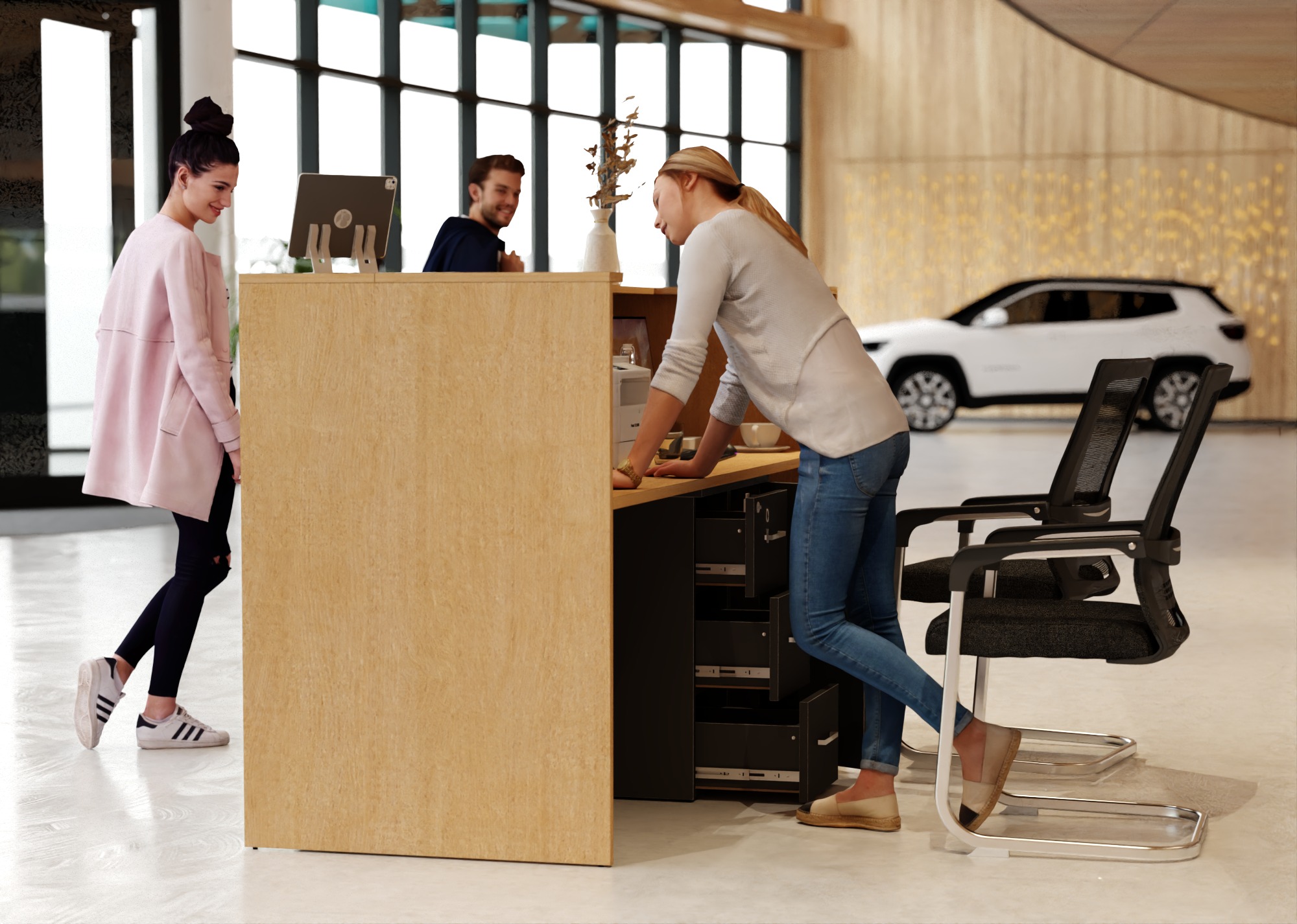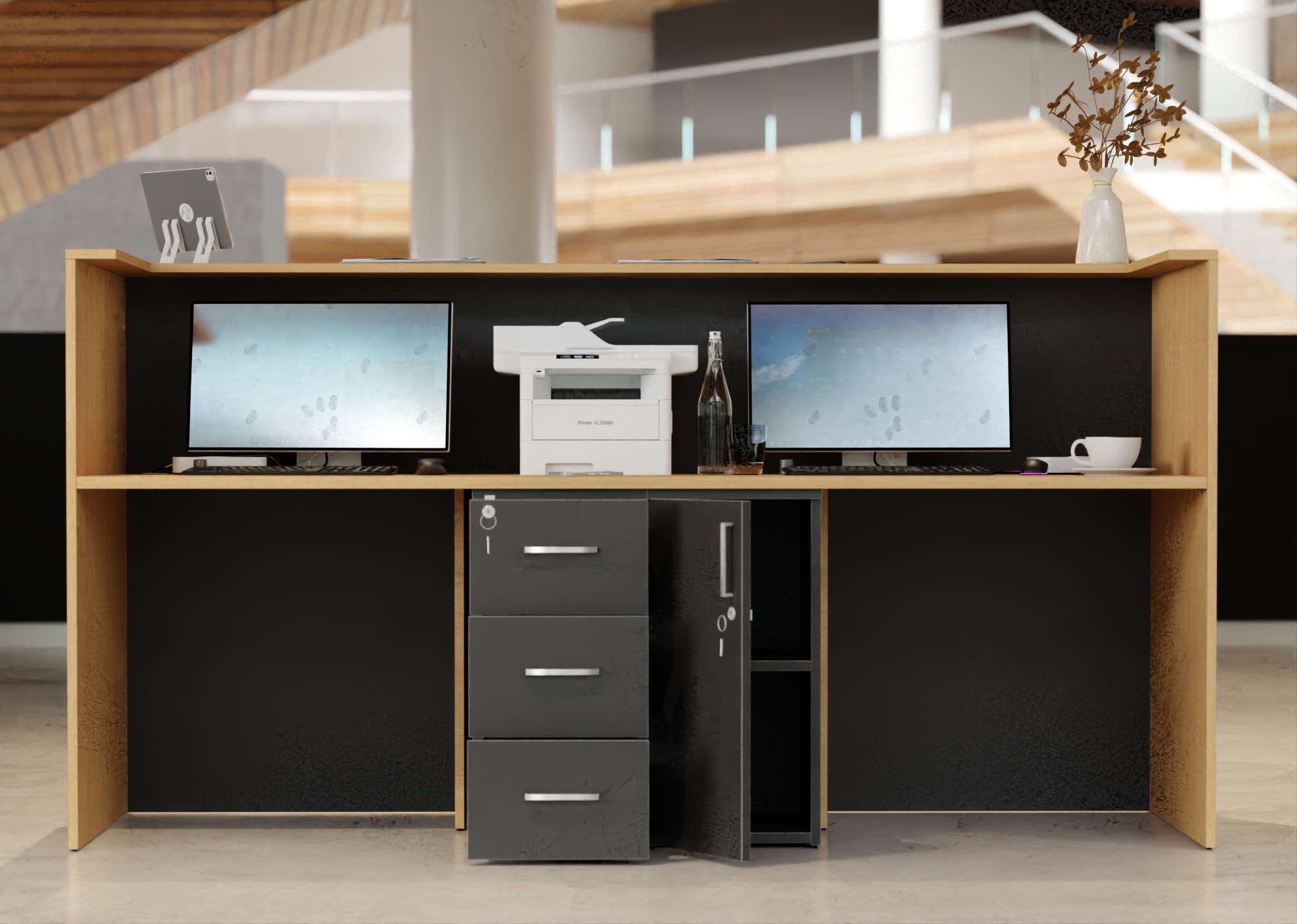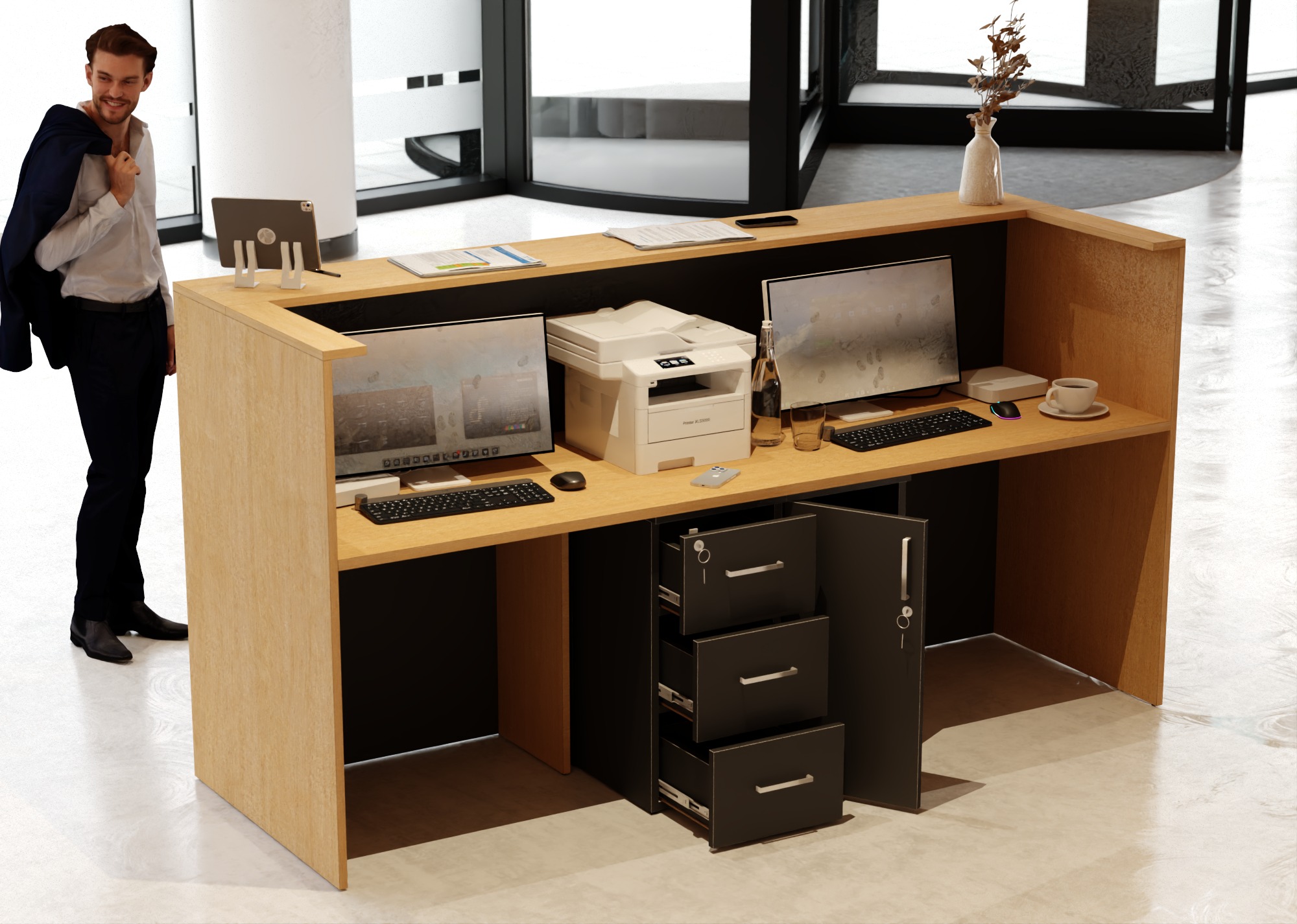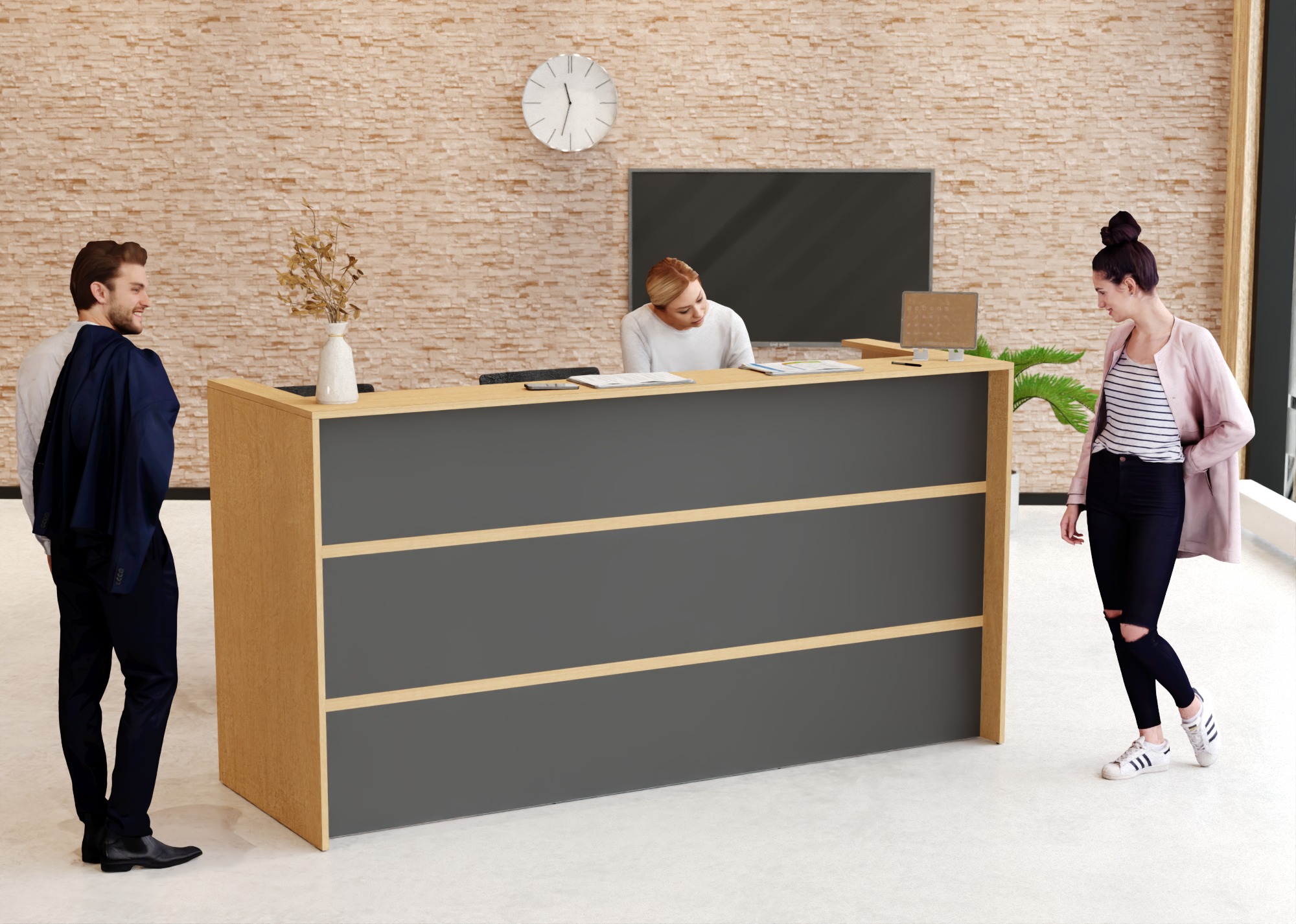 • Część frontowa recepcji o wysokości 115 cm zapewnia komfortowe miejsce do pracy