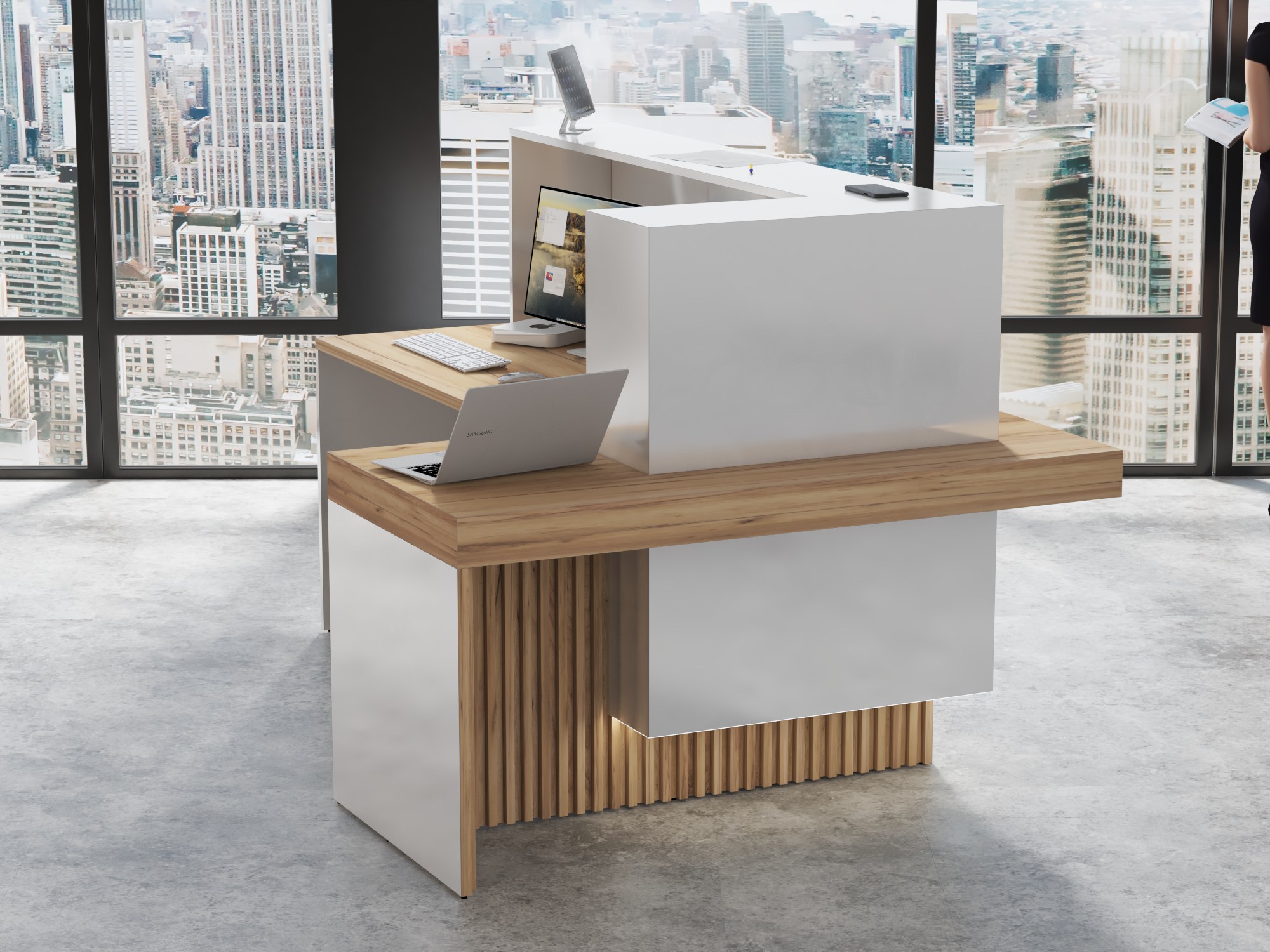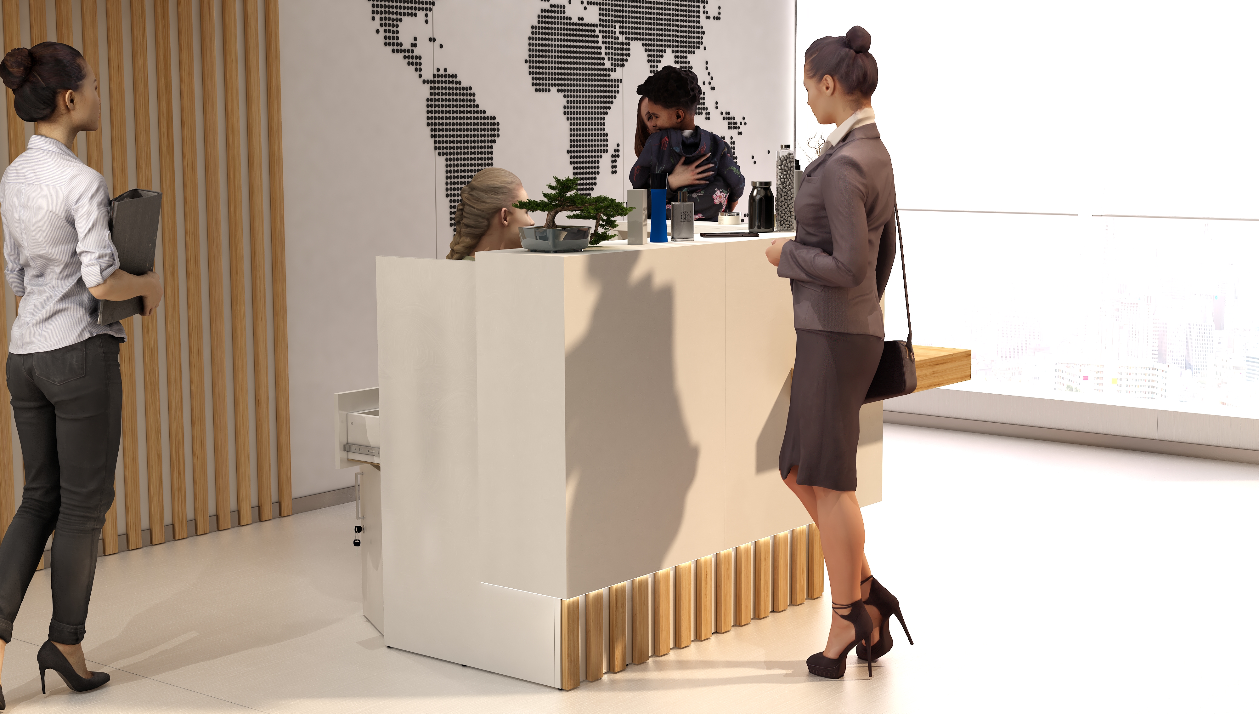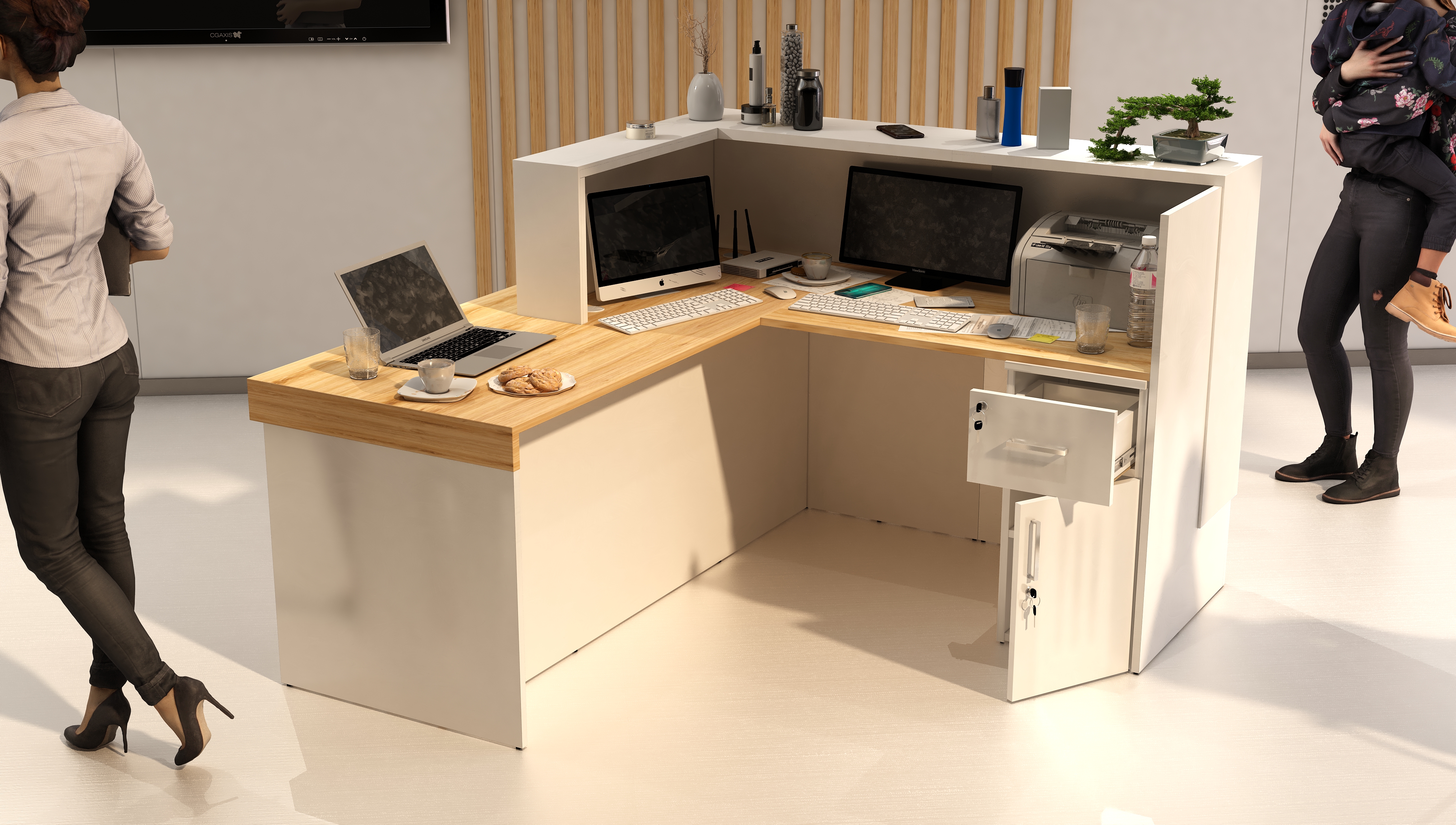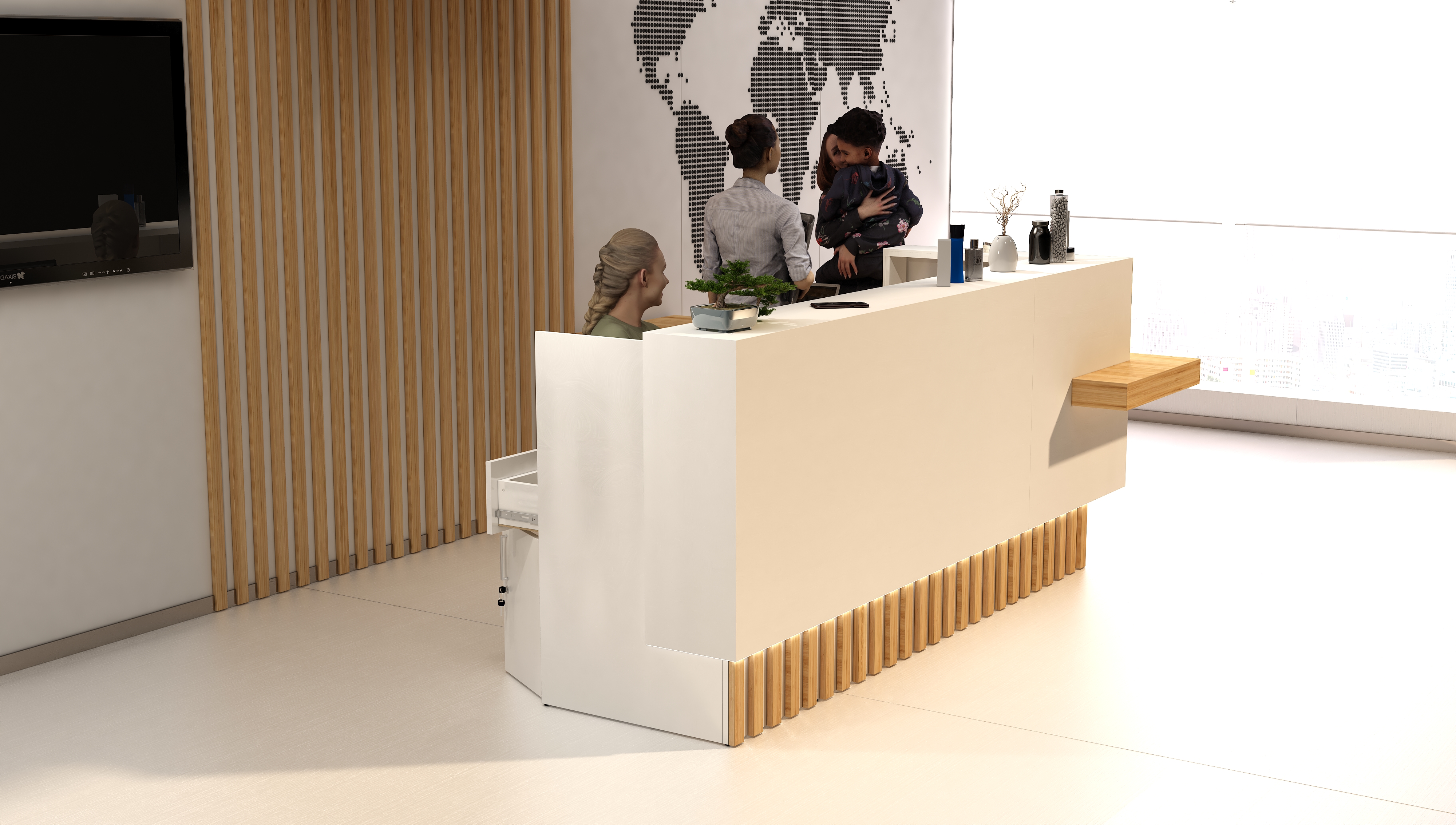• Część frontowa recepcji o wysokości 115 cm zapewnia komfortowe miejsce do pracy