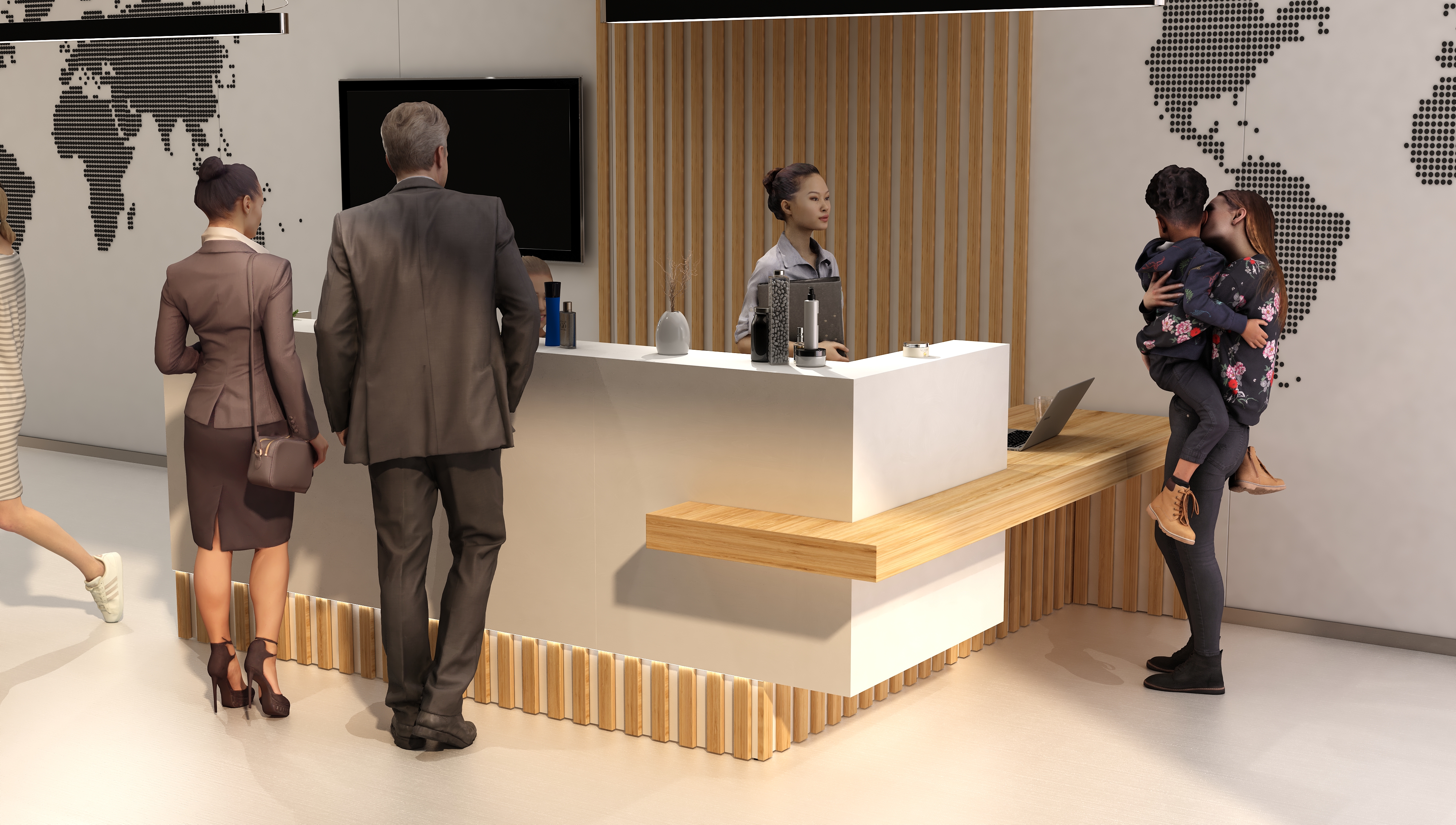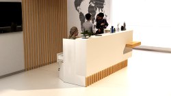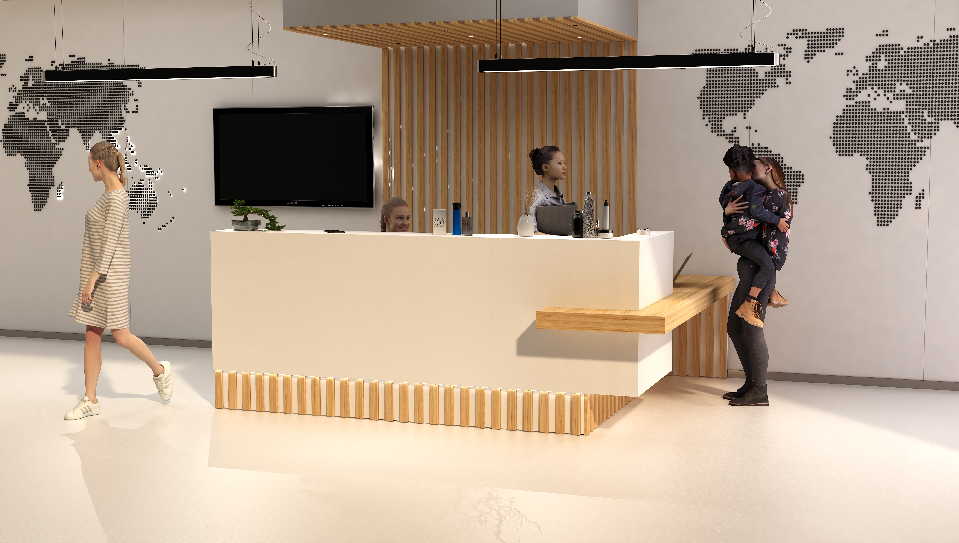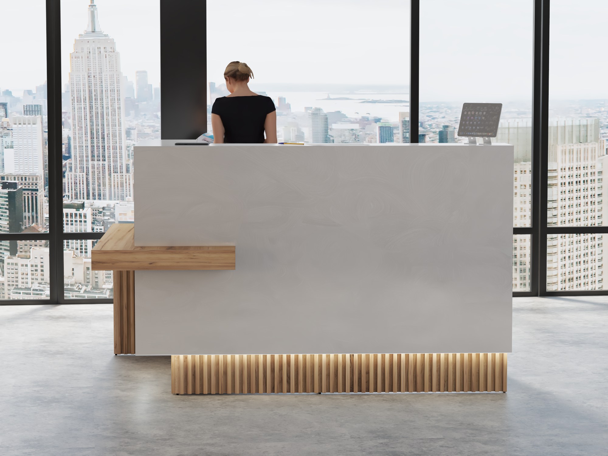 • Część frontowa recepcji o wysokości 115 cm zapewnia komfortowe miejsce do pracy