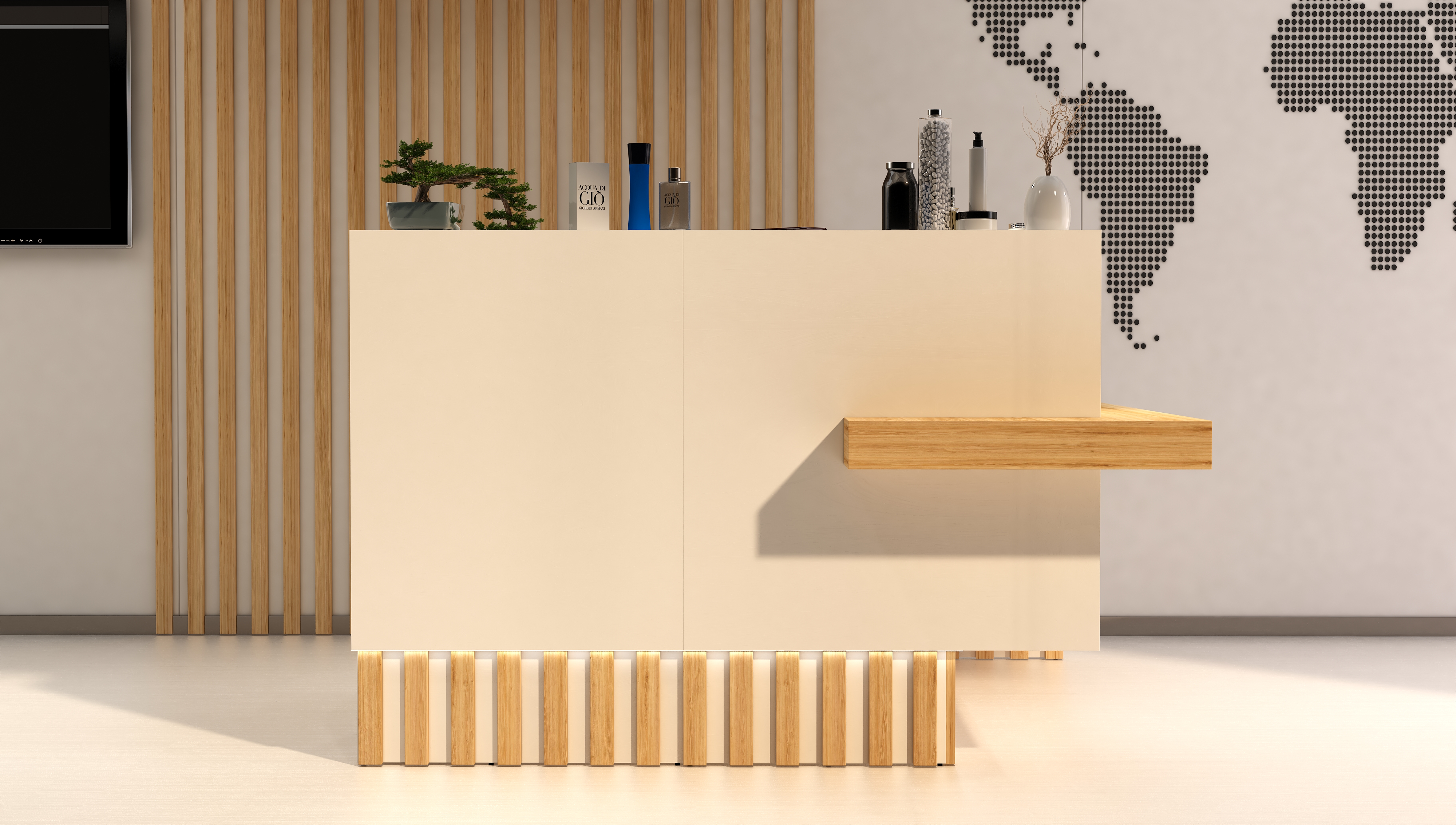 • Możliwość podświetlenia elementów recepcji listwą LED 4000K (neutralna barwa) lub innym odcieniem wg potrzeb