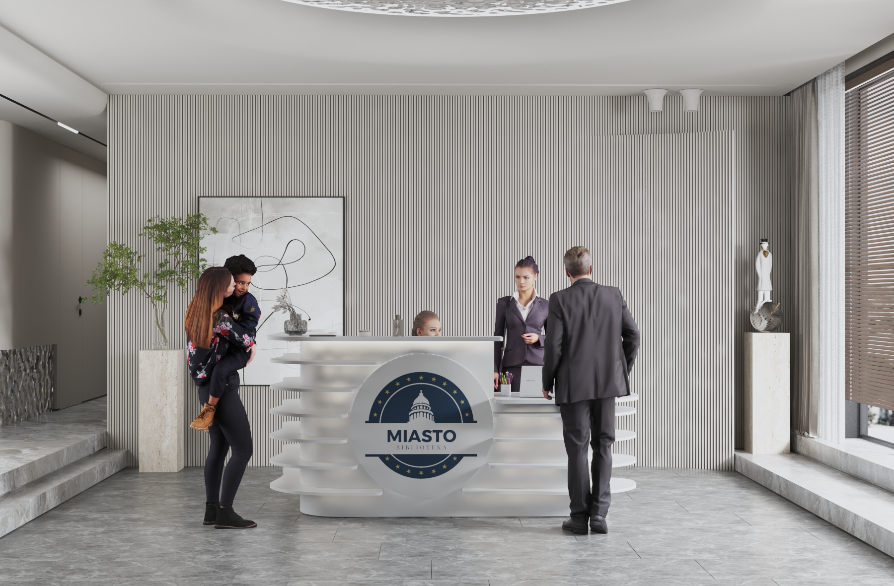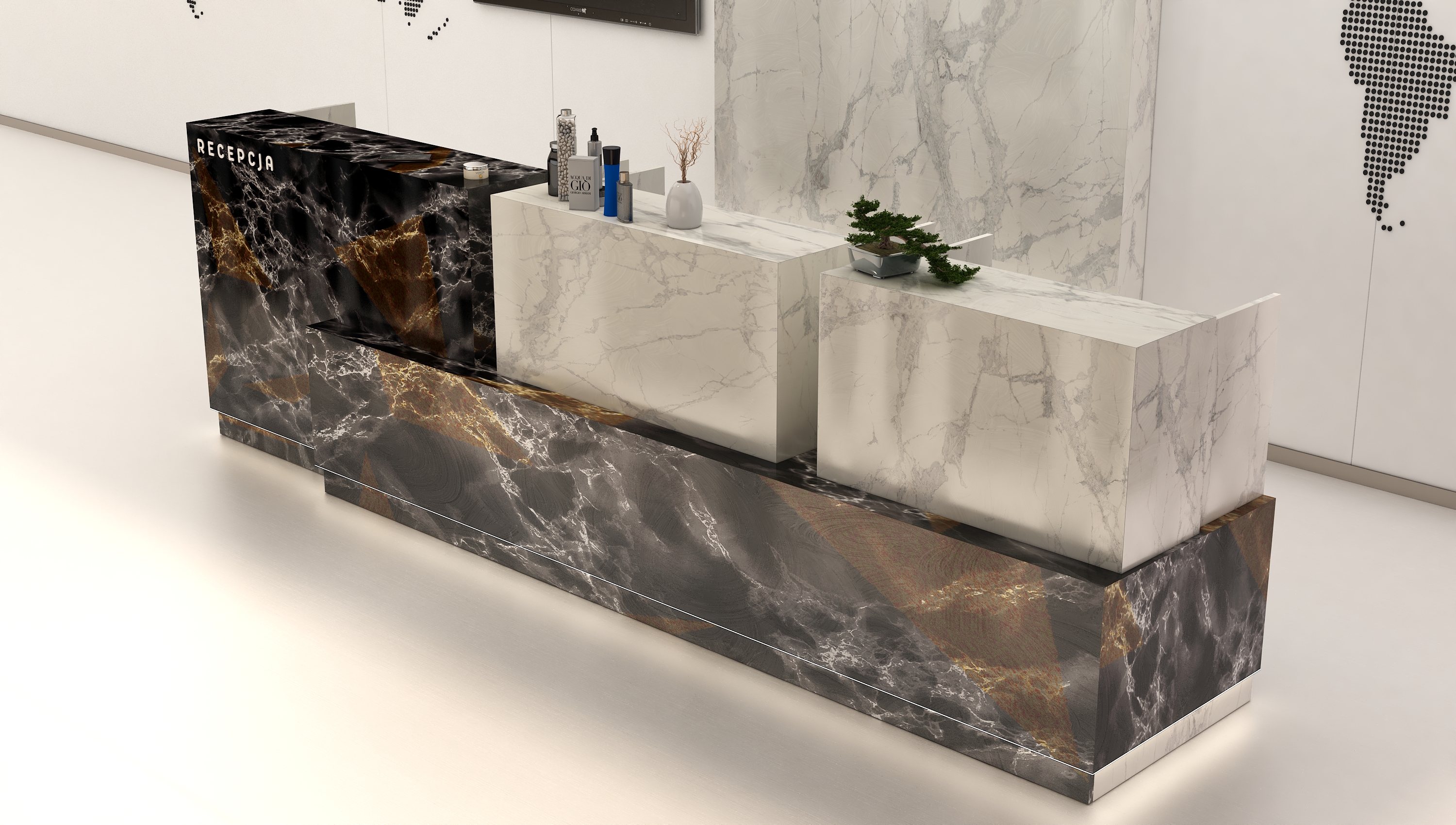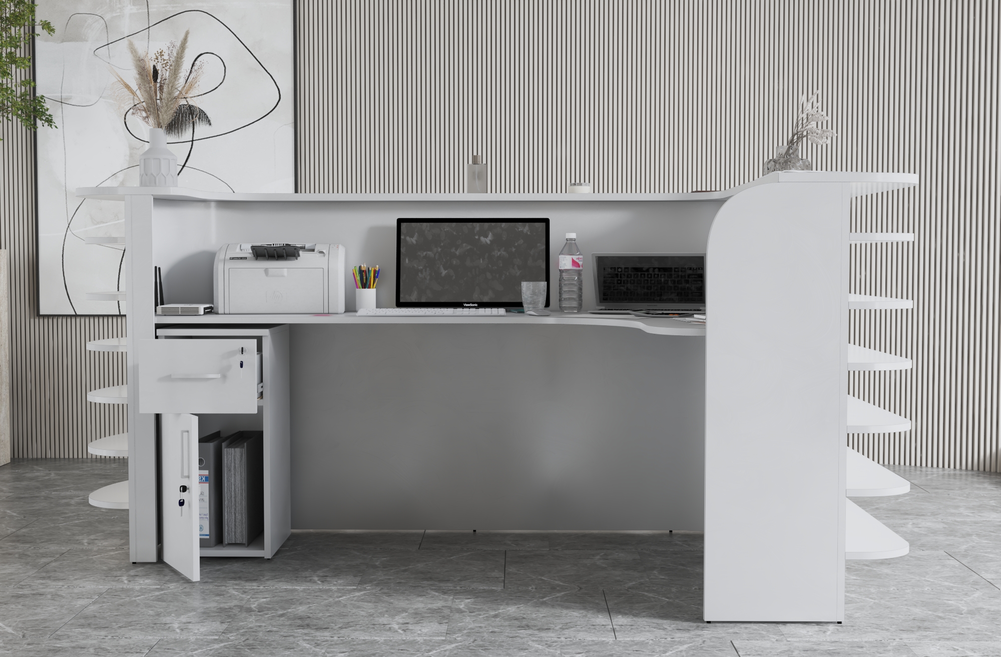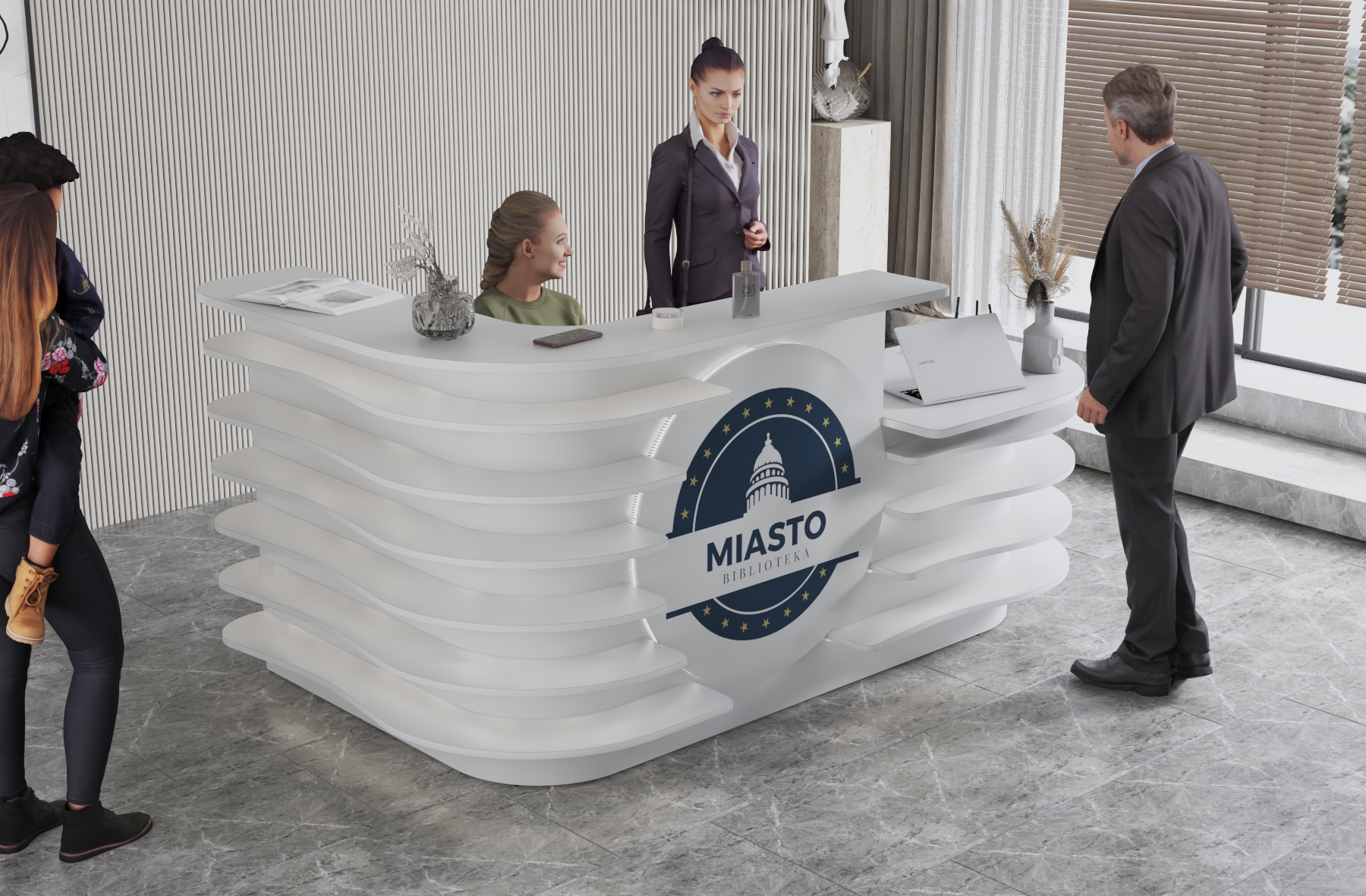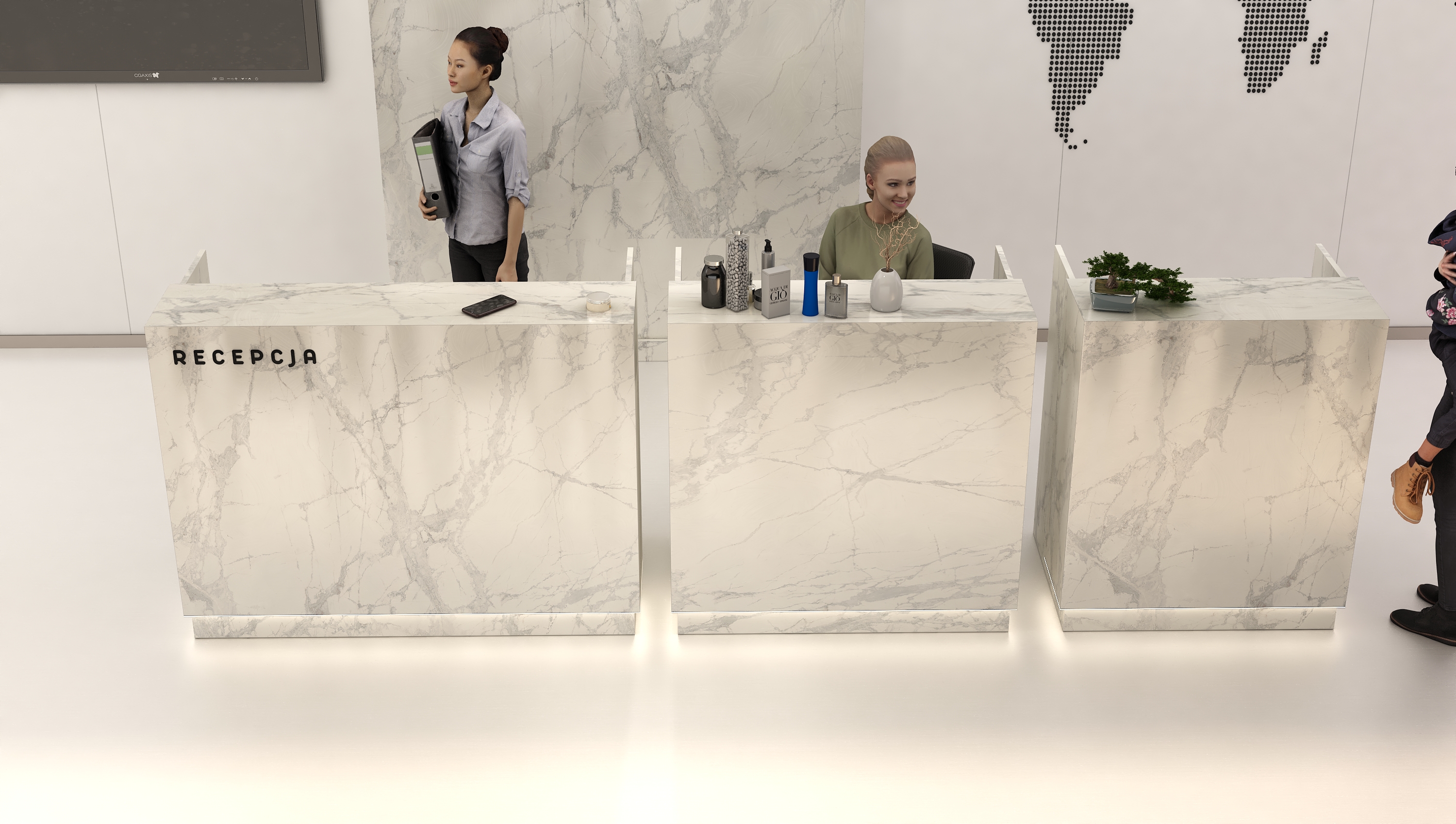 • Część frontowa recepcji o wysokości 115 cm zapewnia komfortowe miejsce do pracy