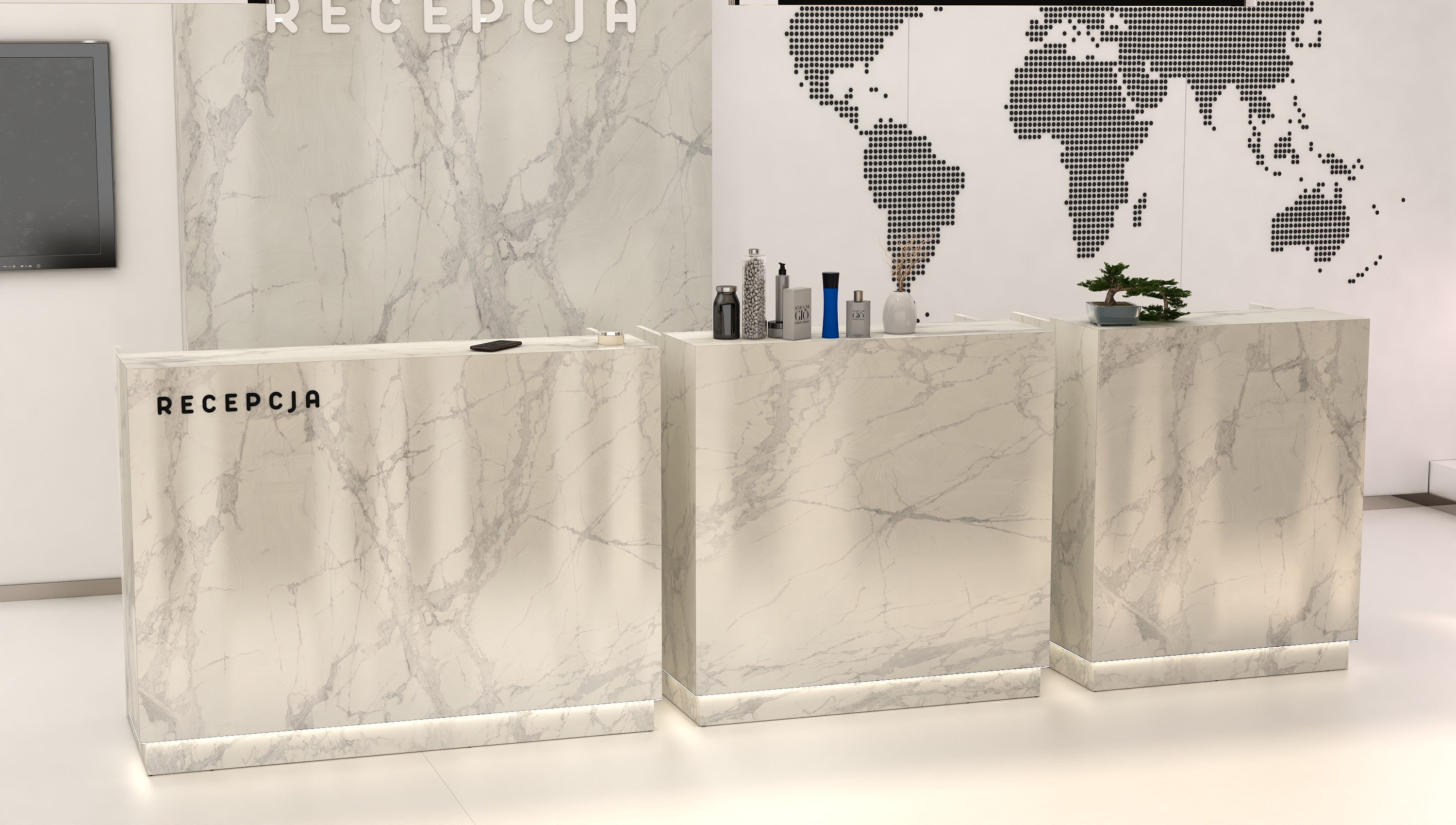 • Możliwość podświetlenia elementów recepcji listwą LED 4000K (neutralna barwa) lub innym odcieniem wg potrzeb