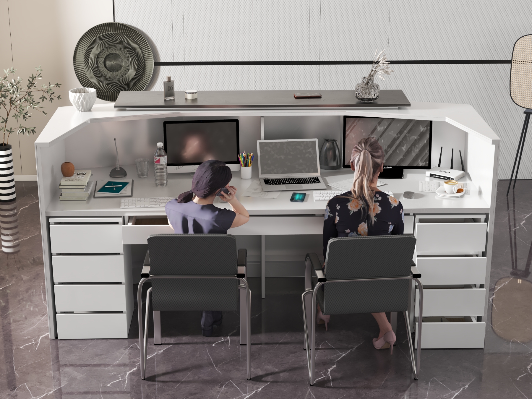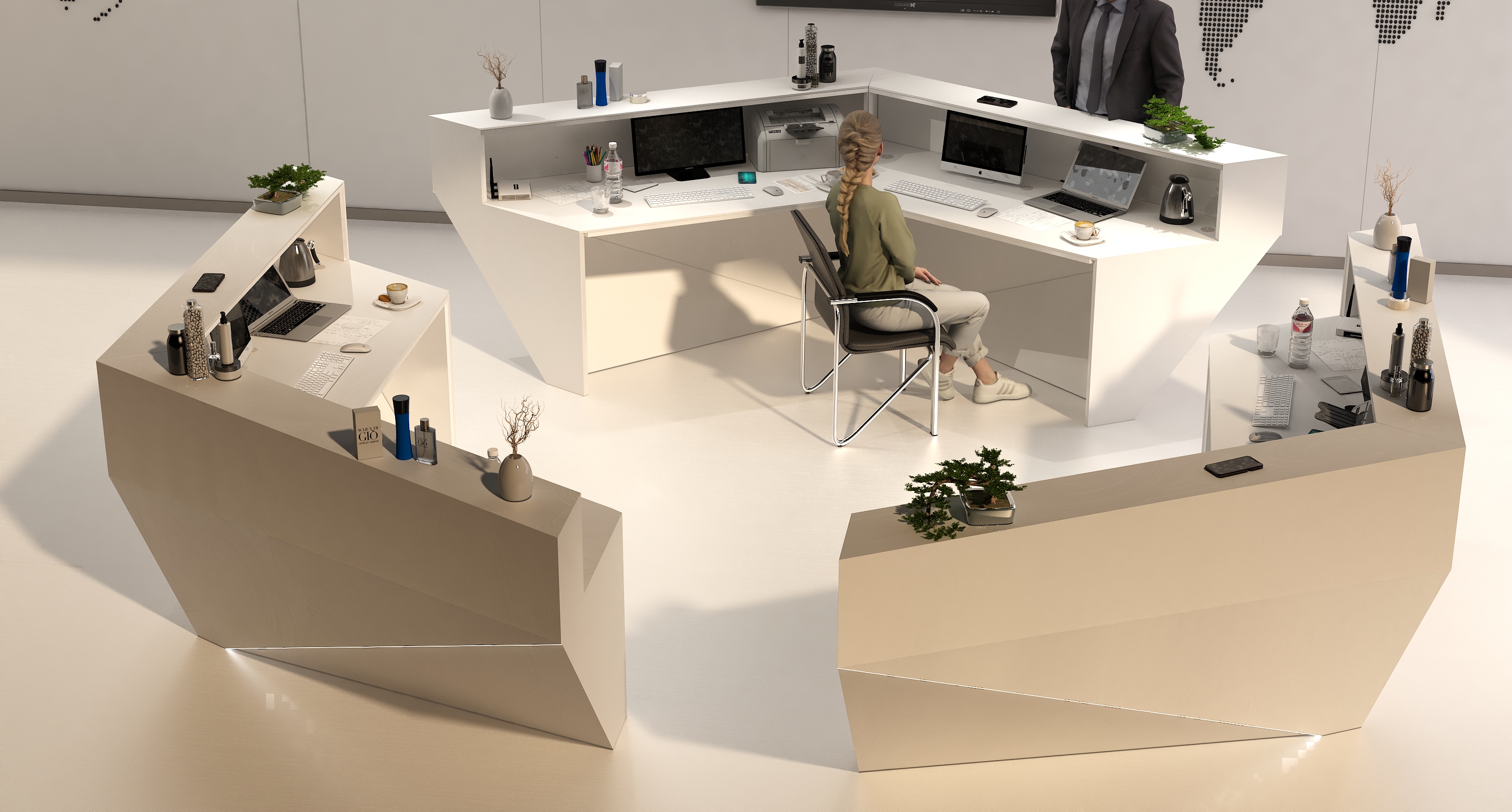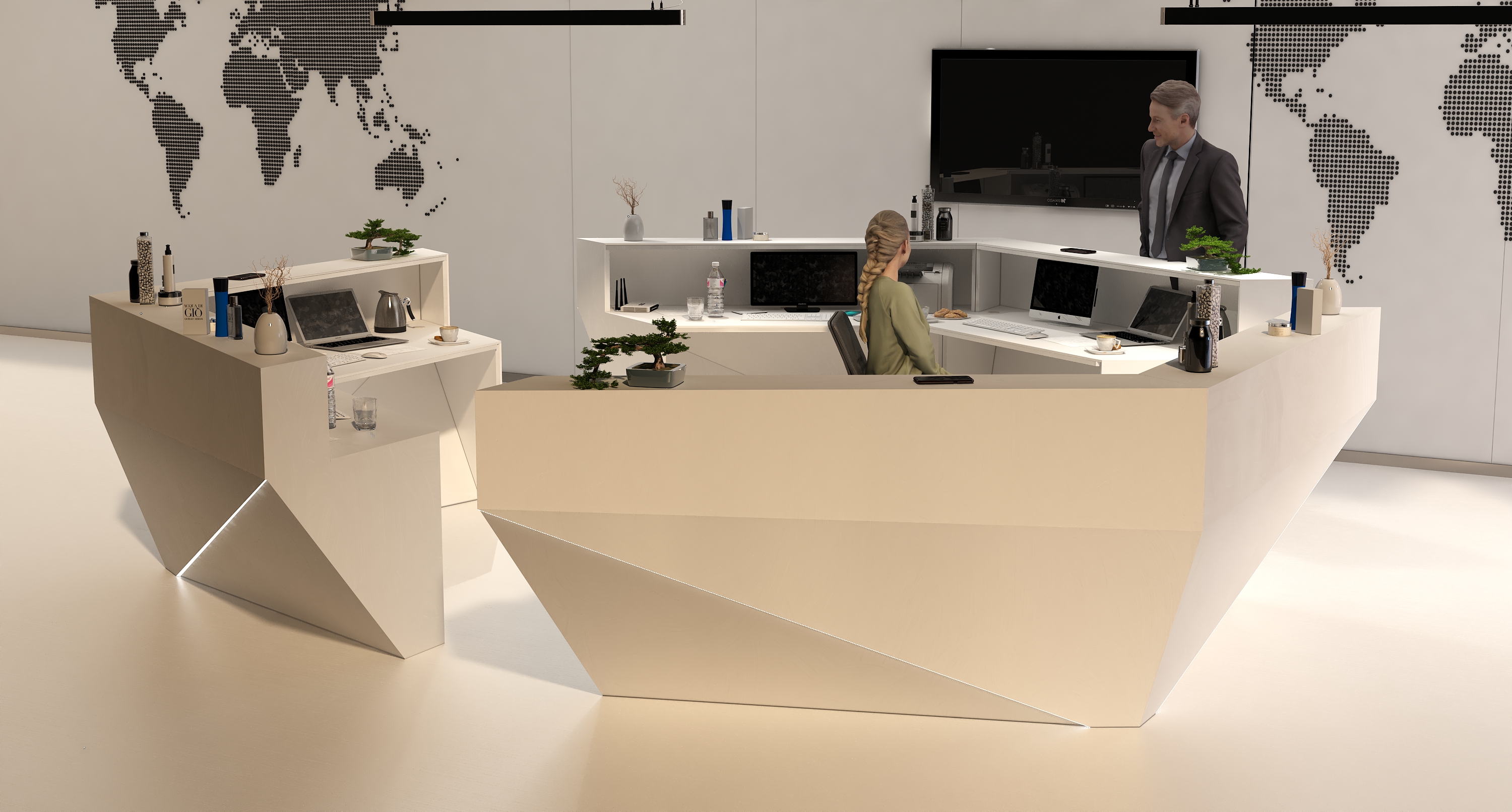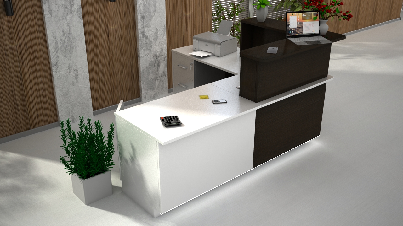 • Część frontowa recepcji o wysokości 115 cm zapewnia komfortowe miejsce do pracy