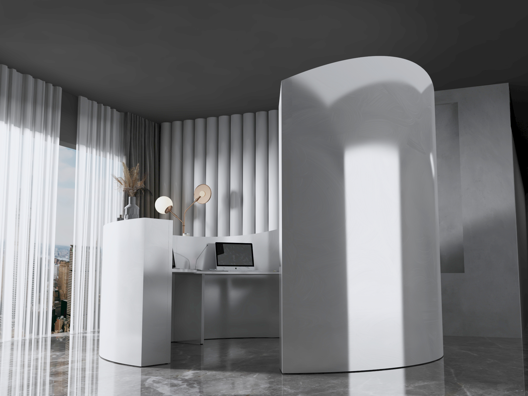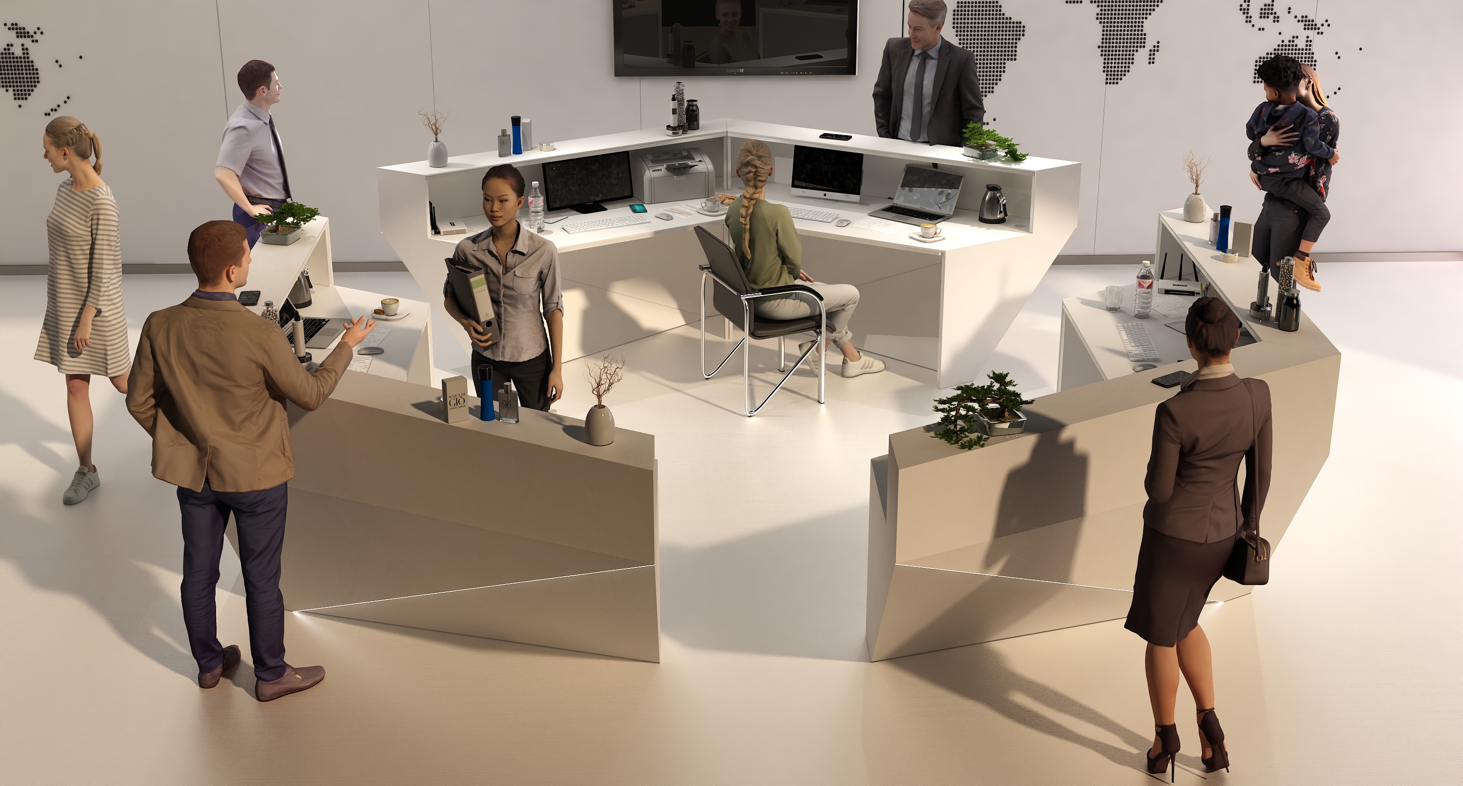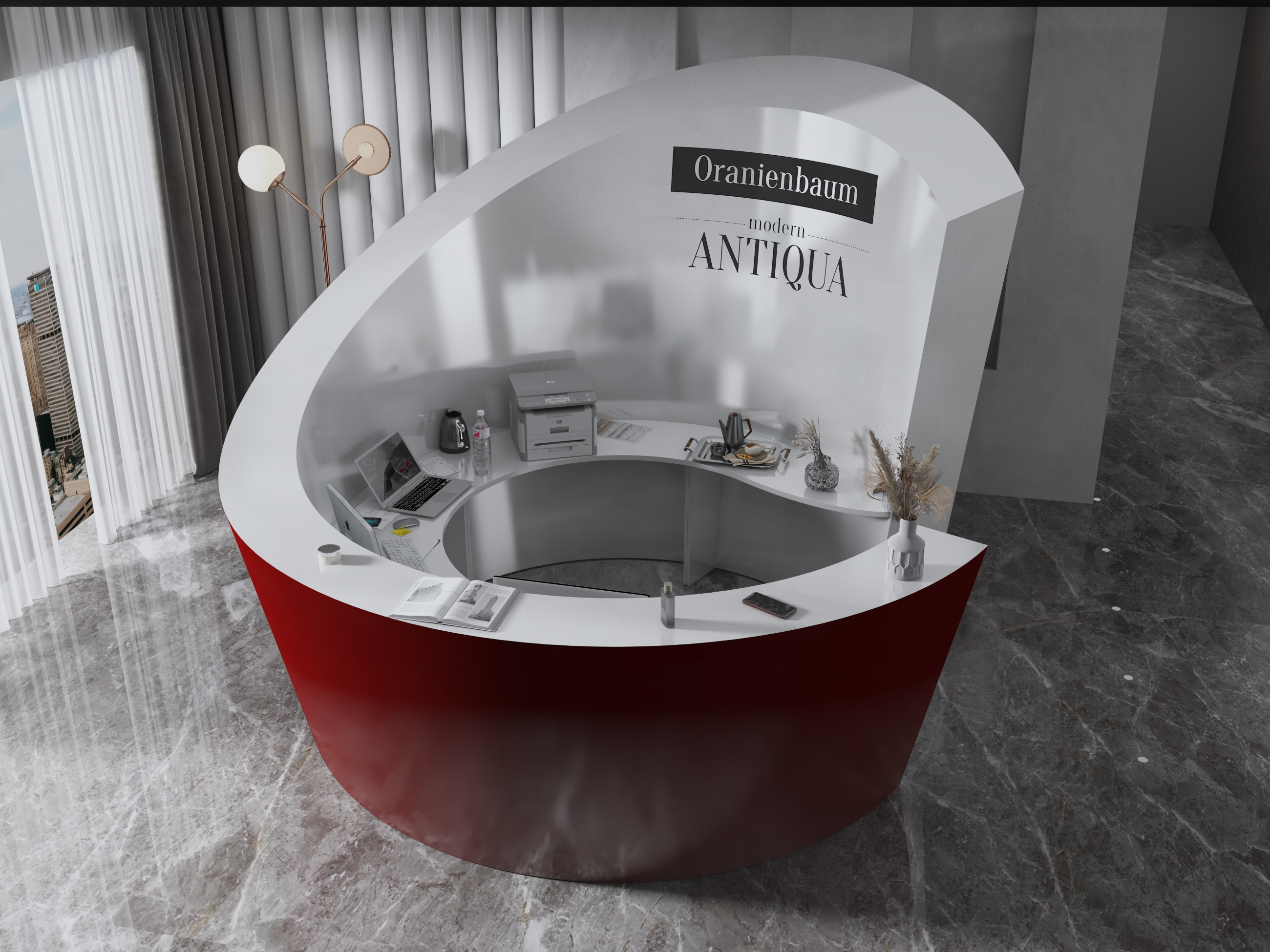 • Część frontowa recepcji o wysokości 115 cm zapewnia komfortowe miejsce do pracy