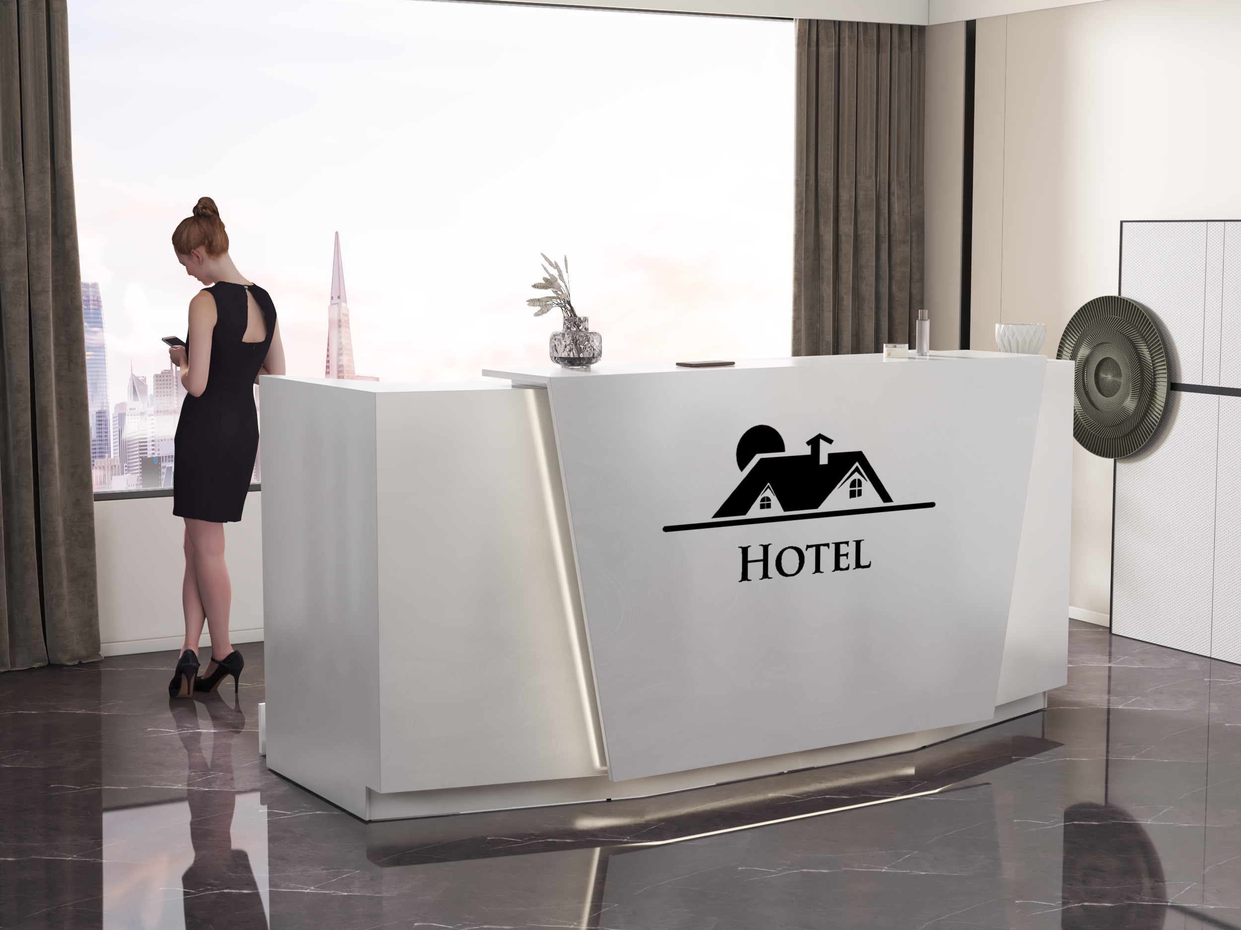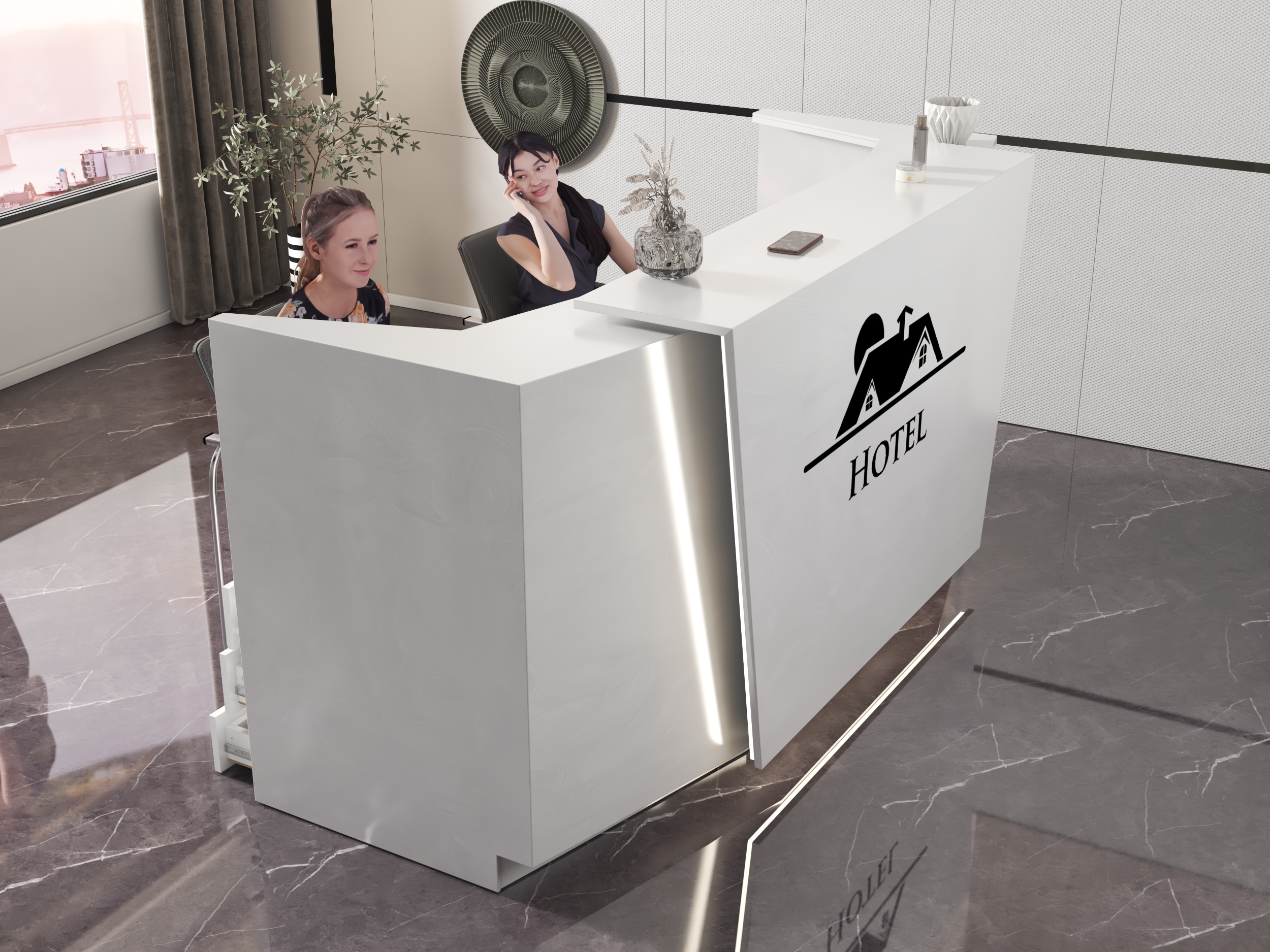 • Możliwość podświetlenia elementów recepcji listwą LED 4000K (neutralna barwa) lub innym odcieniem wg potrzeb