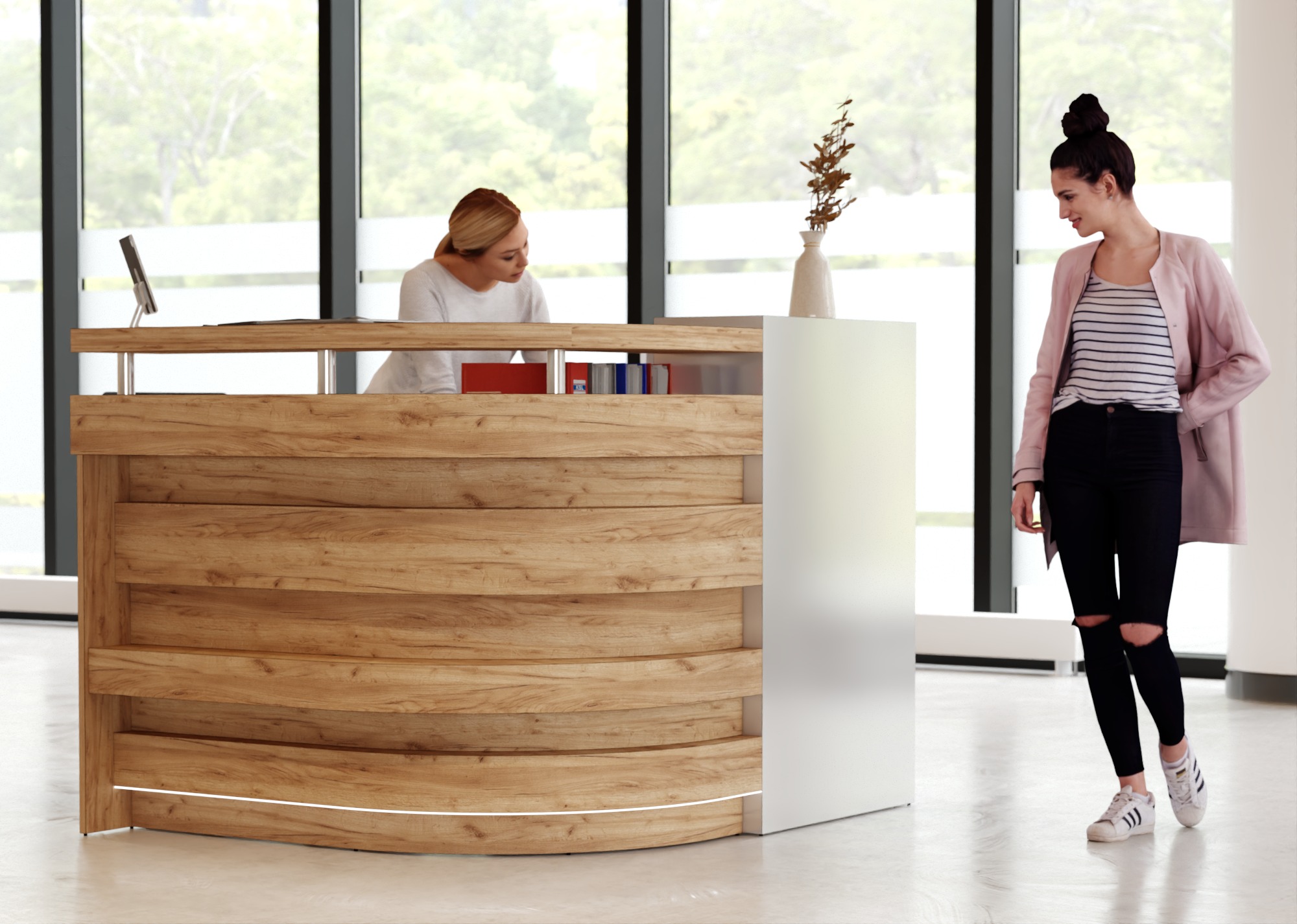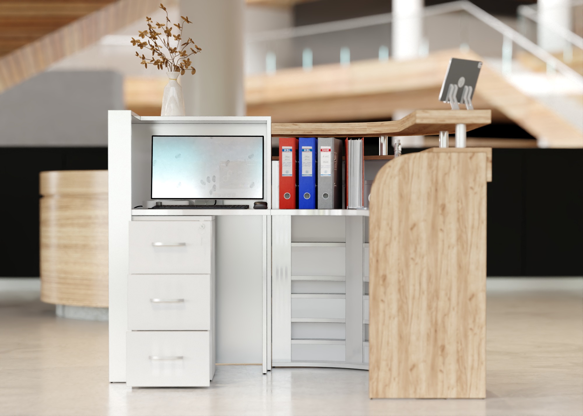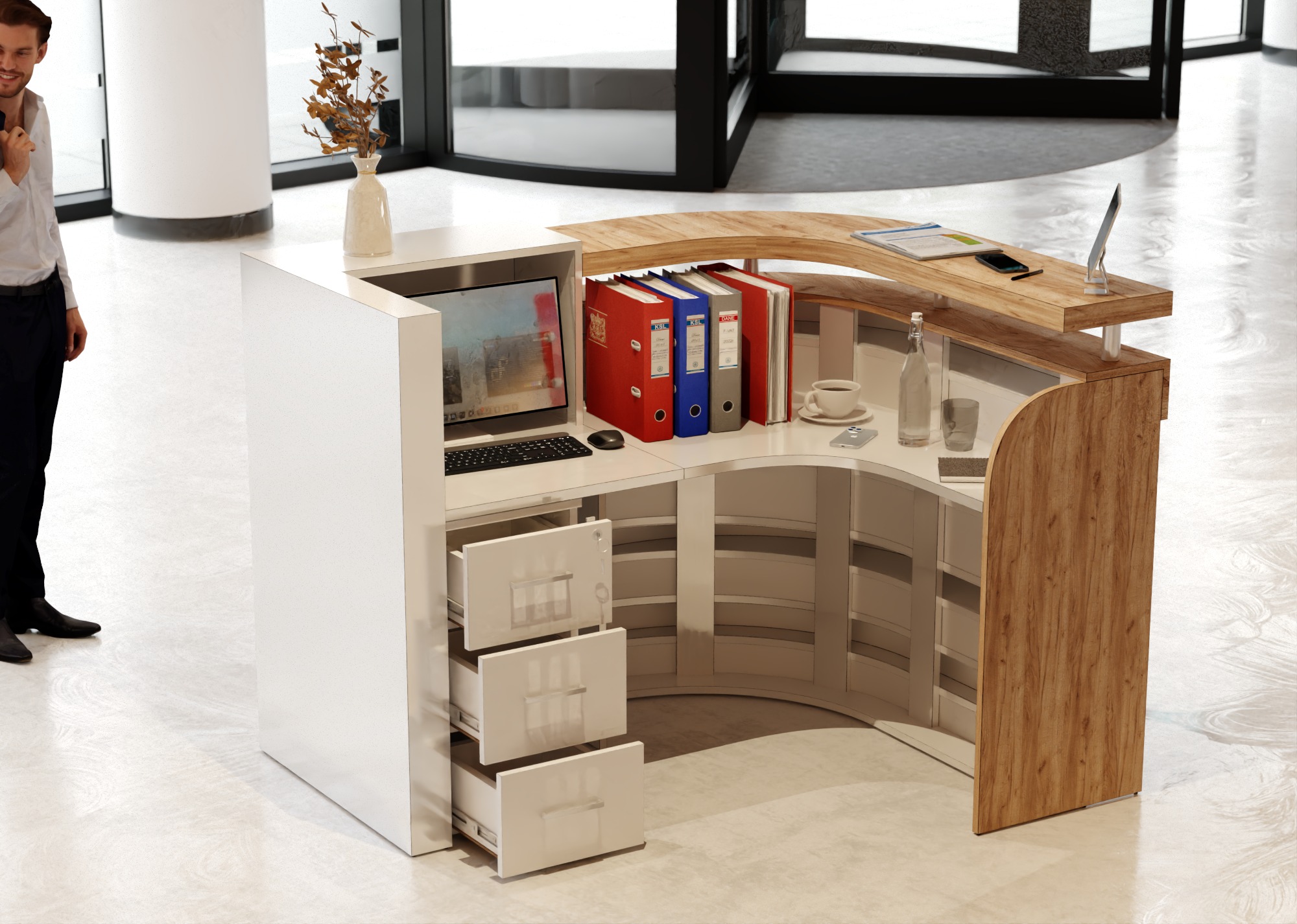 • Część frontowa recepcji o wysokości 115 cm zapewnia komfortowe miejsce do pracy