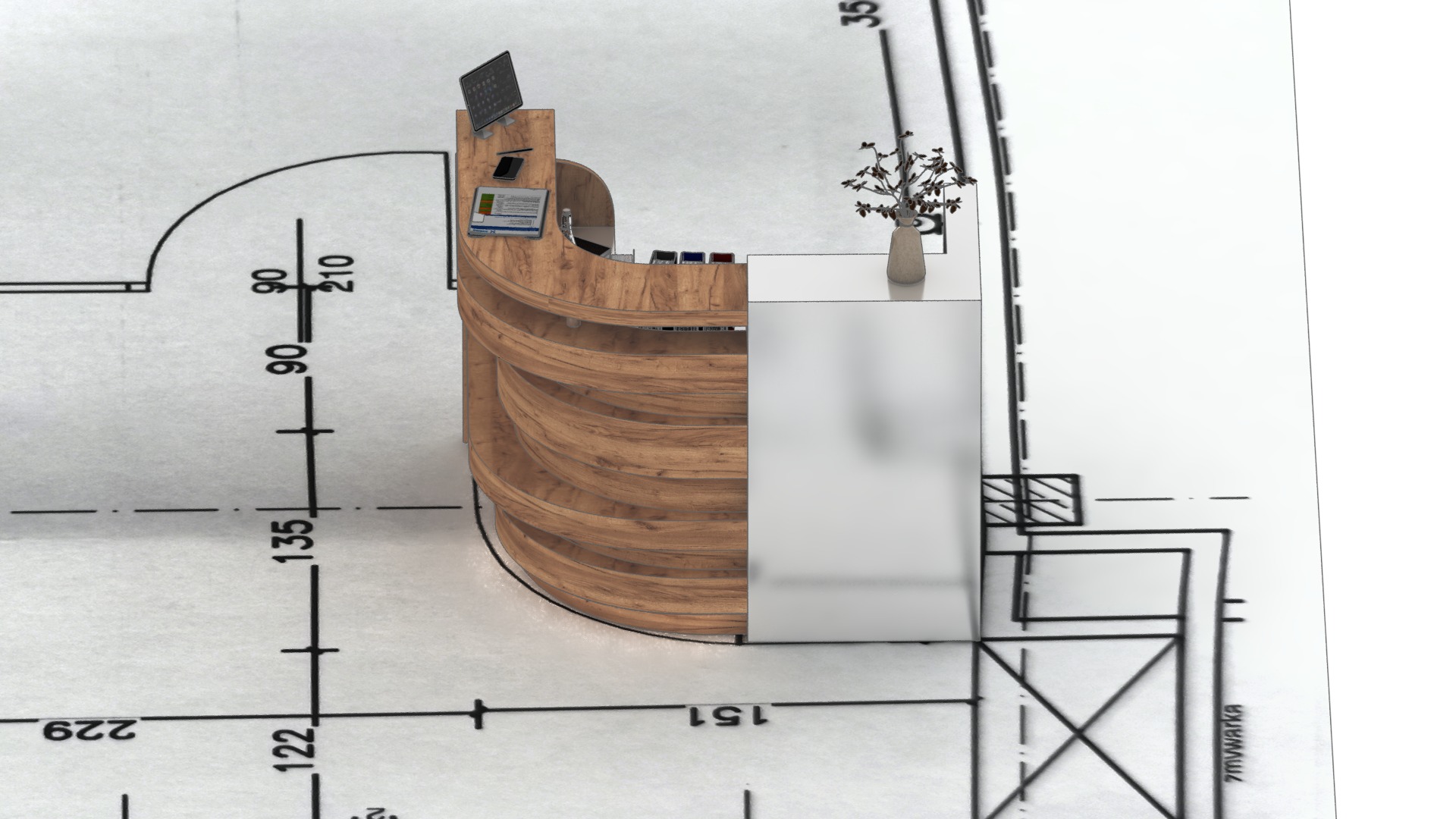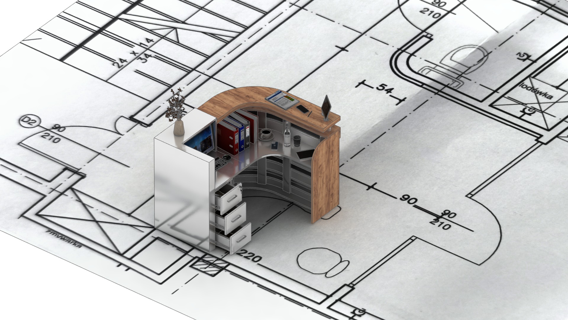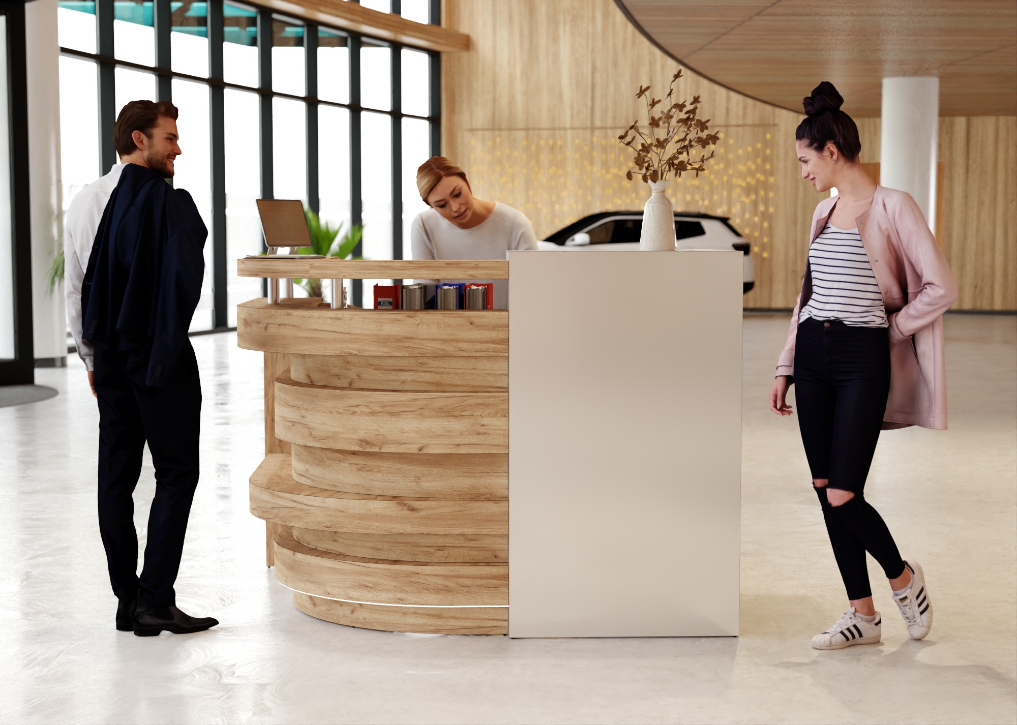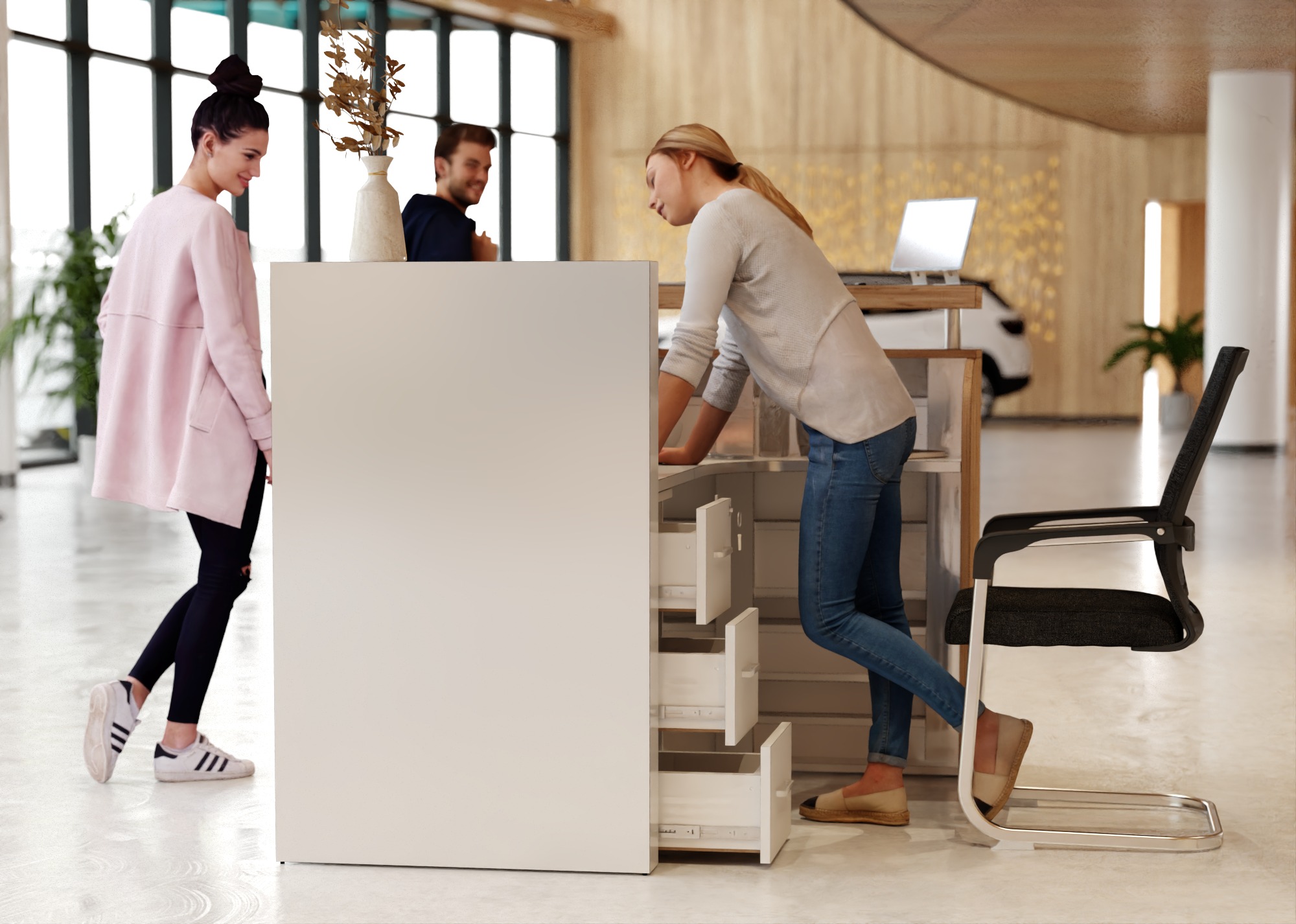 • Część frontowa recepcji o wysokości 115 cm zapewnia komfortowe miejsce do pracy