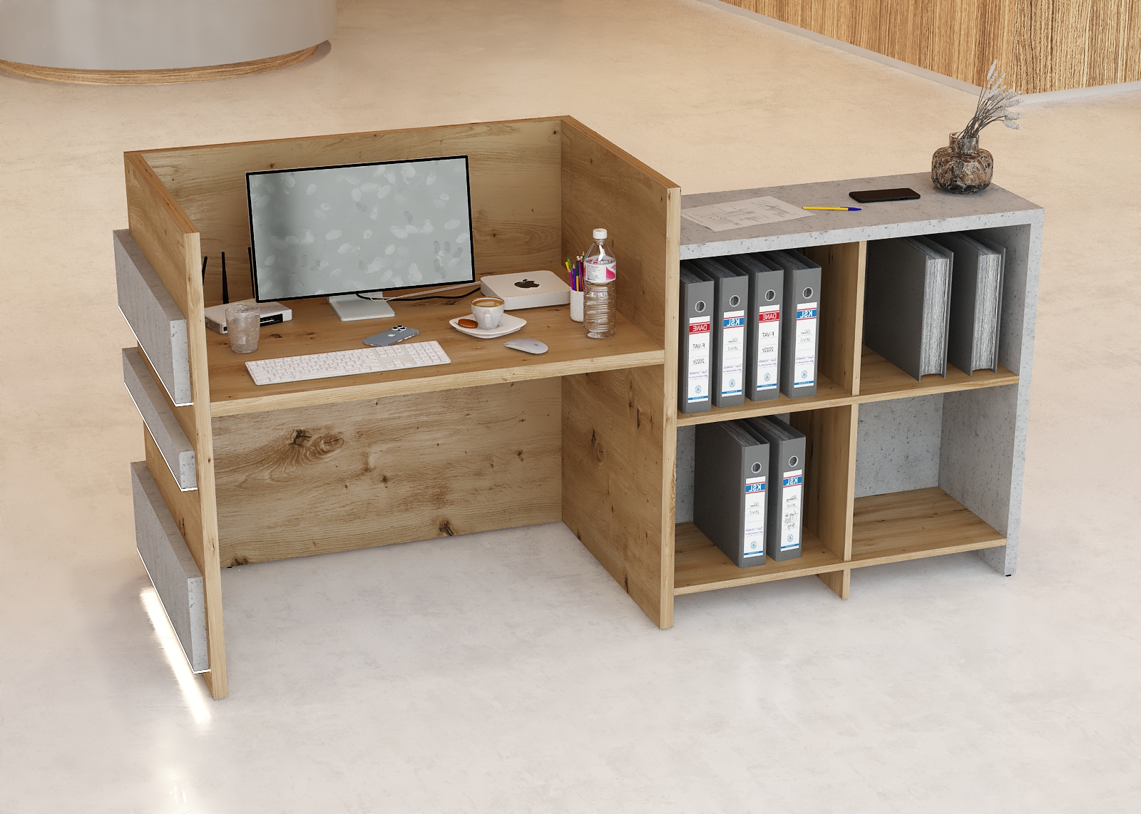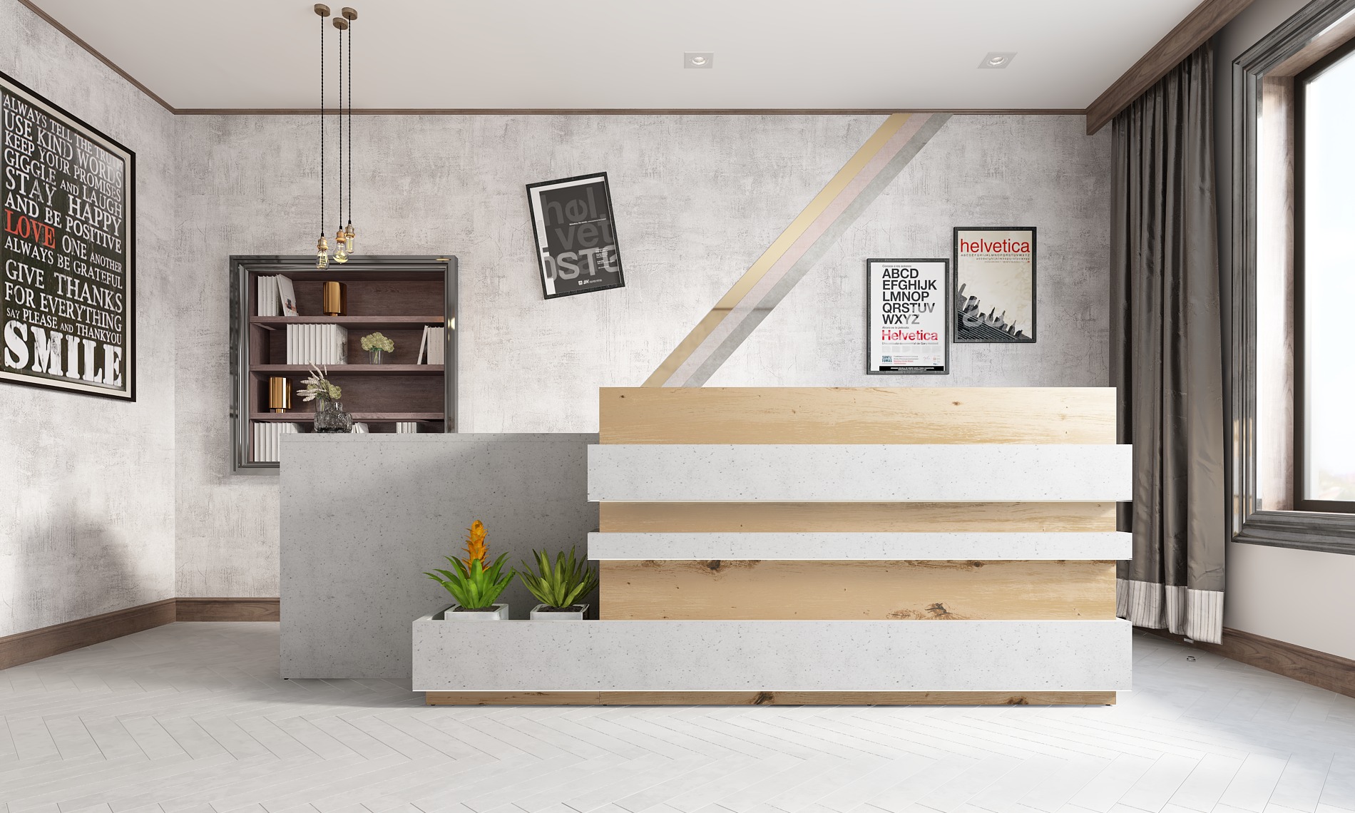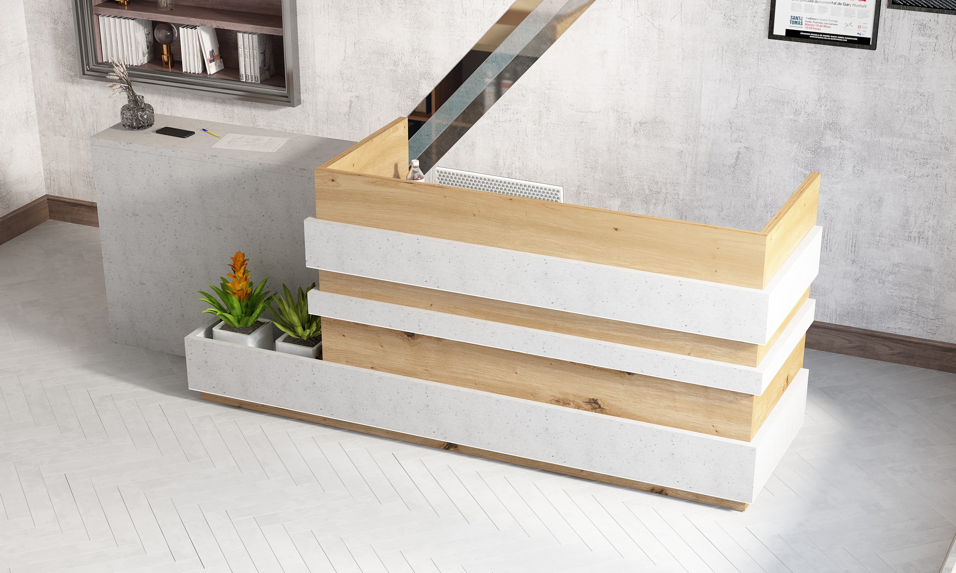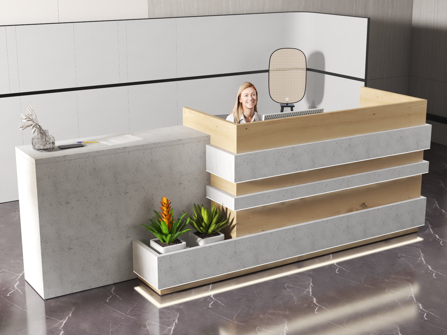 • Część frontowa recepcji o wysokości 115 cm zapewnia komfortowe miejsce do pracy