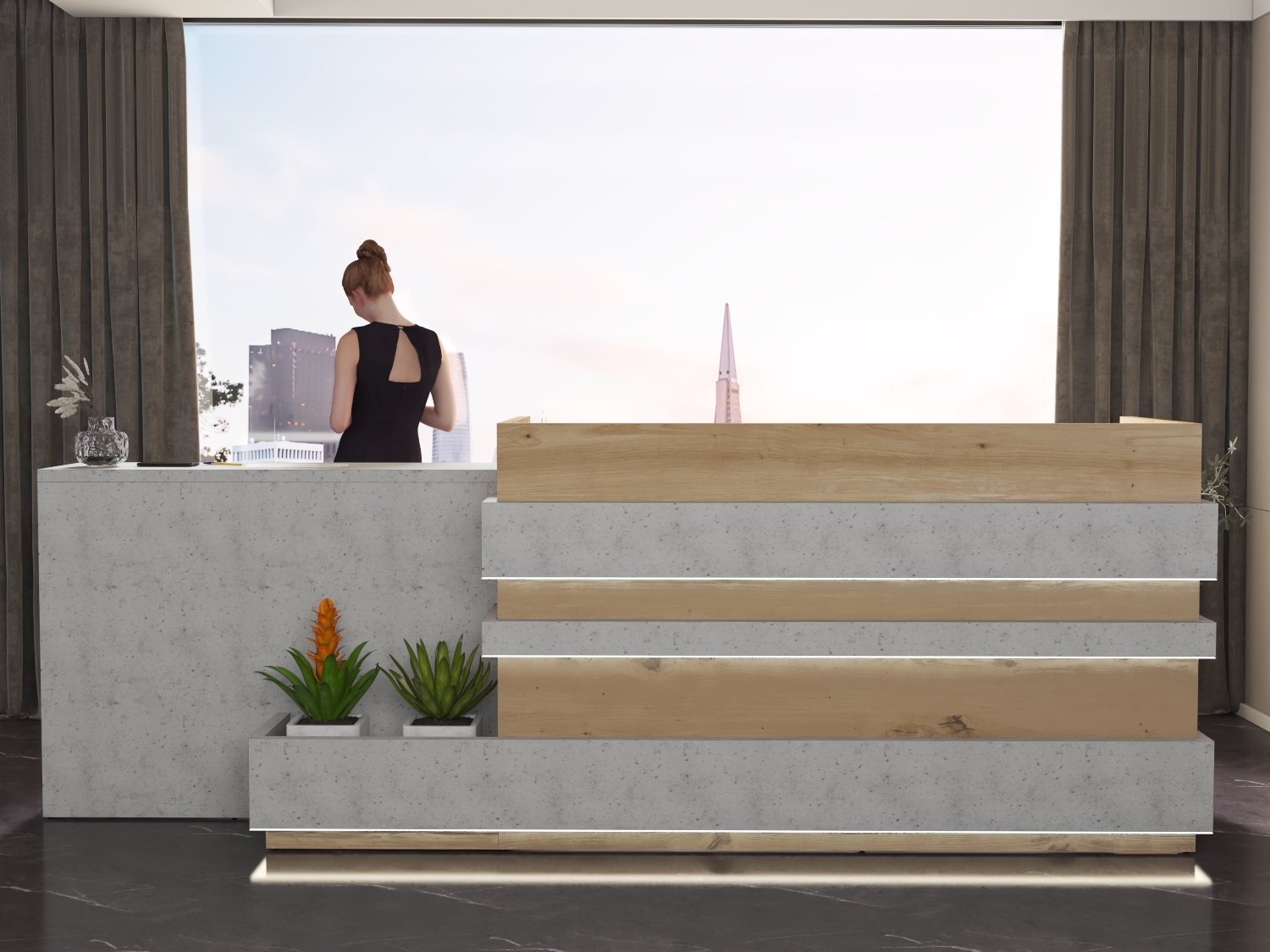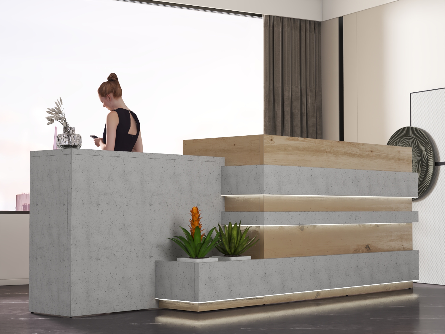 • Możliwość podświetlenia elementów recepcji listwą LED 4000K (neutralna barwa) lub innym odcieniem wg potrzeb