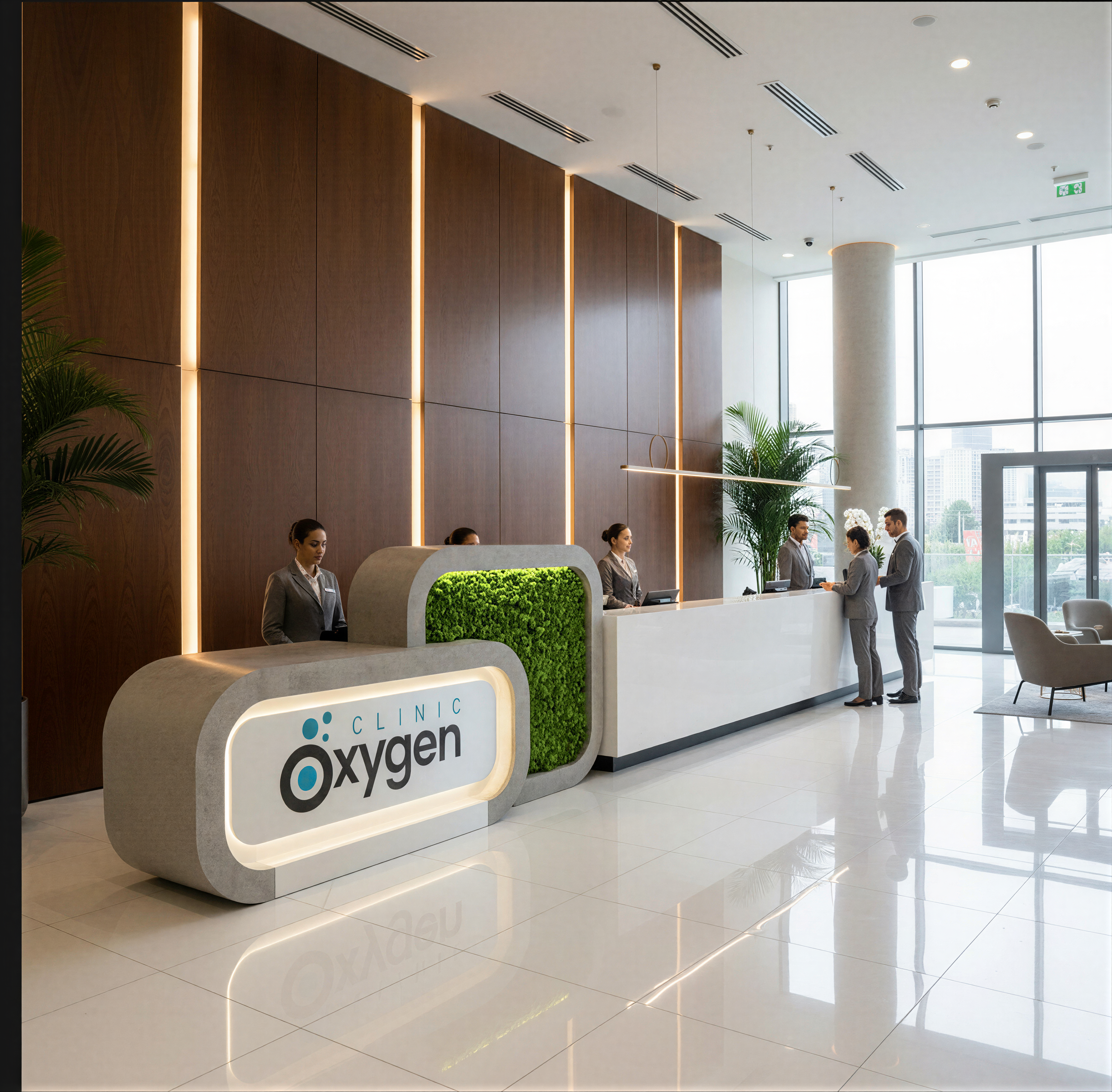 • Możliwość podświetlenia elementów recepcji listwą LED 4000K (neutralna barwa) lub innym odcieniem wg potrzeb
