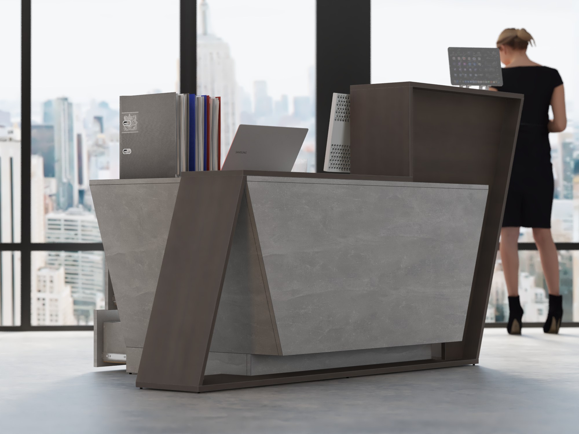• Część frontowa recepcji o wysokości 115 cm zapewnia komfortowe miejsce do pracy