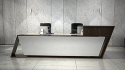 Kolejna z naszych nowoczesnych projektów lada R65 w kształcie przechylonego prostokąta. Mimo nietypowego, geometrycznego, wielowymiarowego kształtu będzie ładnie gospodarować przestrzeń także tradycyjnej recepcji.