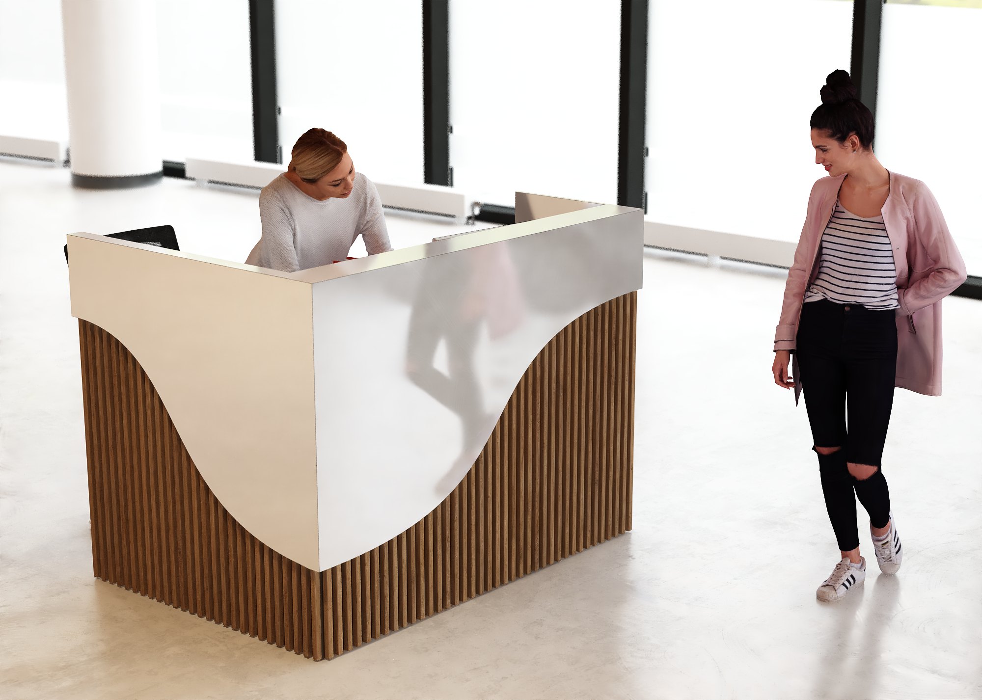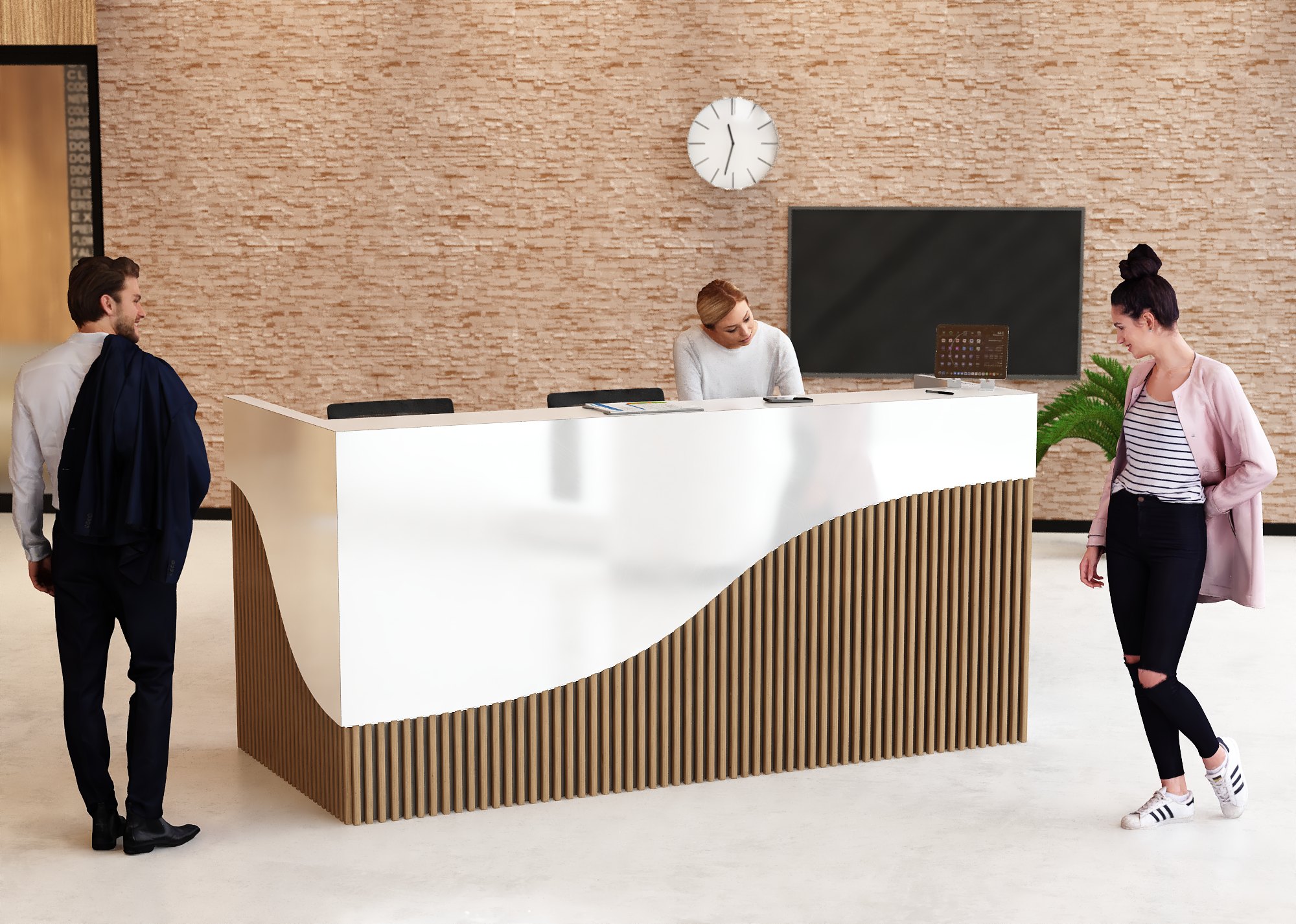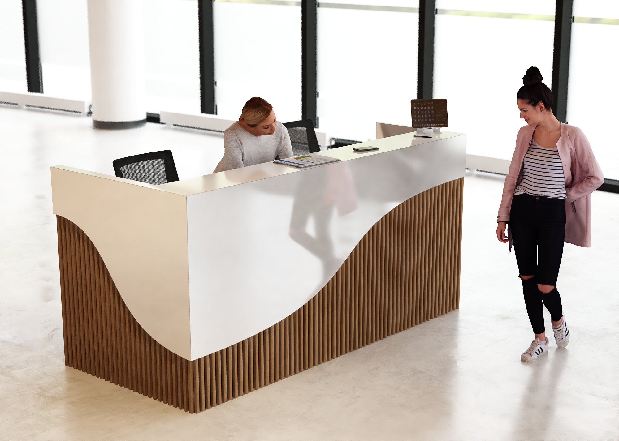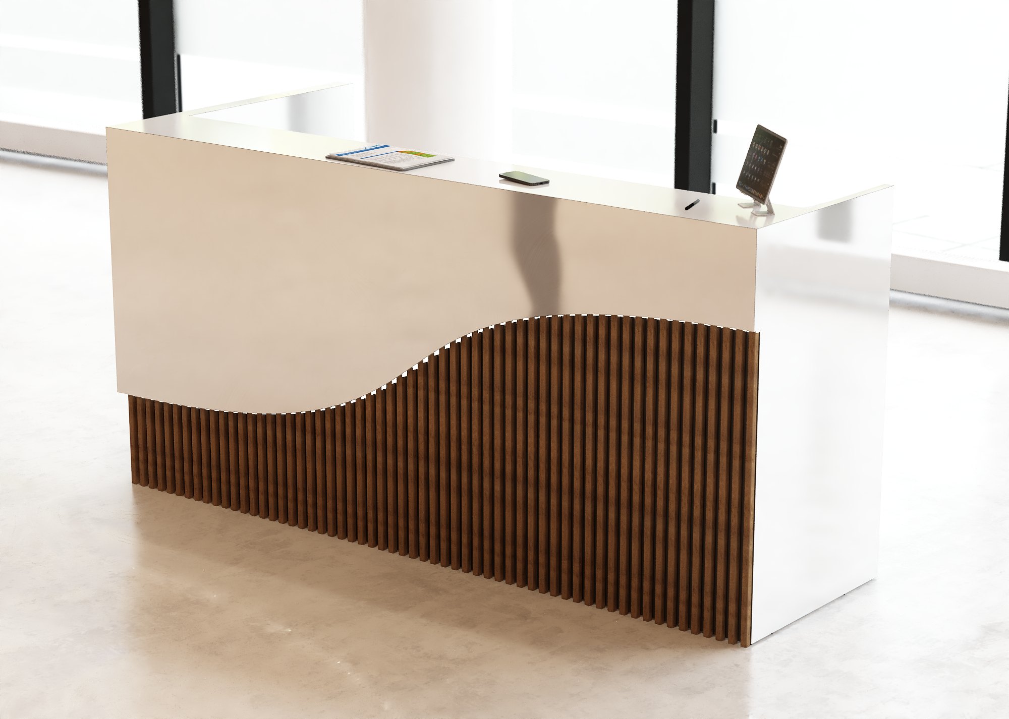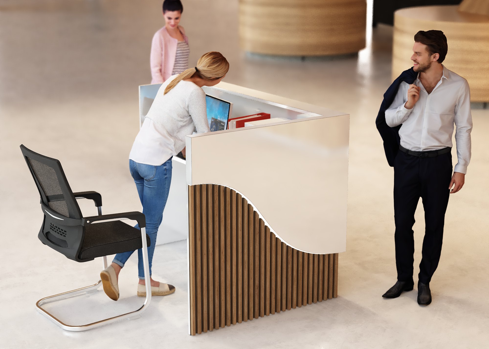 • Część frontowa recepcji o wysokości 115 cm zapewnia komfortowe miejsce do pracy