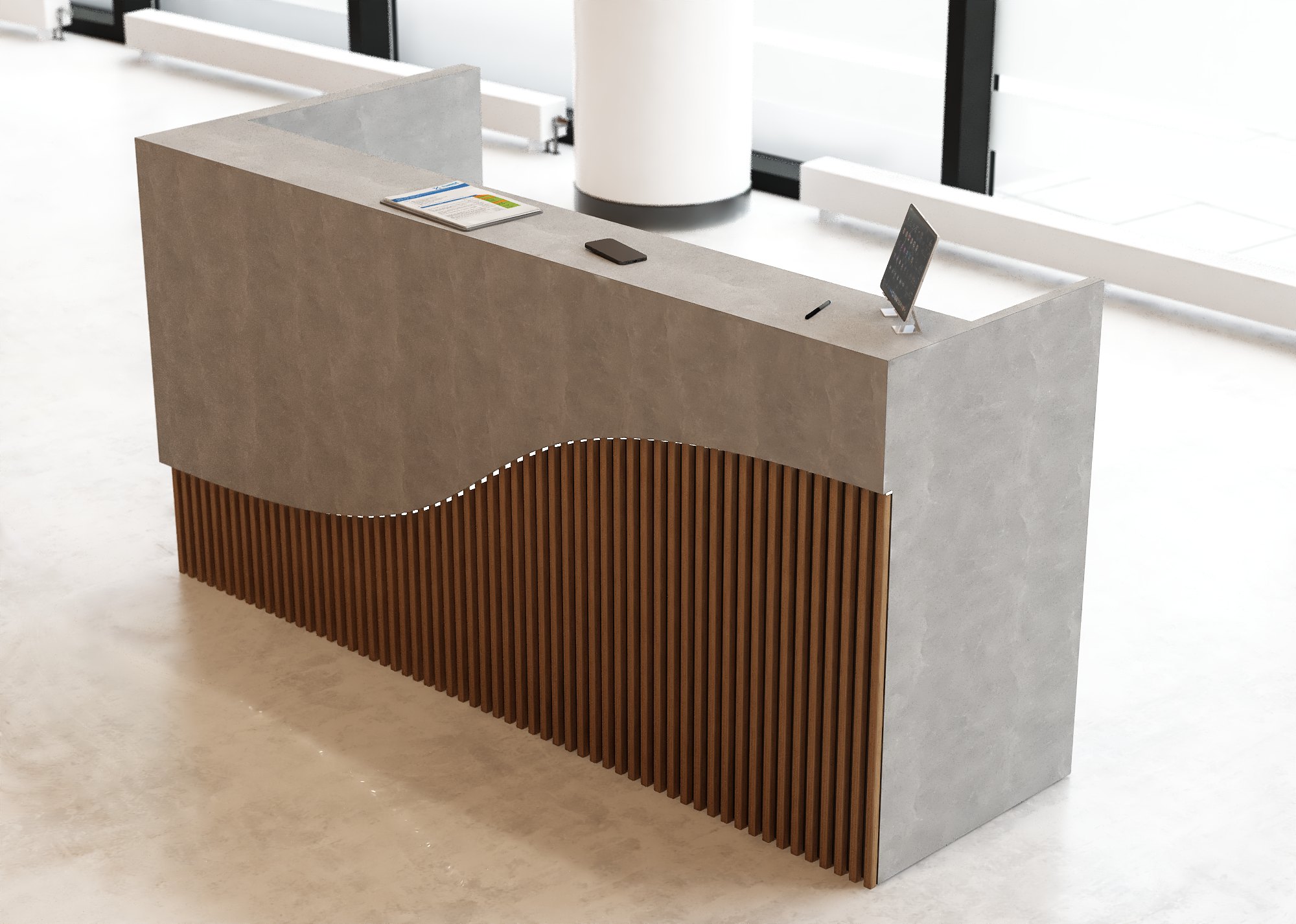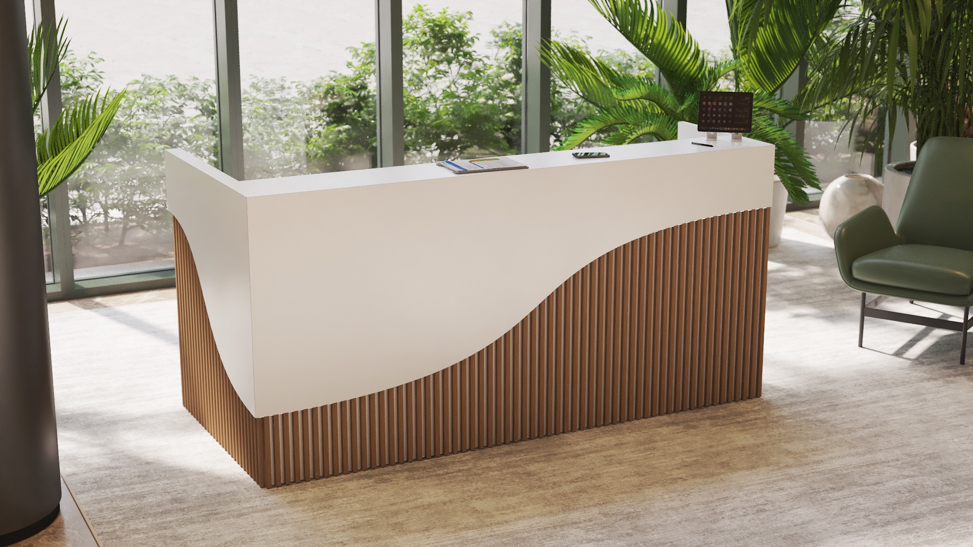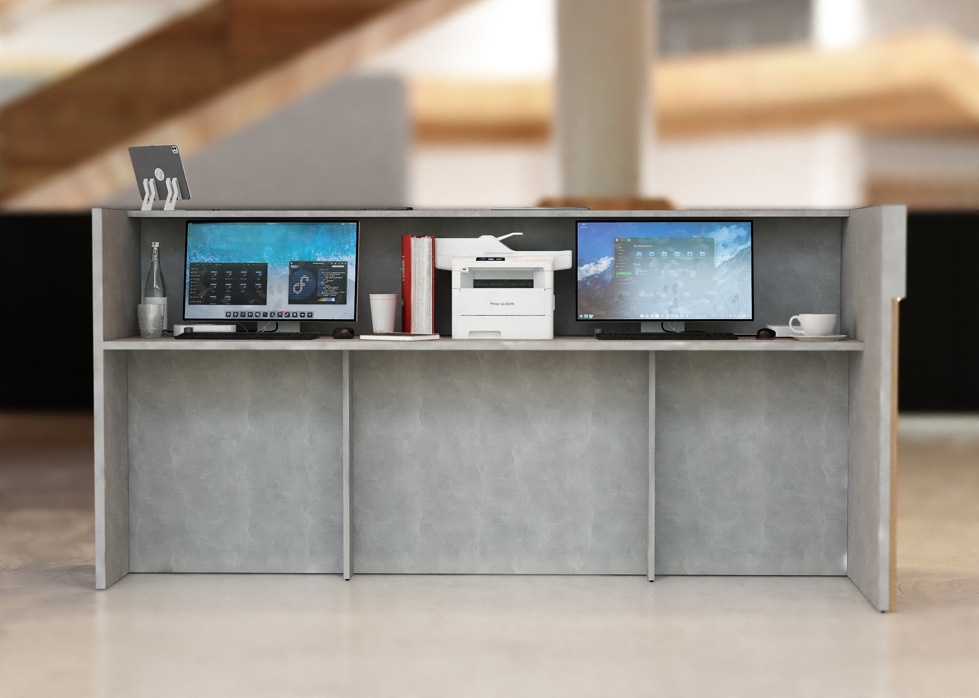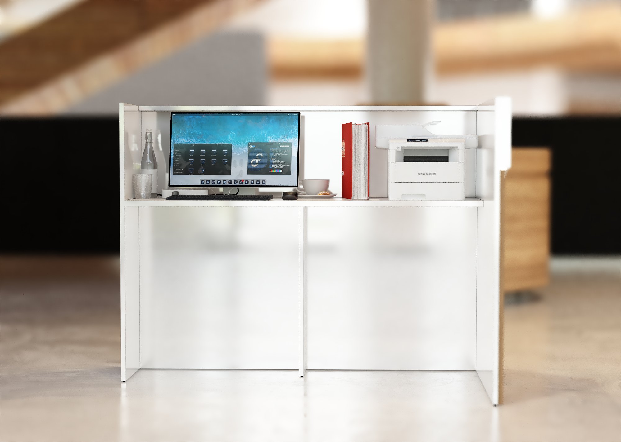 • Część frontowa recepcji o wysokości 115 cm zapewnia komfortowe miejsce do pracy