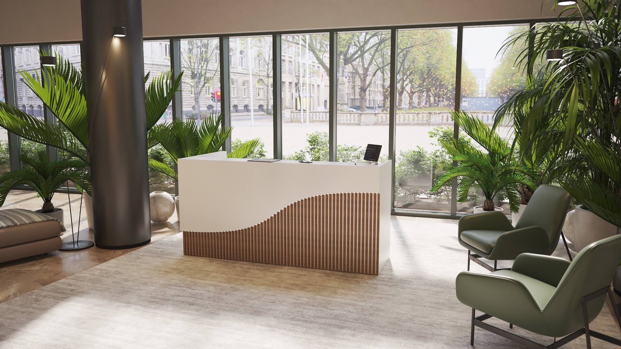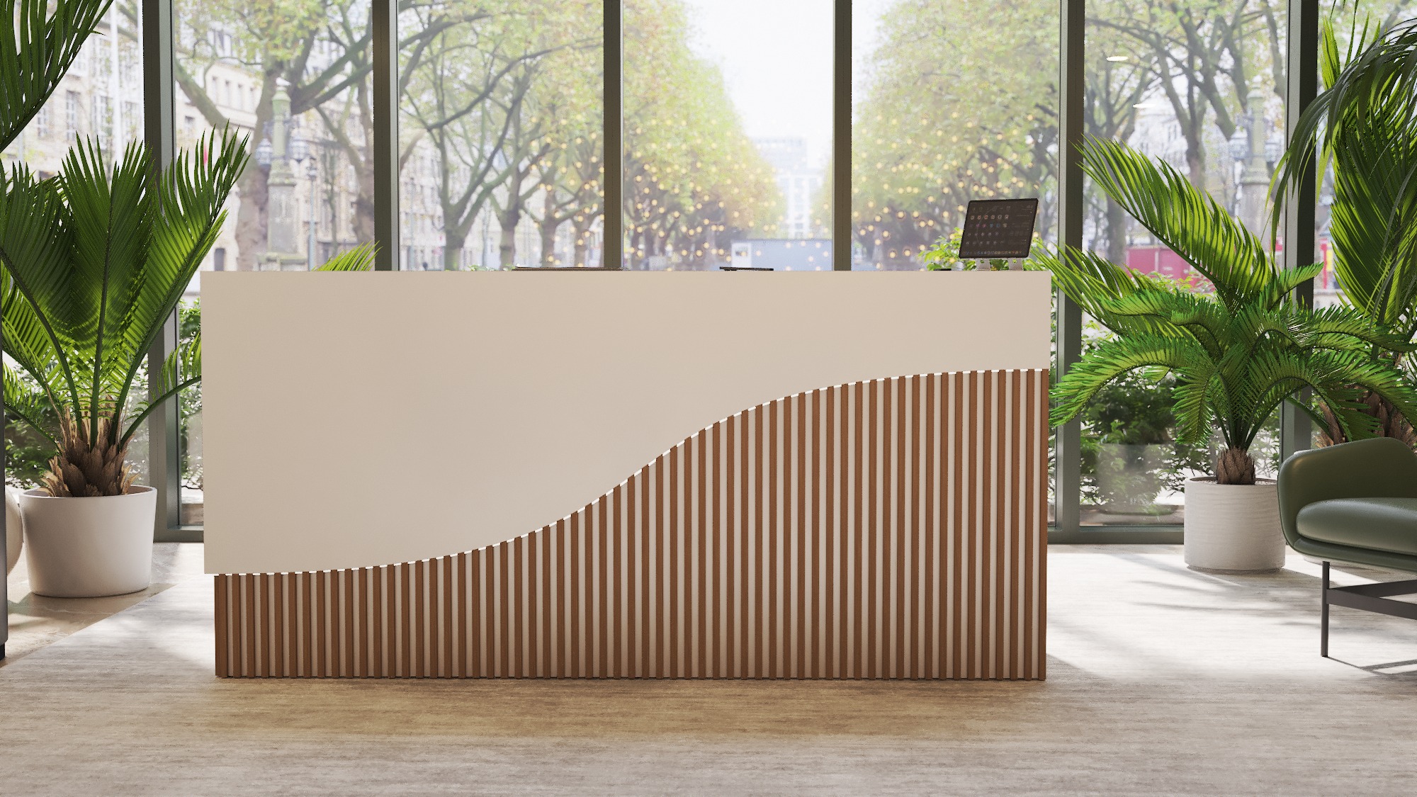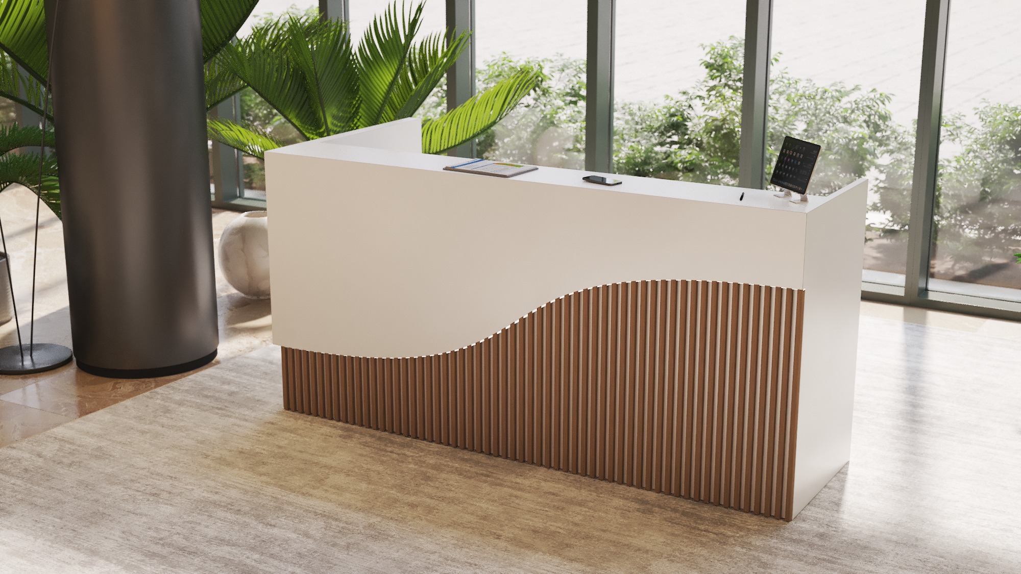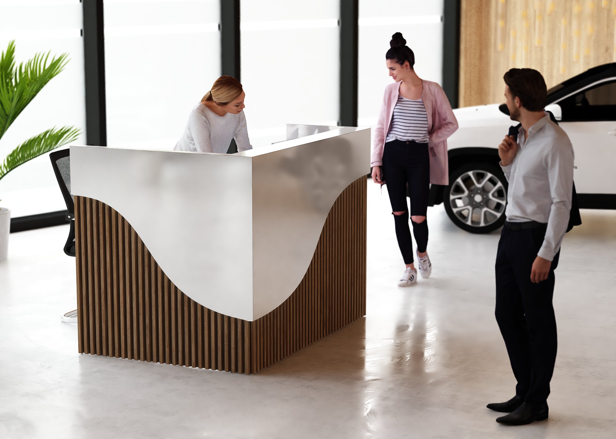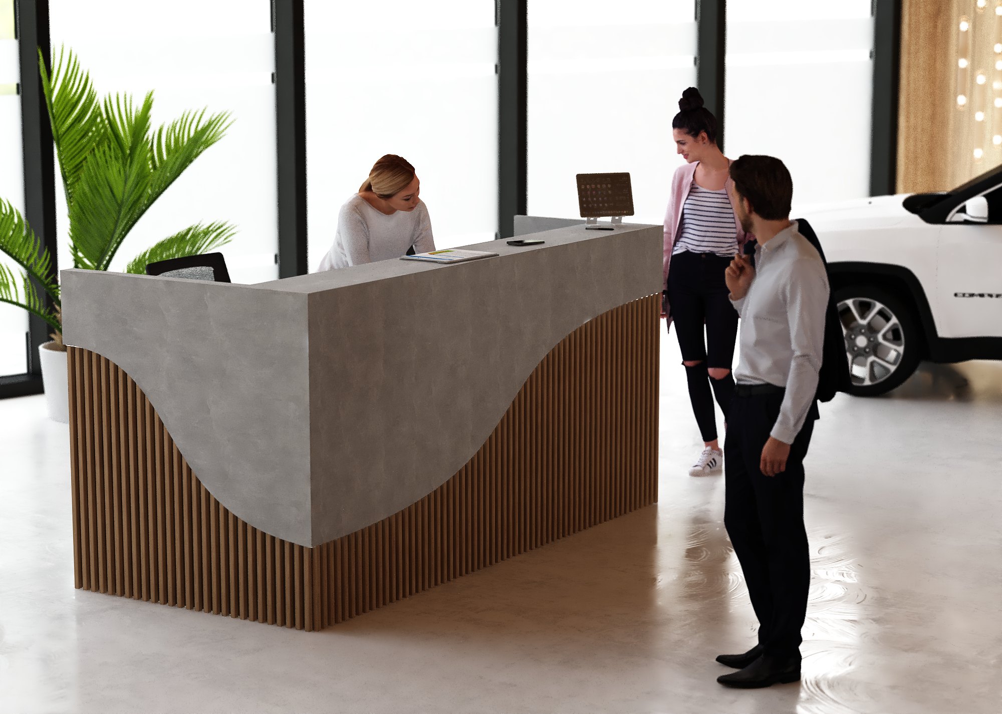 • Część frontowa recepcji o wysokości 115 cm zapewnia komfortowe miejsce do pracy