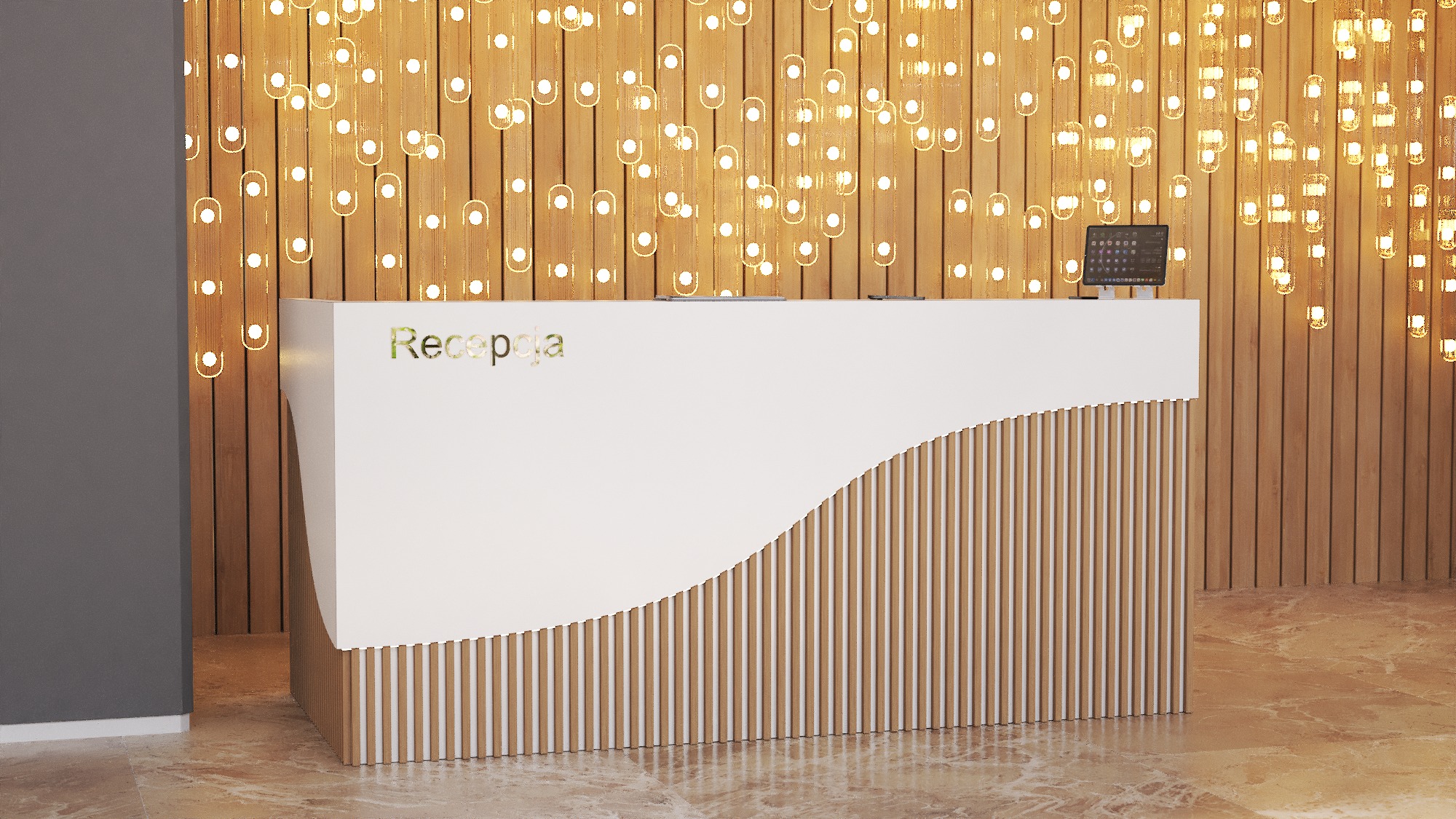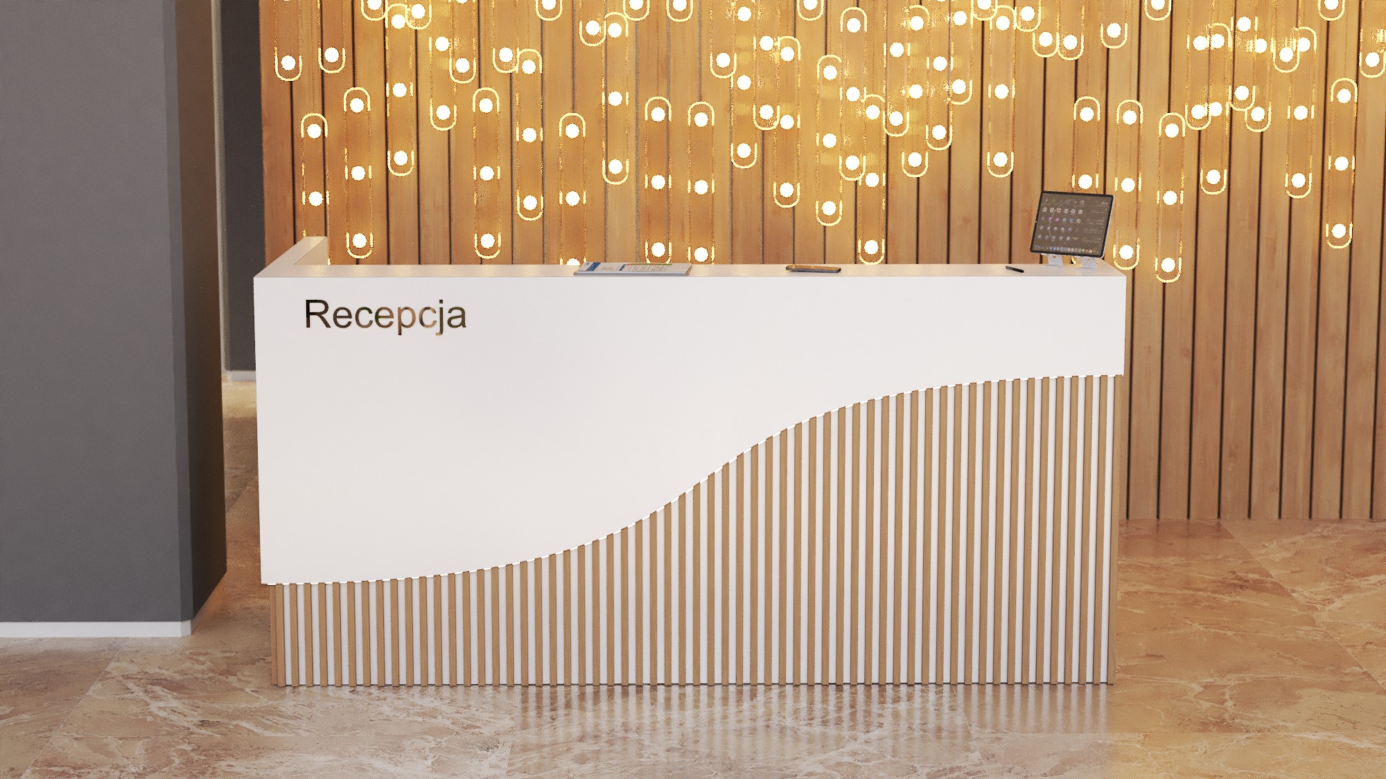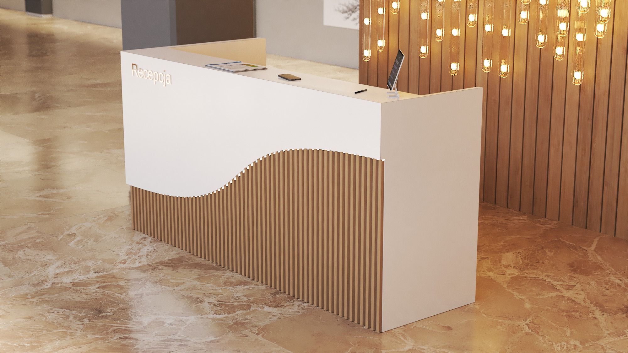 • Możliwość podświetlenia elementów recepcji listwą LED 4000K (neutralna barwa) lub innym odcieniem wg potrzeb