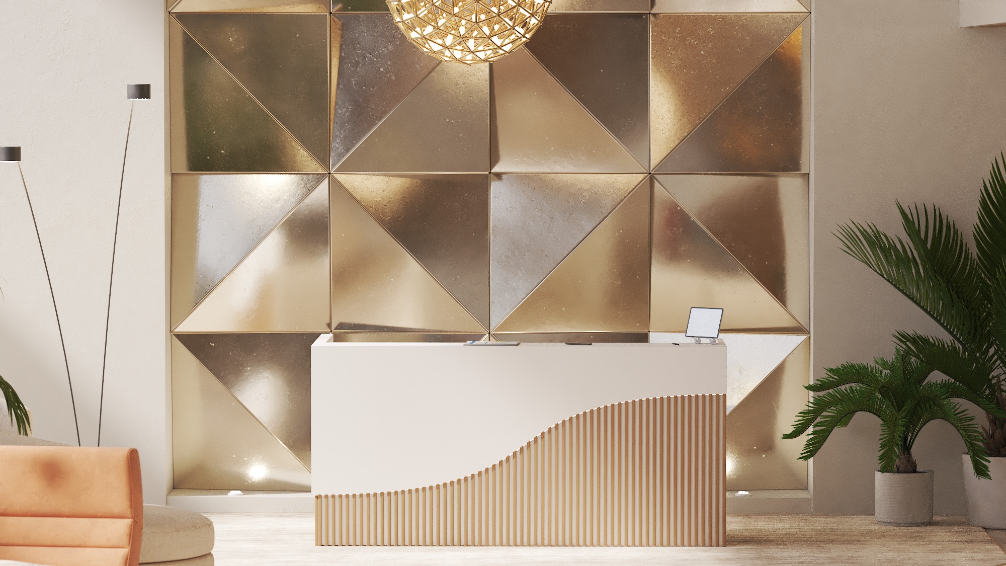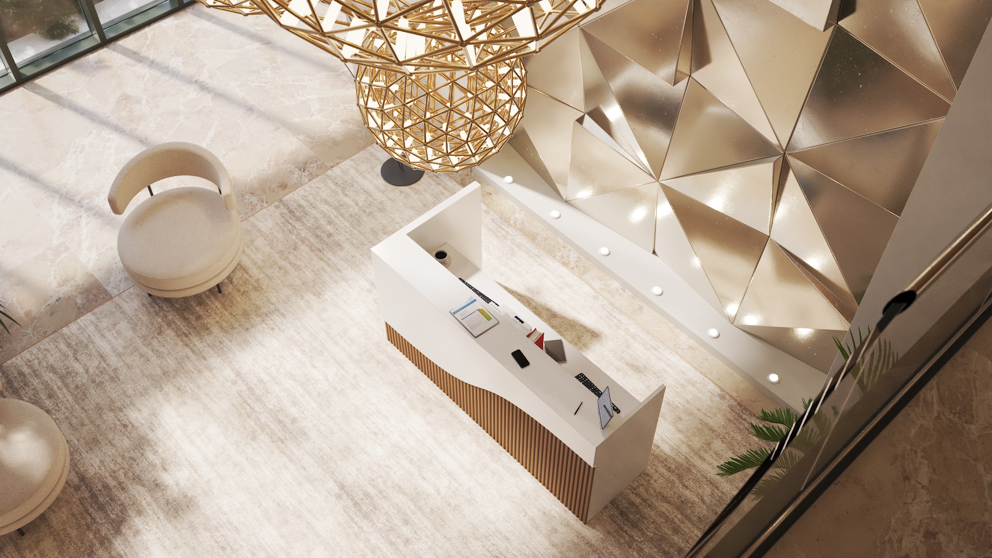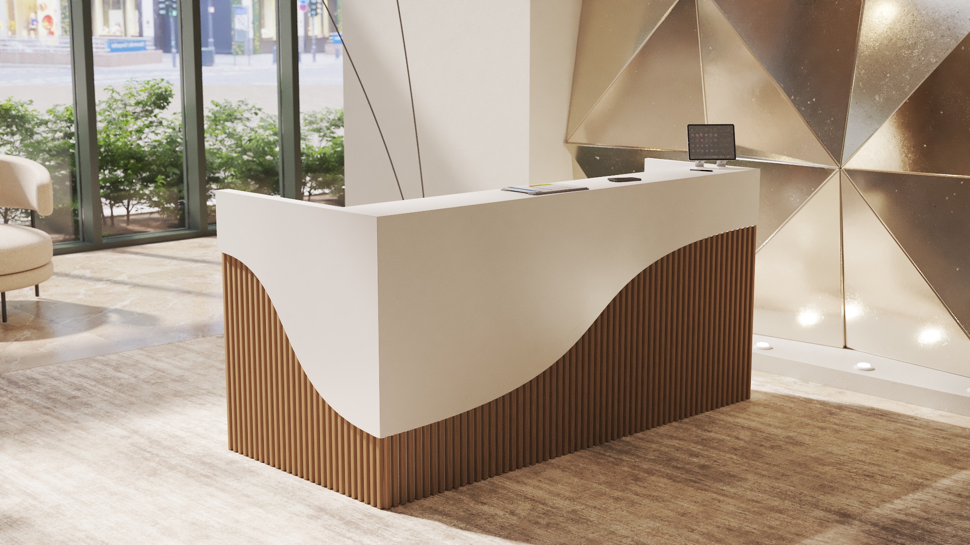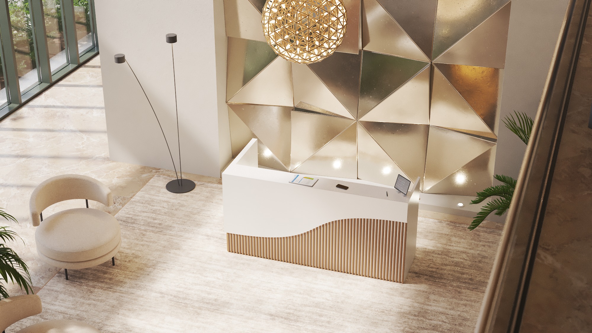• Możliwość podświetlenia elementów recepcji listwą LED 4000K (neutralna barwa) lub innym odcieniem wg potrzeb