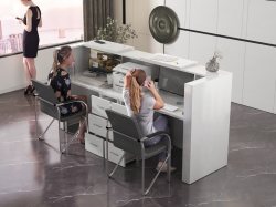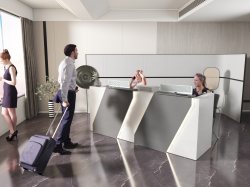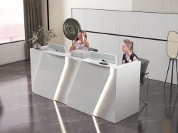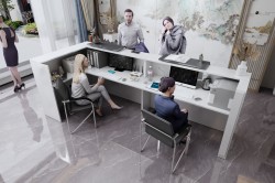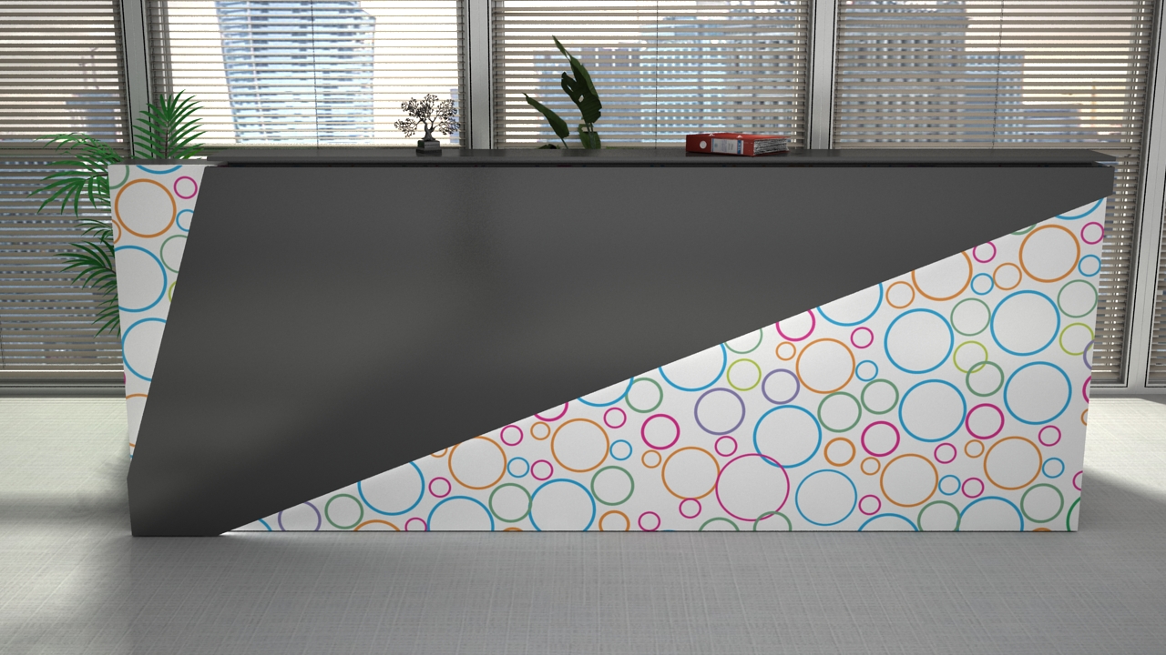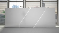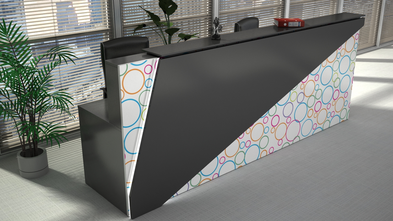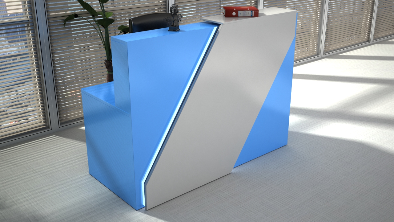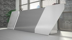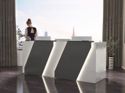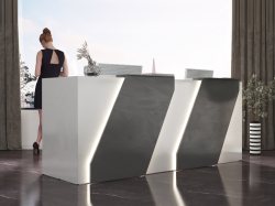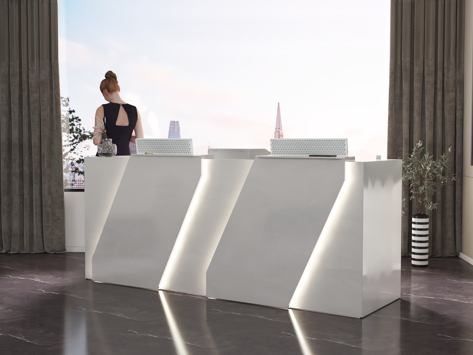 Zmodyfikowana równie nowoczesna wersja lady R65 to właśnie recepcja R76, której nieprawdopodobna figura, możliwość dopasowania wymiaru i koloru do potrzeb klienta to olbrzymie zalety. Lada jest na tyle elastyczna w wykonaniu, że design można bez problemu dopasować do każdego pomieszczenia.