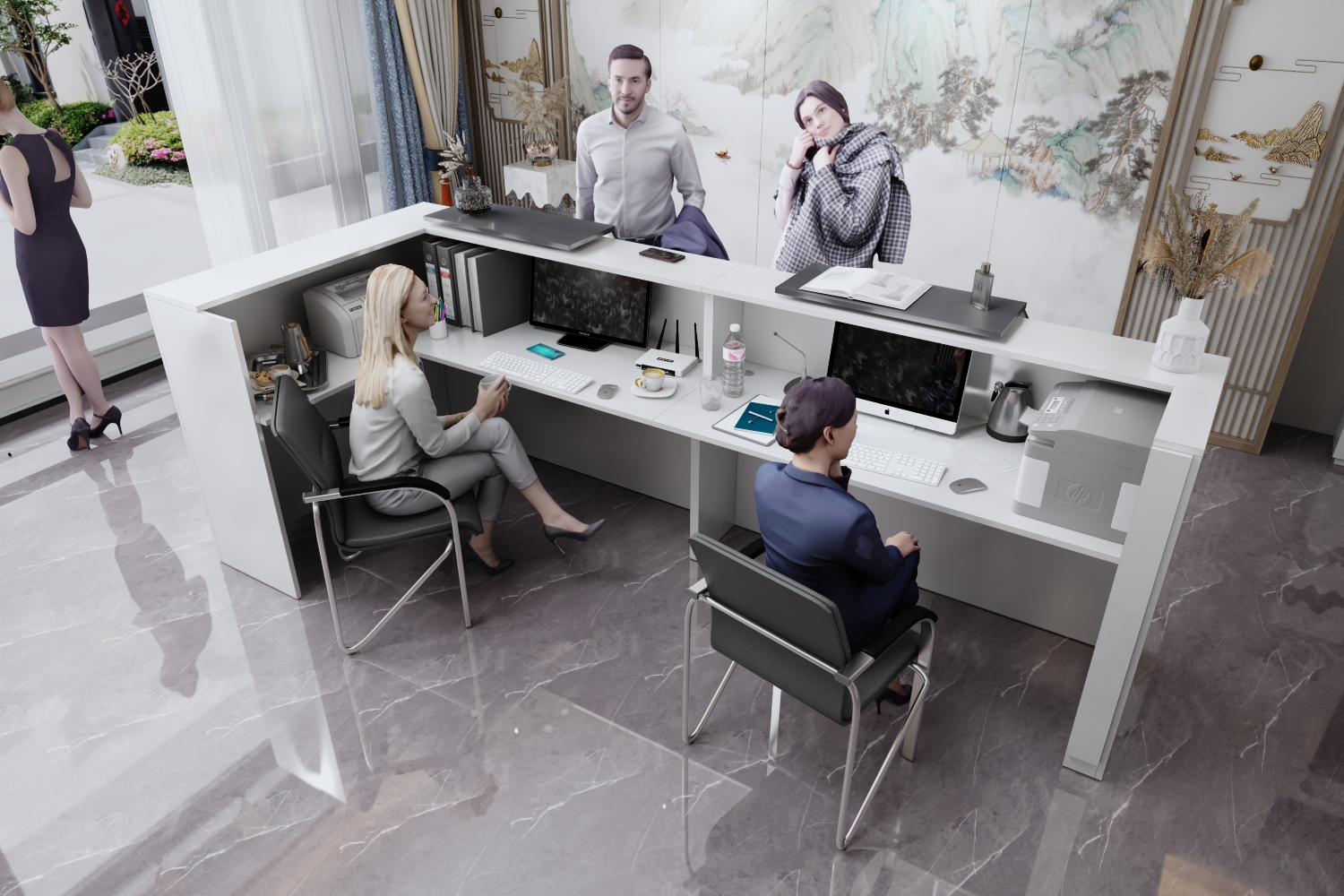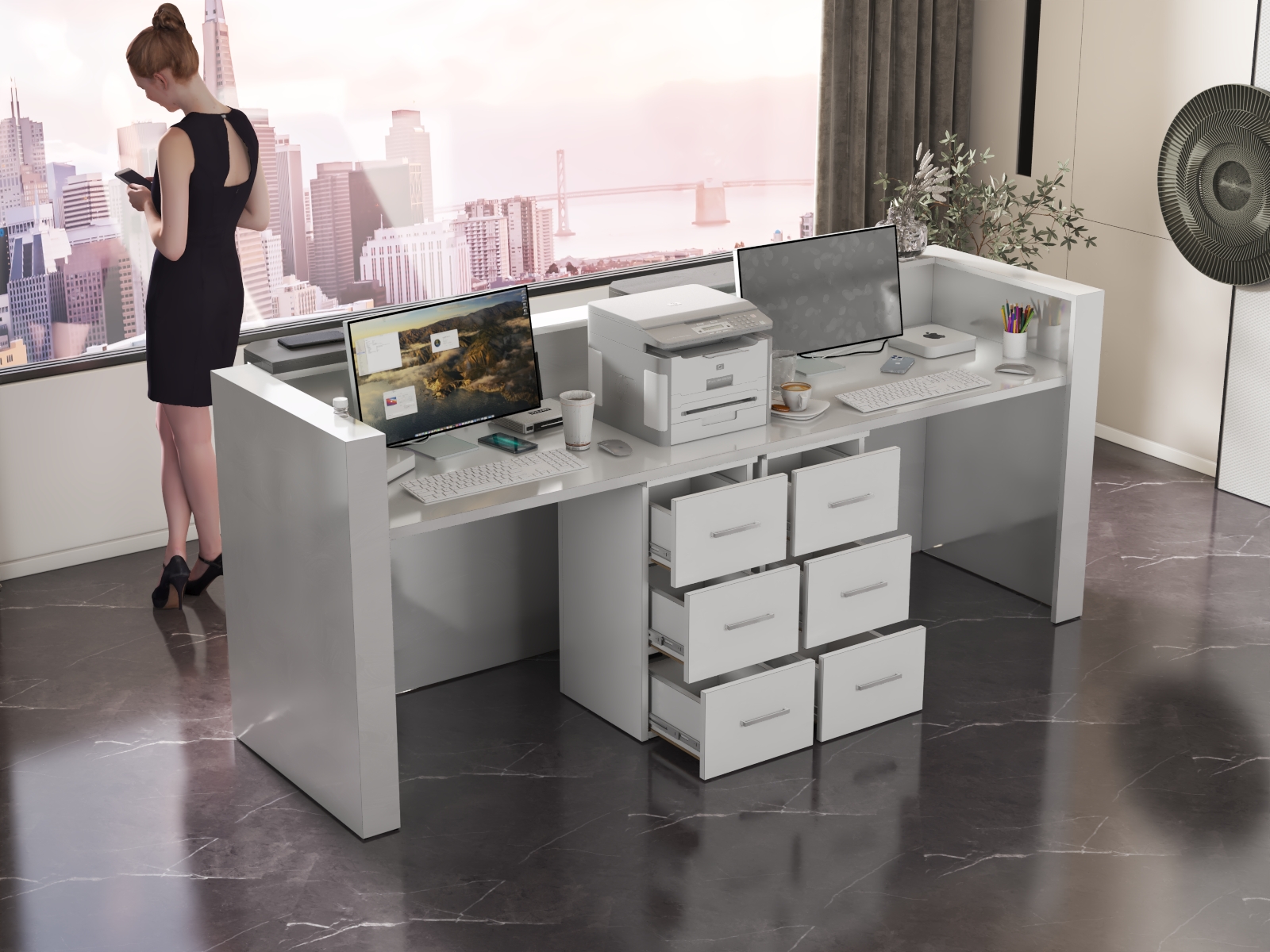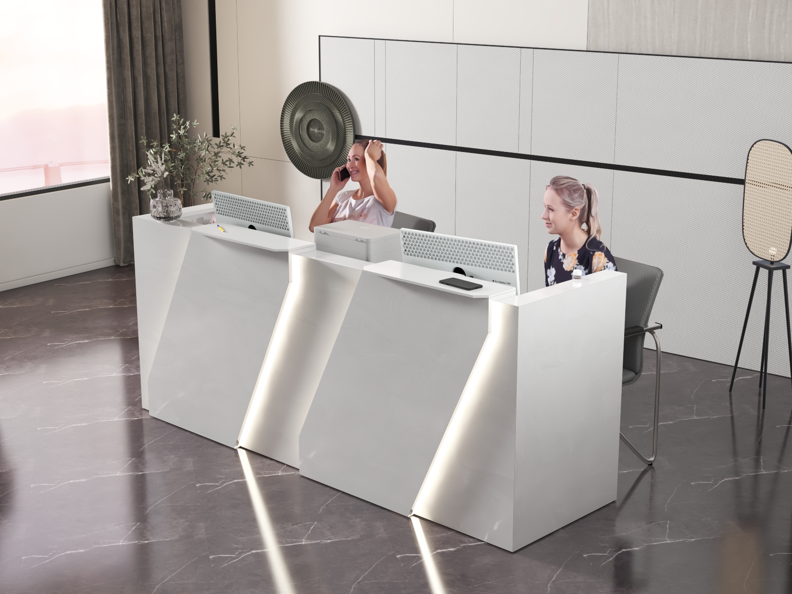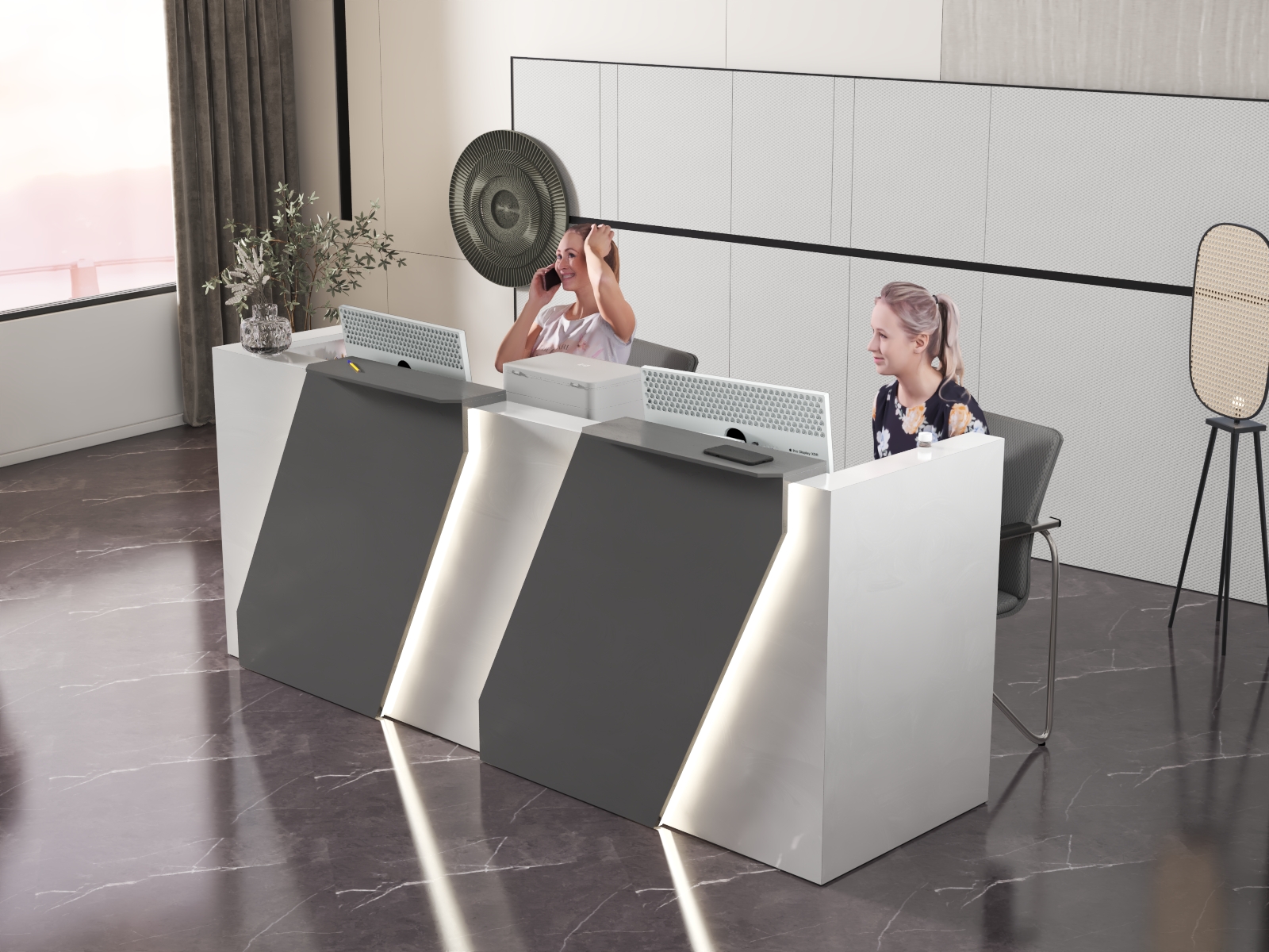 • Część frontowa recepcji o wysokości 115 cm zapewnia komfortowe miejsce do pracy