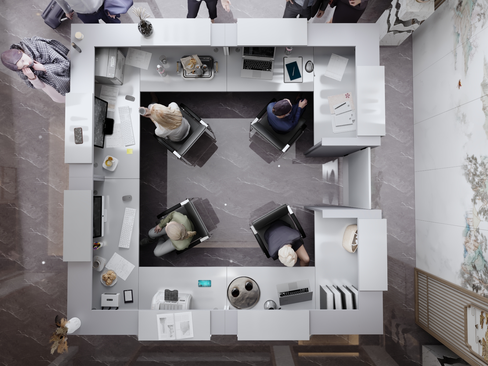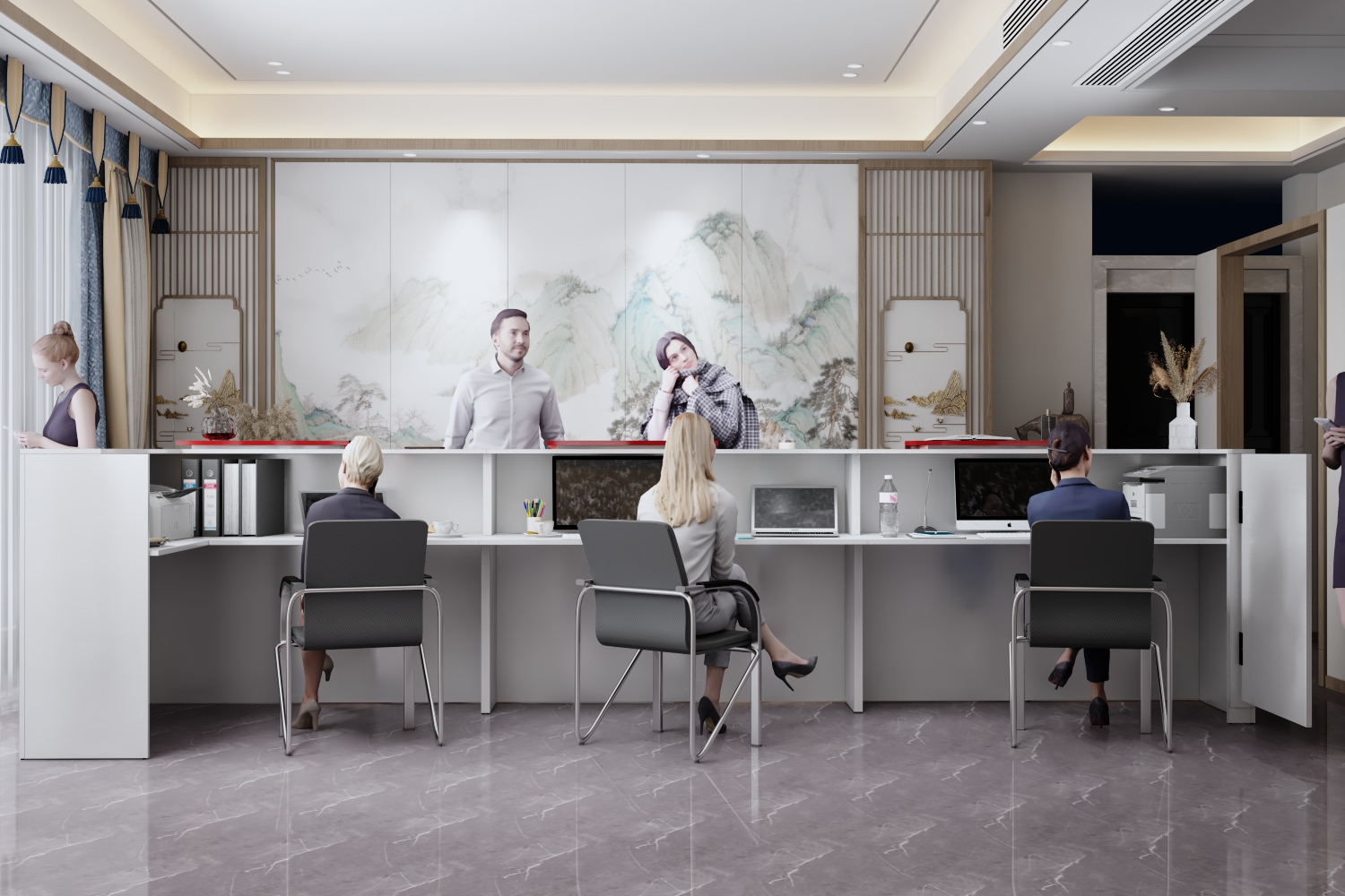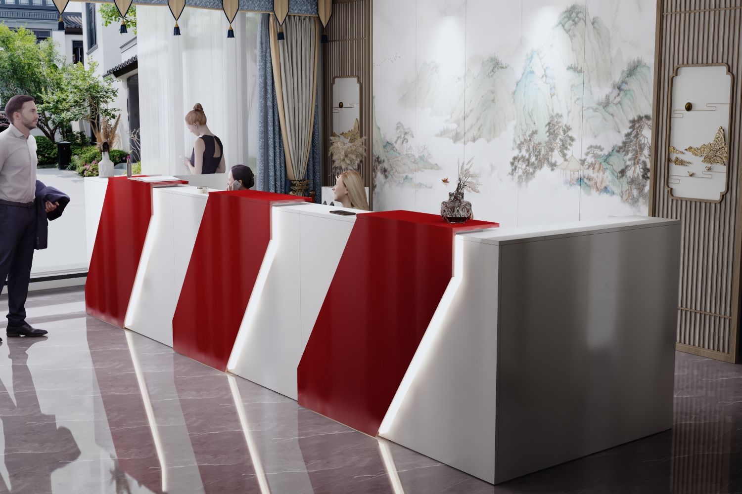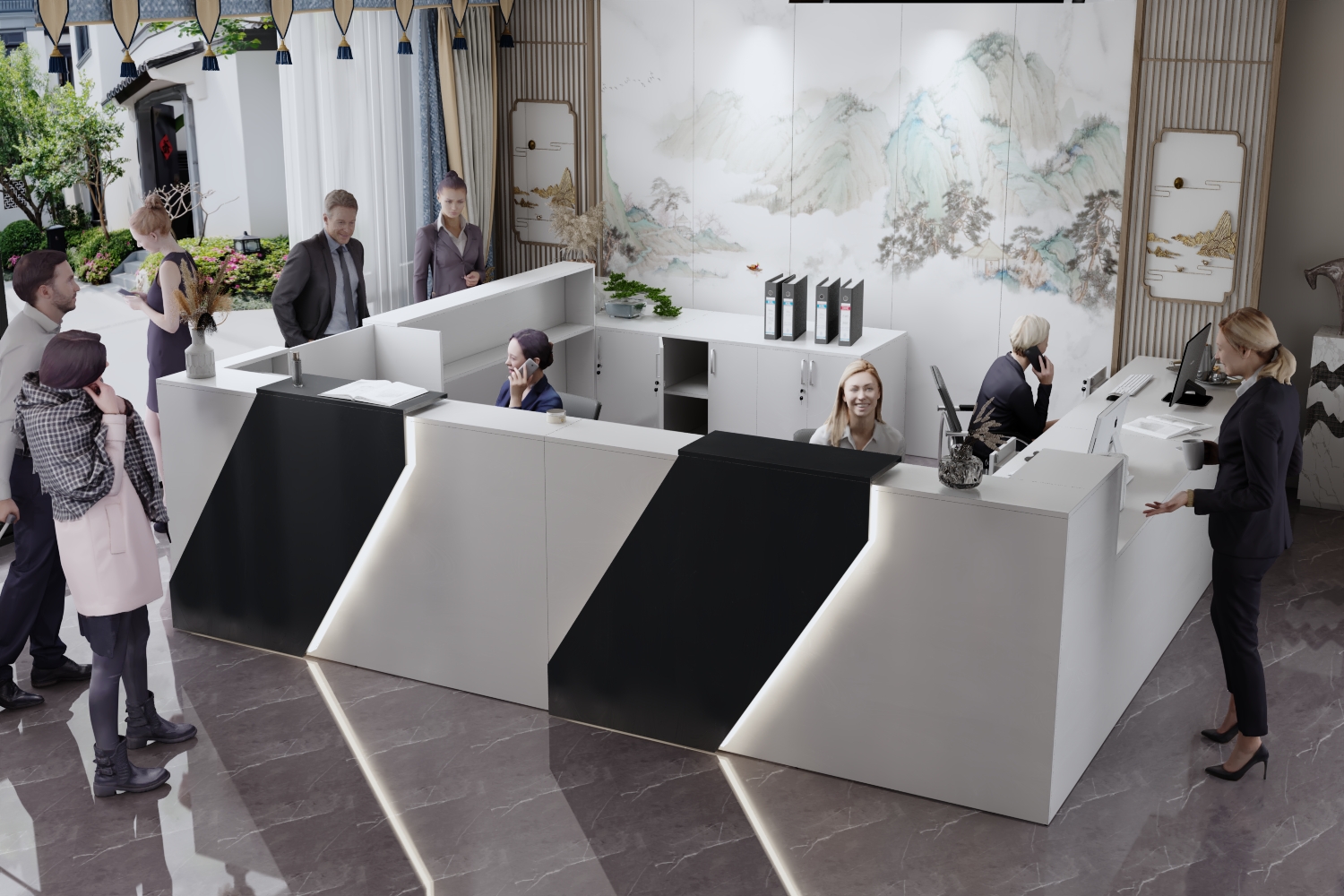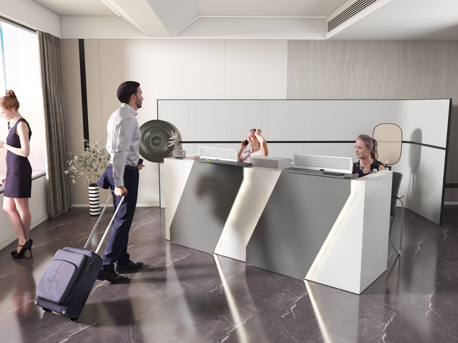 • Część frontowa recepcji o wysokości 115 cm zapewnia komfortowe miejsce do pracy