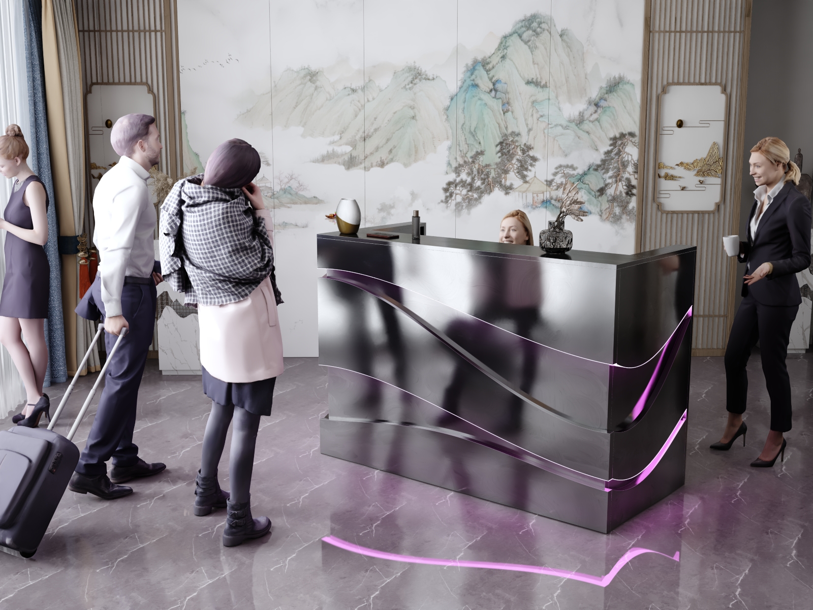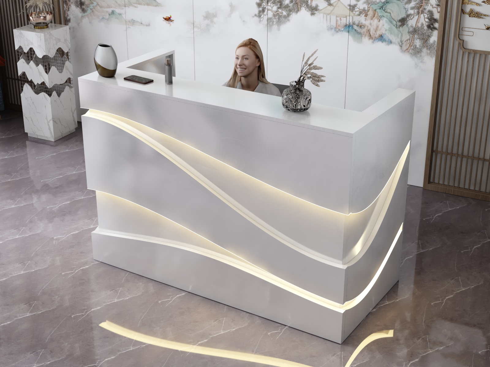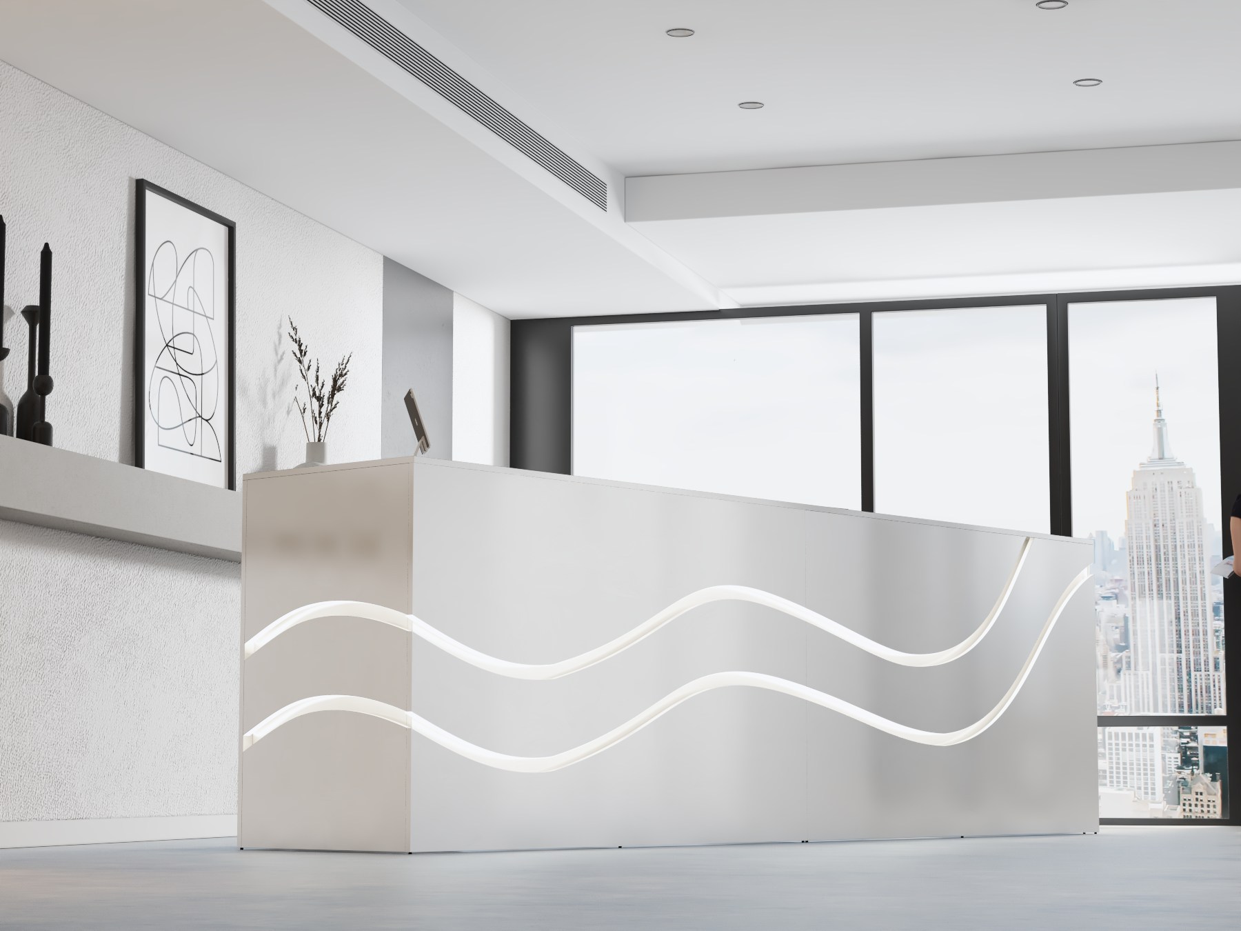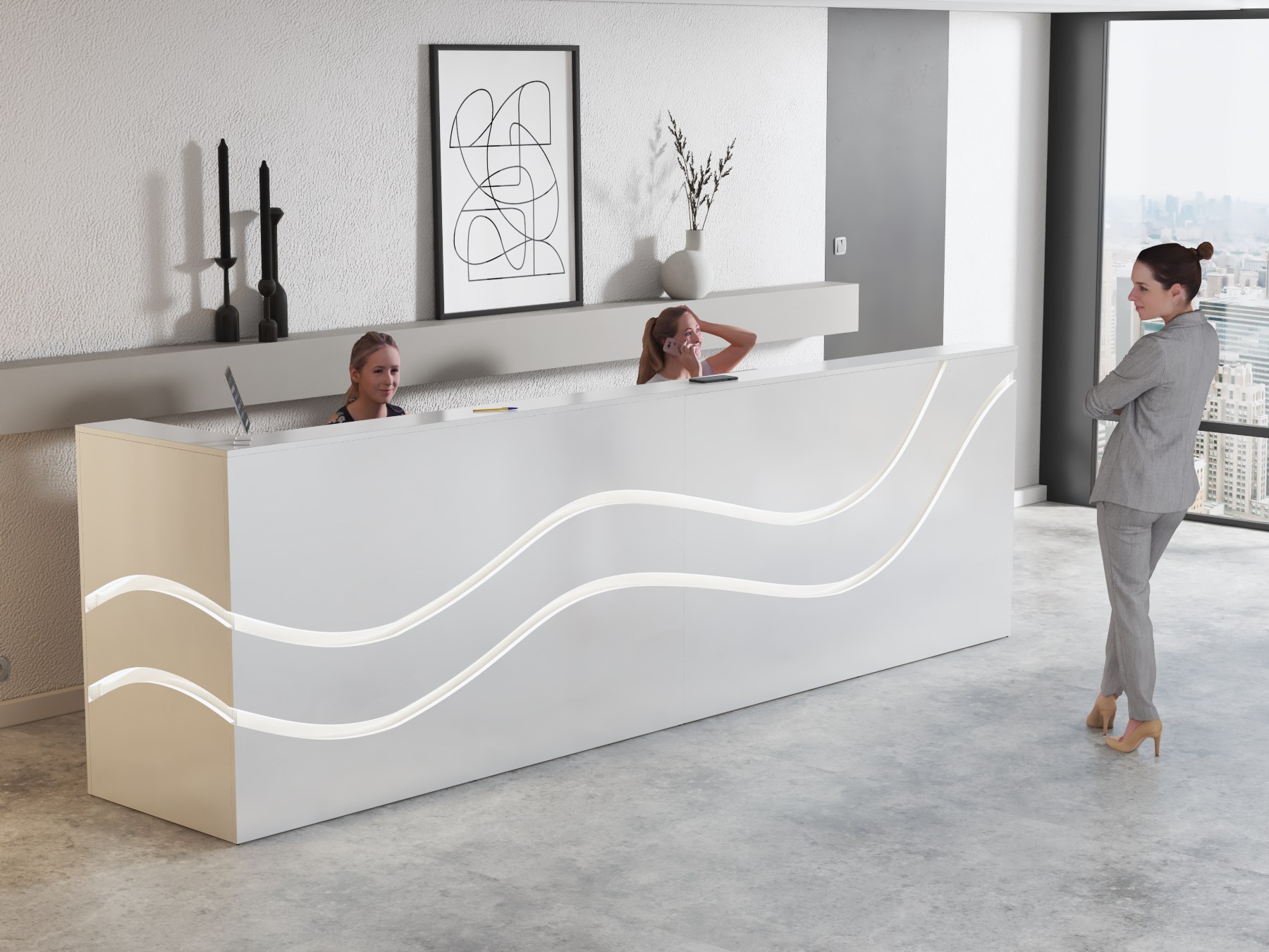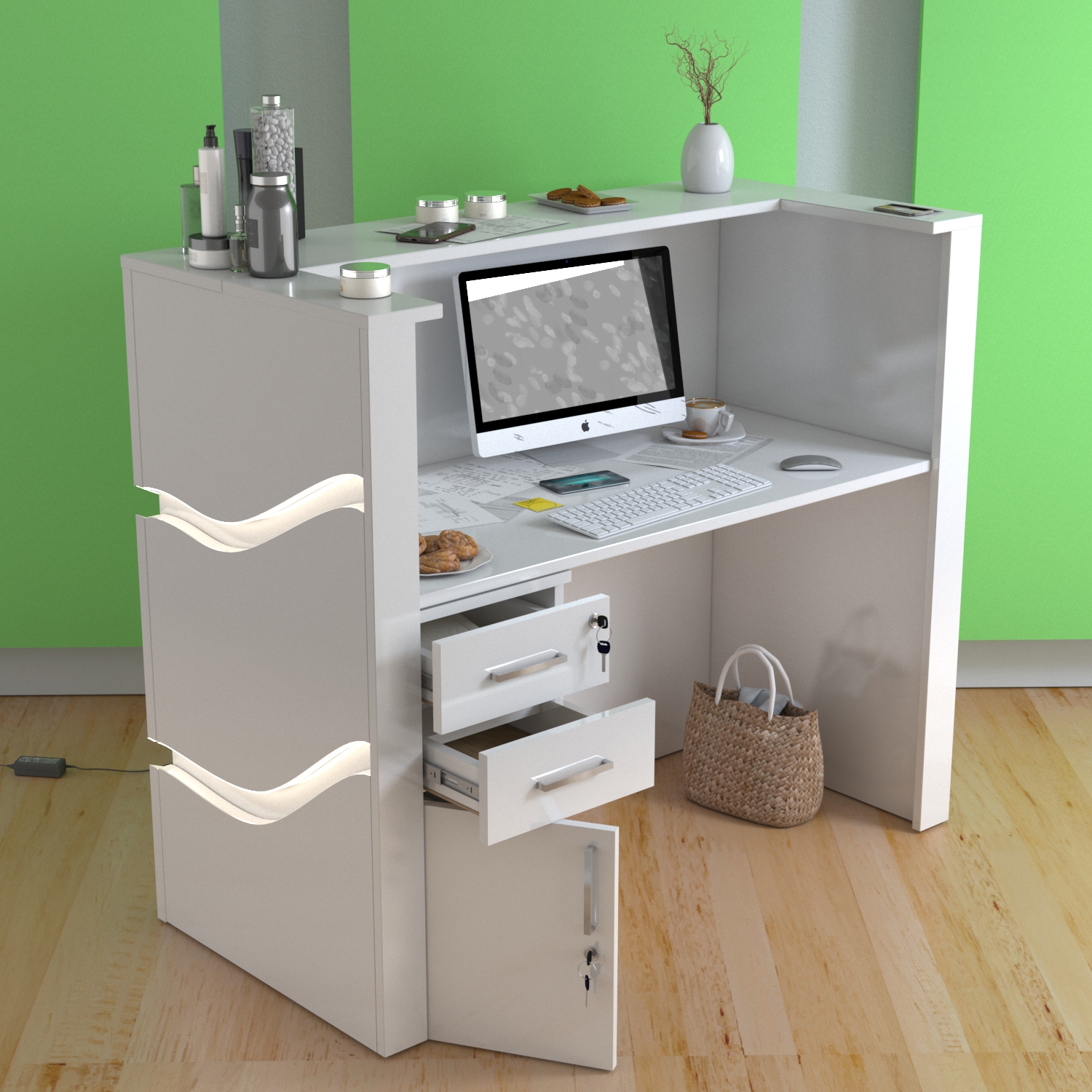 • Możliwość podświetlenia elementów recepcji listwą LED 4000K (neutralna barwa) lub innym odcieniem wg potrzeb