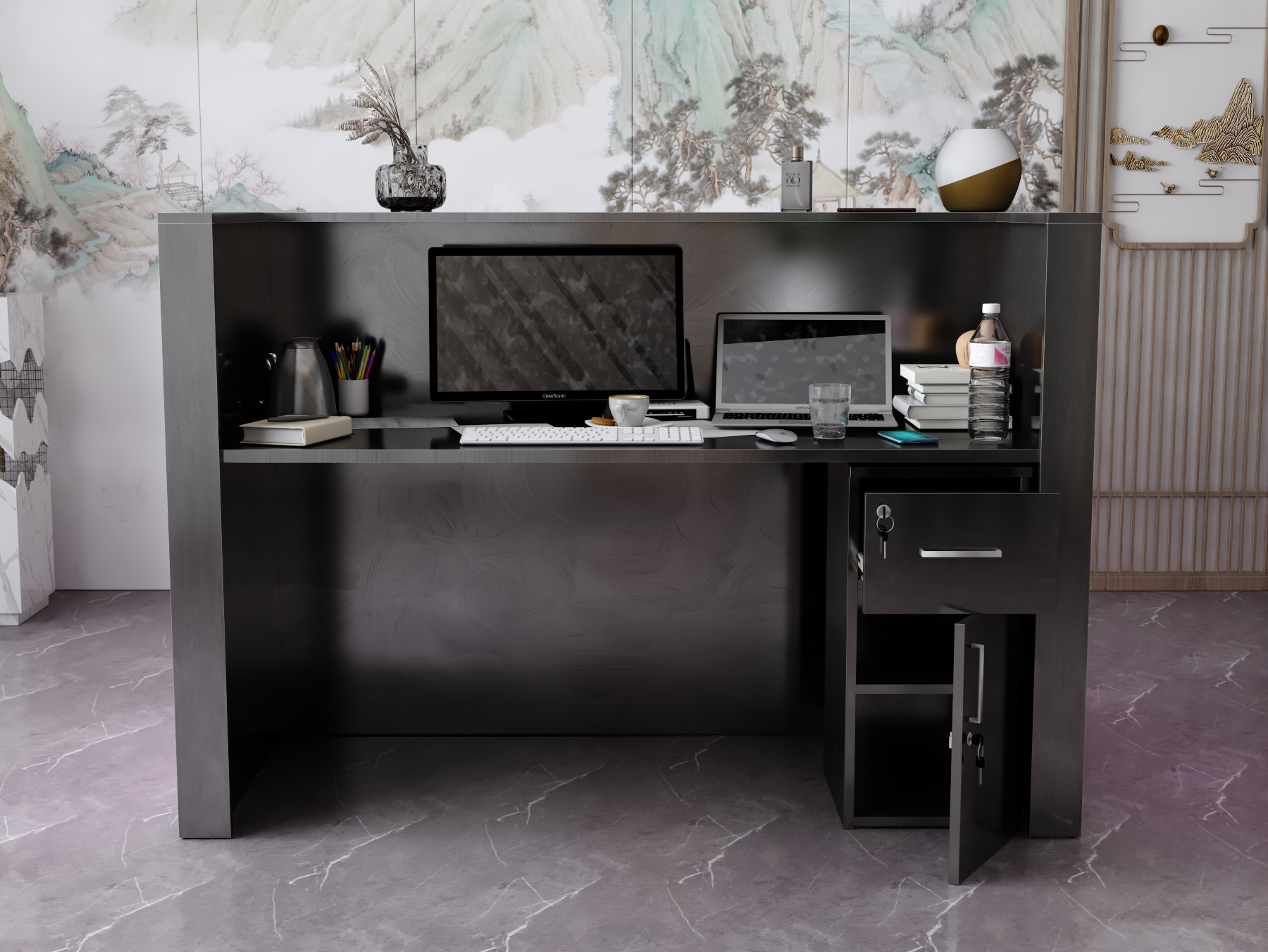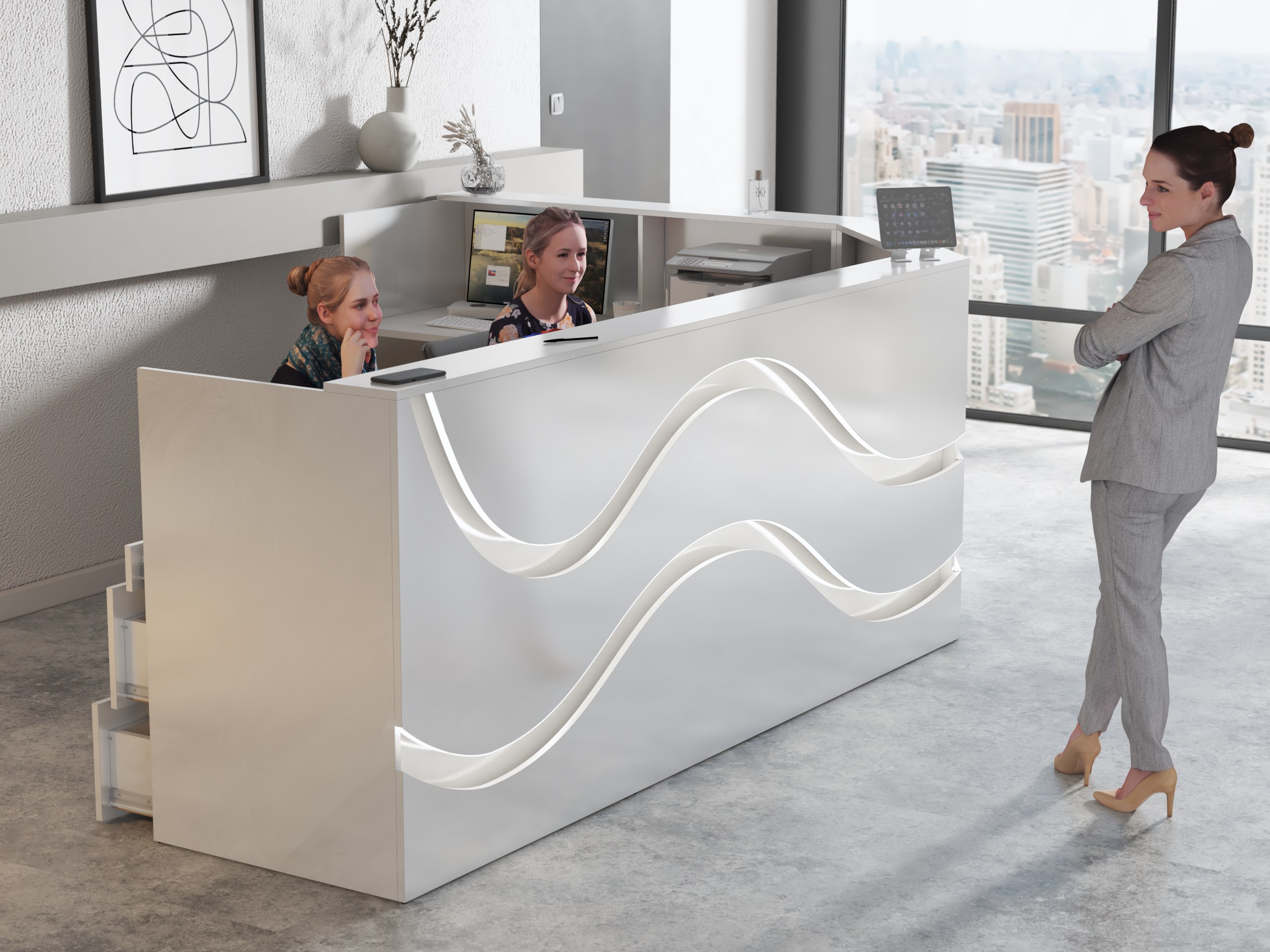 • Część frontowa recepcji o wysokości 115 cm zapewnia komfortowe miejsce do pracy