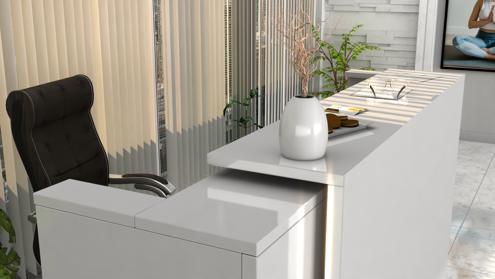 • Część frontowa recepcji o wysokości 115 cm zapewnia komfortowe miejsce do pracy
