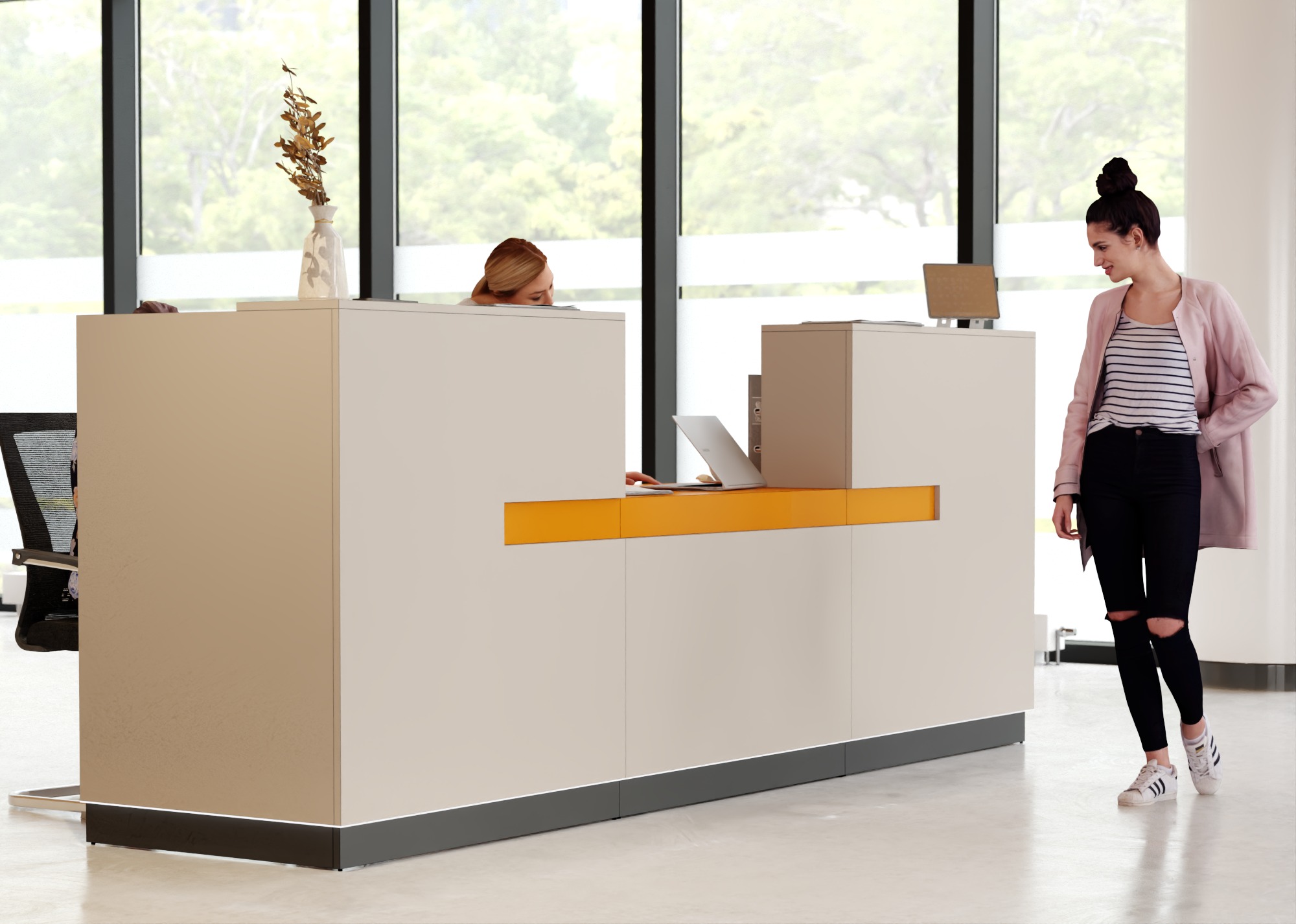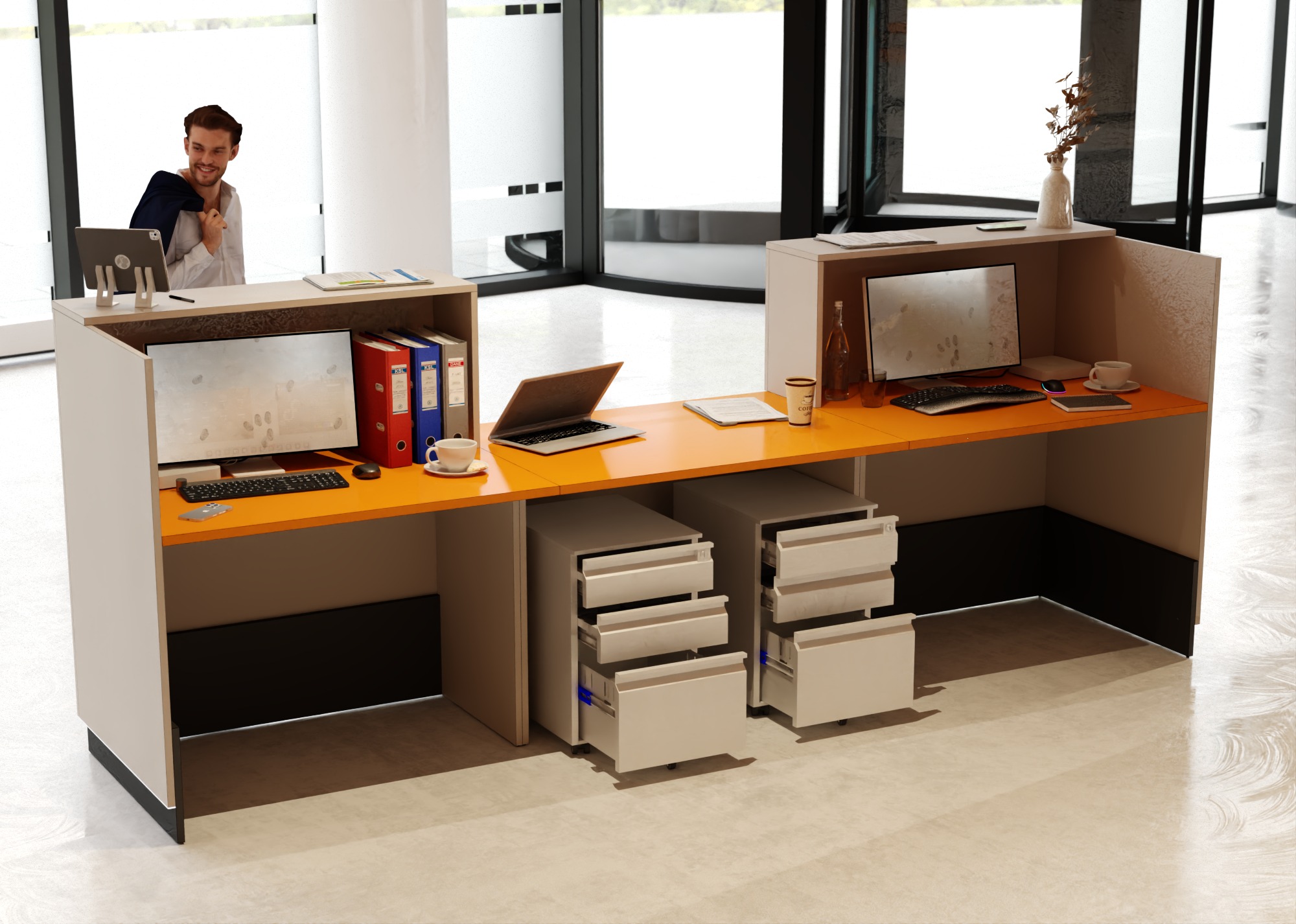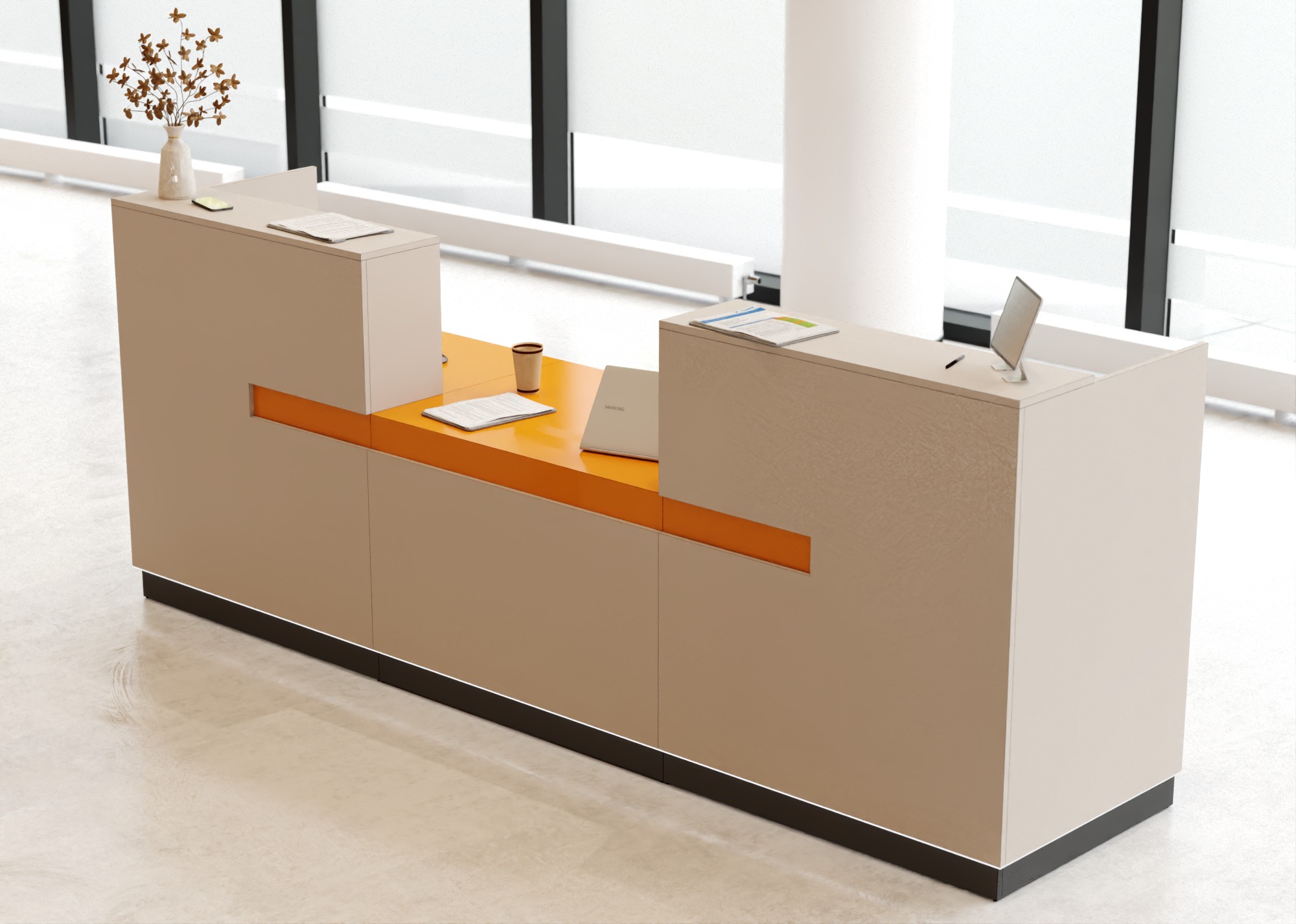 • Część frontowa recepcji o wysokości 115 cm zapewnia komfortowe miejsce do pracy