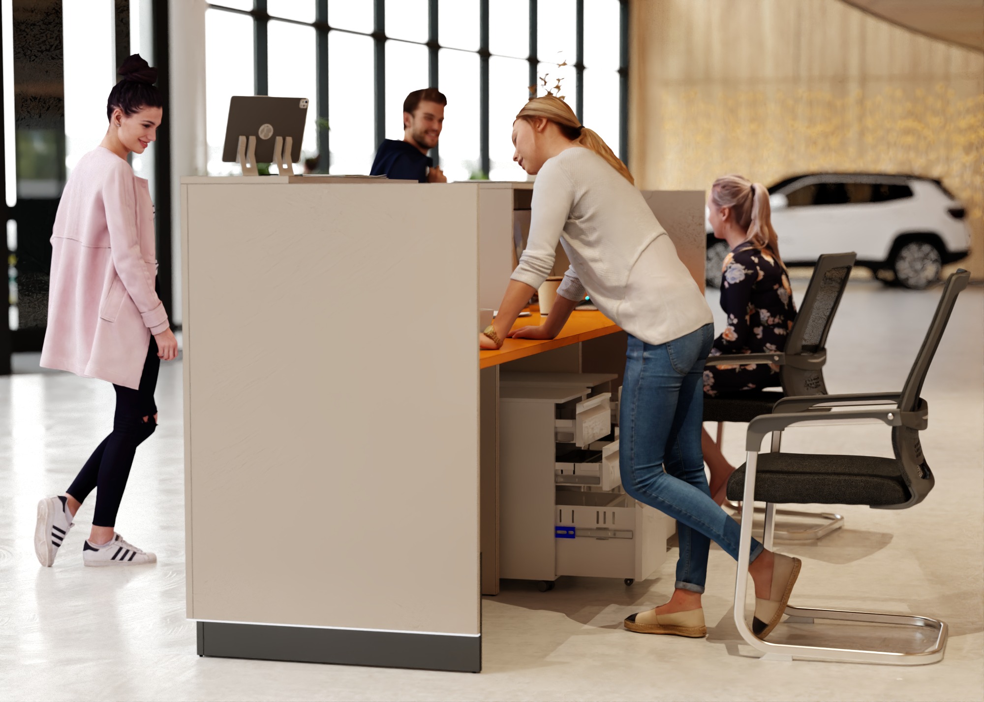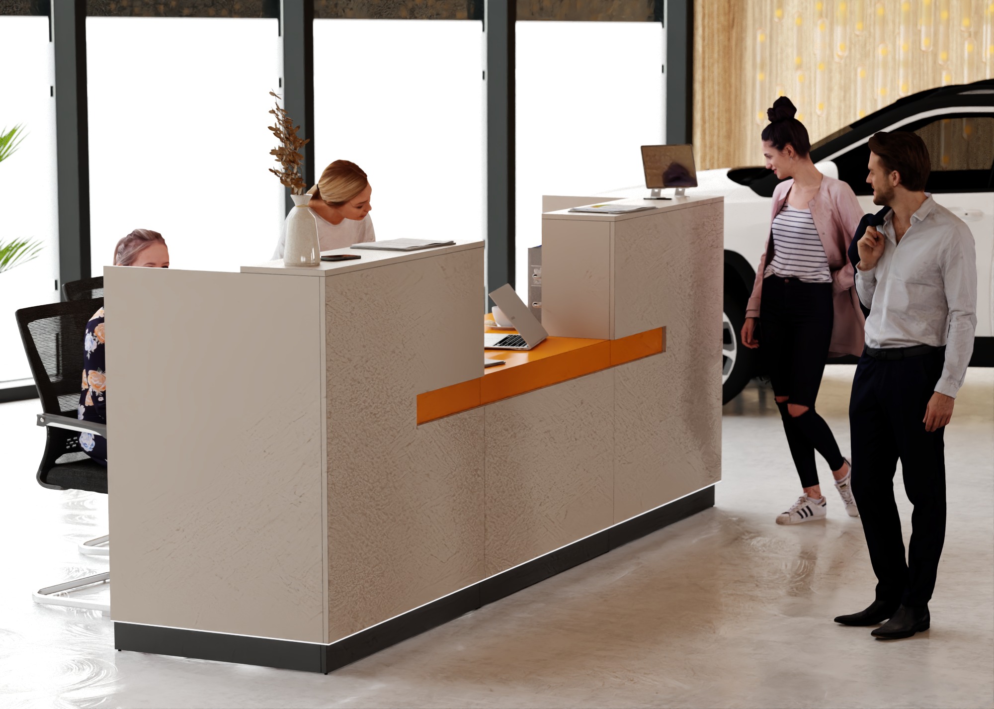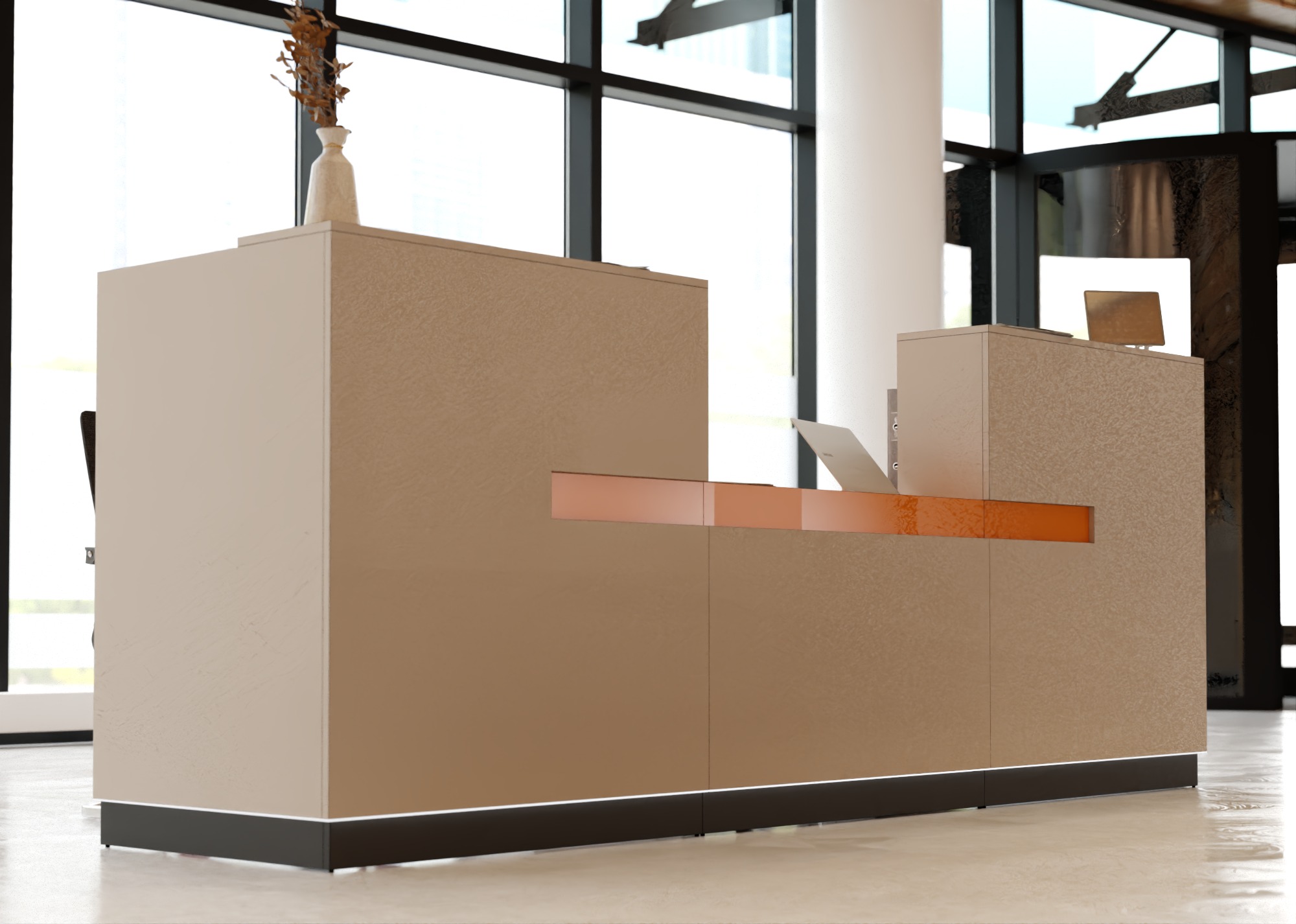 • Część frontowa recepcji o wysokości 115 cm zapewnia komfortowe miejsce do pracy