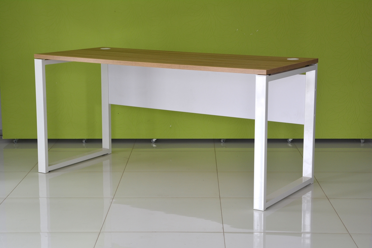Desk legs are made of metal frame in the metallic color, equipped with the regulated furniture feet in case of an uneven ground.
