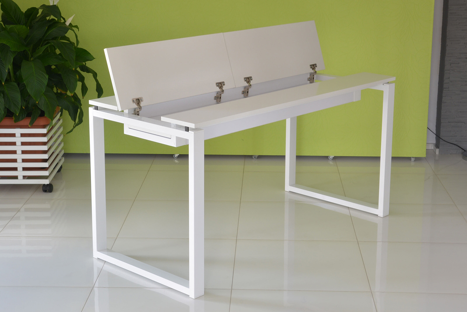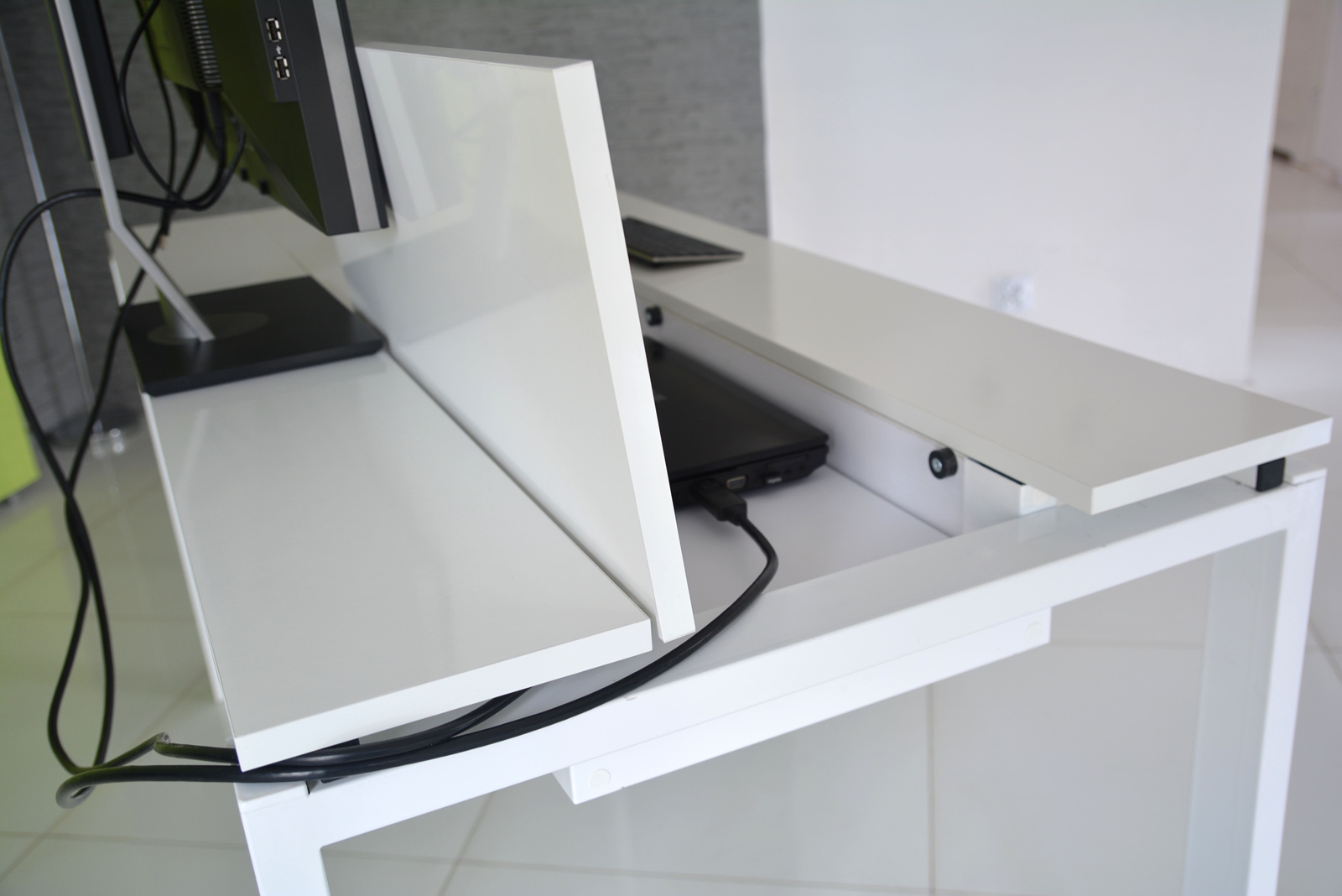 The Q9 module furniture system is a complete workplace amenities. The Q9 desk is equipped with a hidden shelf for a laptop computer, cables, chargers, etc. (organizer). Due to the hidden shelf we save a lot of space.